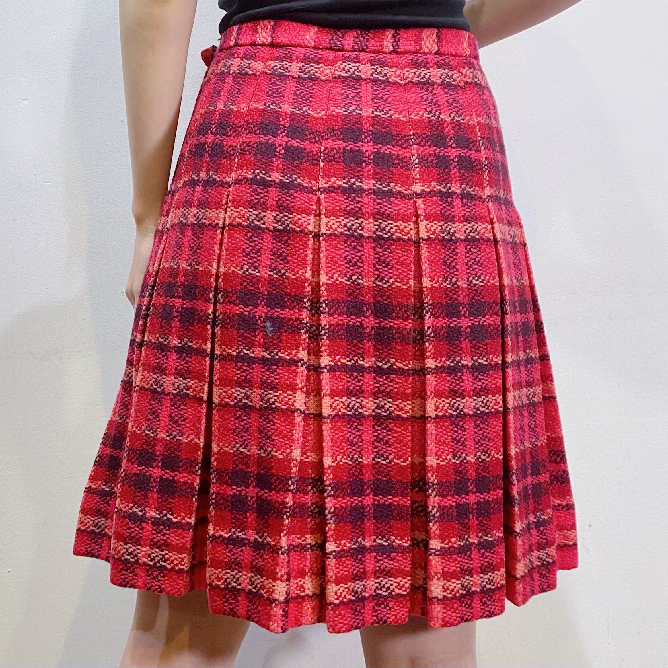 落ち着いた色合いの多いウールスカートにしては珍しく、暗くなりがちな秋冬のコーデをパッと華やかにしてくれますよ。