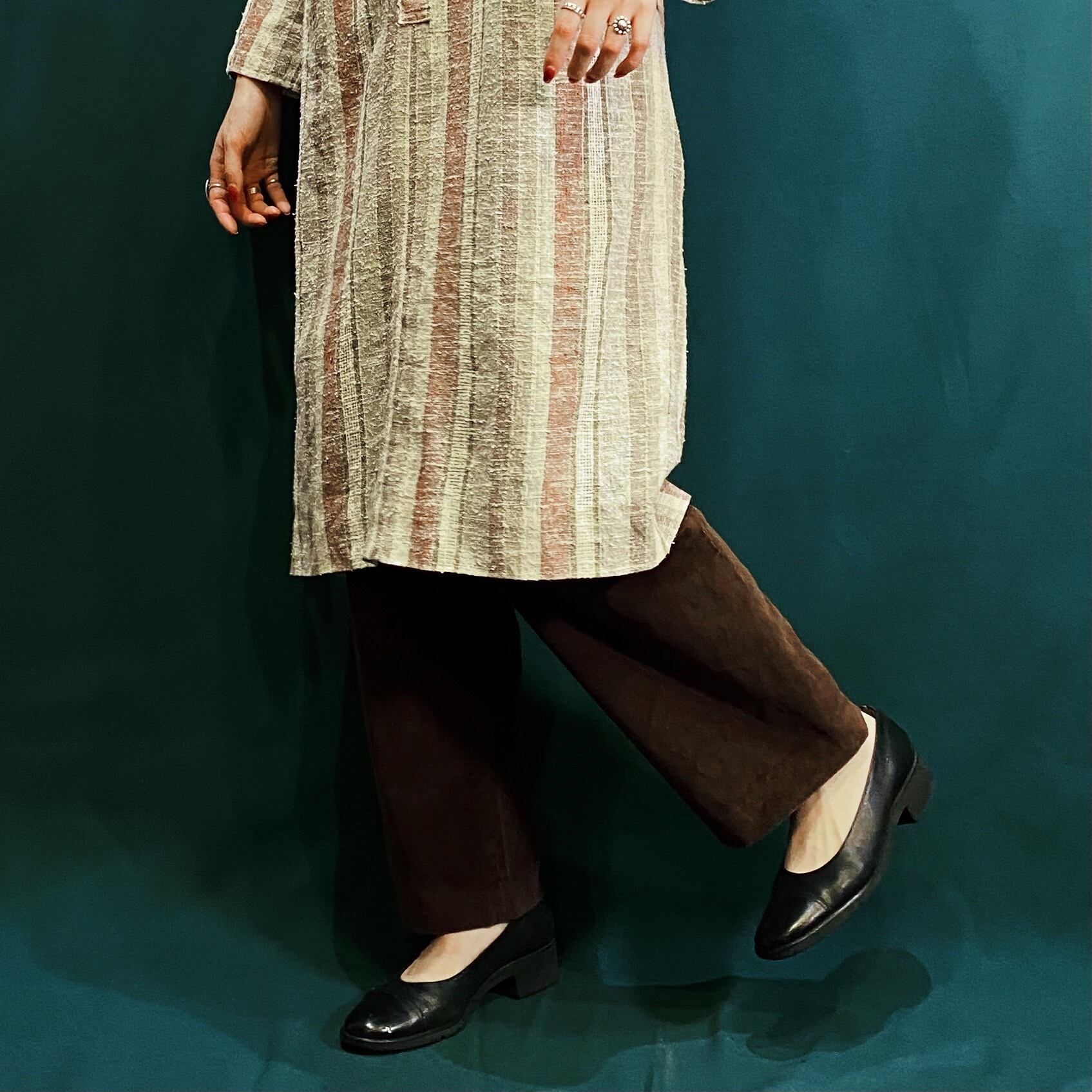 こっくりとしたブラウンカラーで使い勝手の良い、コーデュロイパンツです。