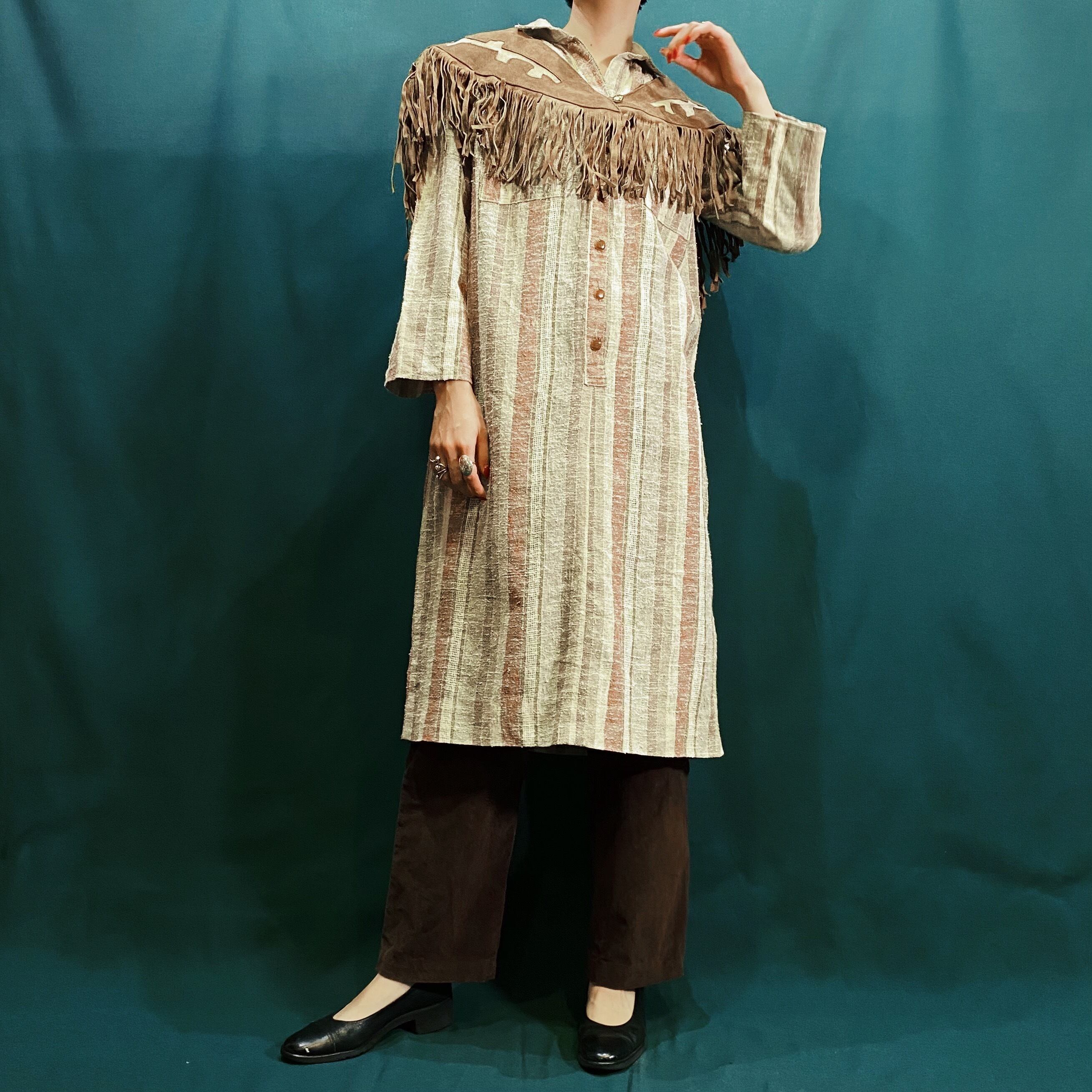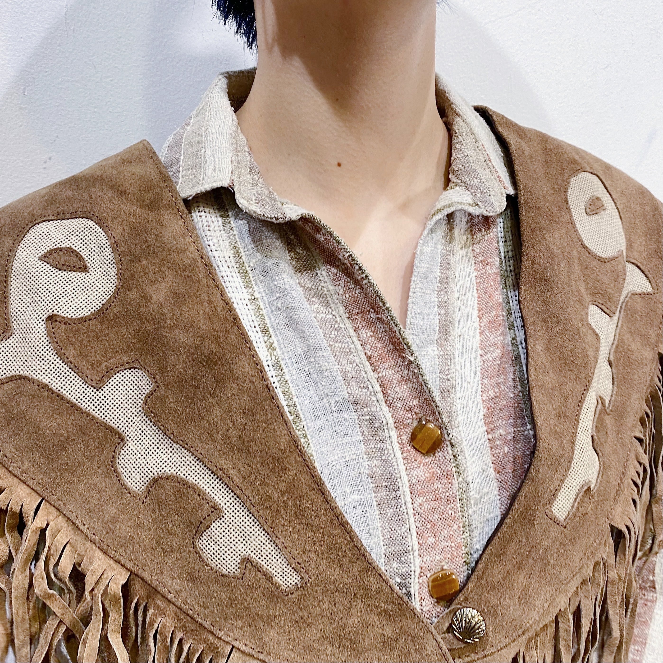 フリンジデザインが楽しい、70年代のレザーベストです。