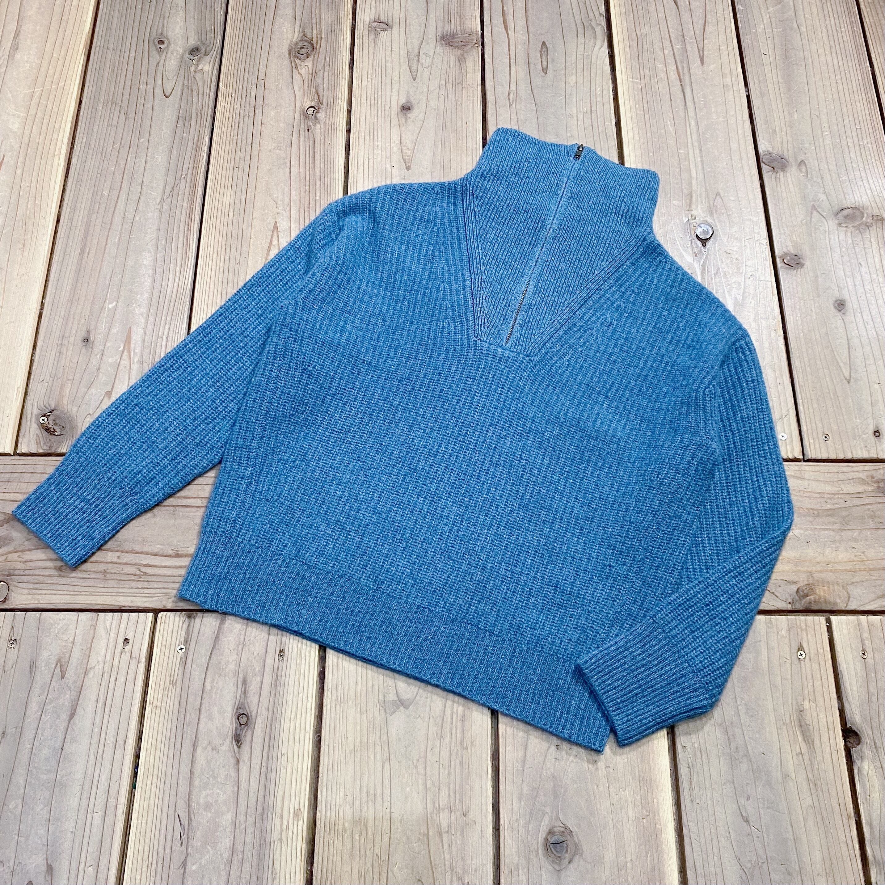 Blue cashmere knit half zip sweater