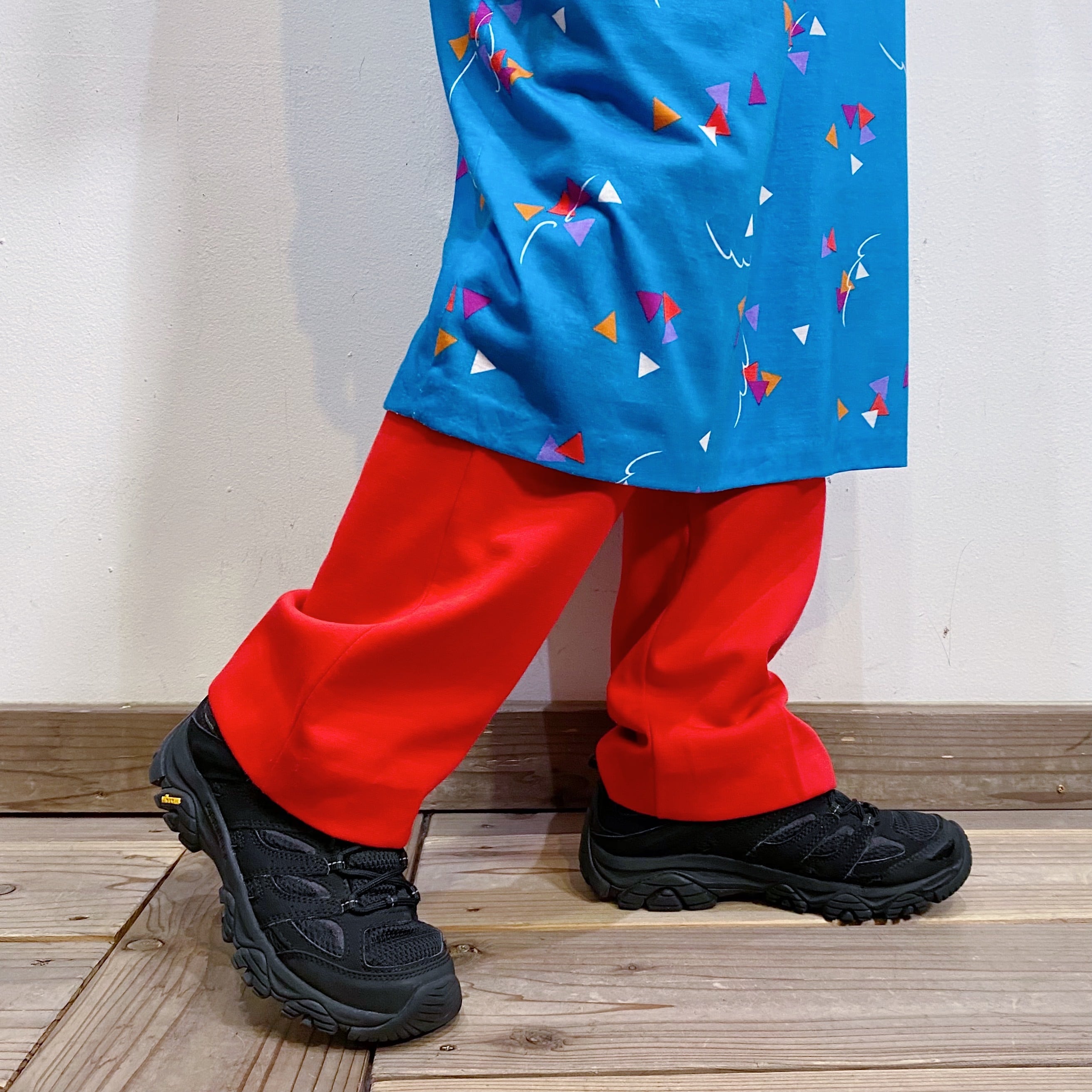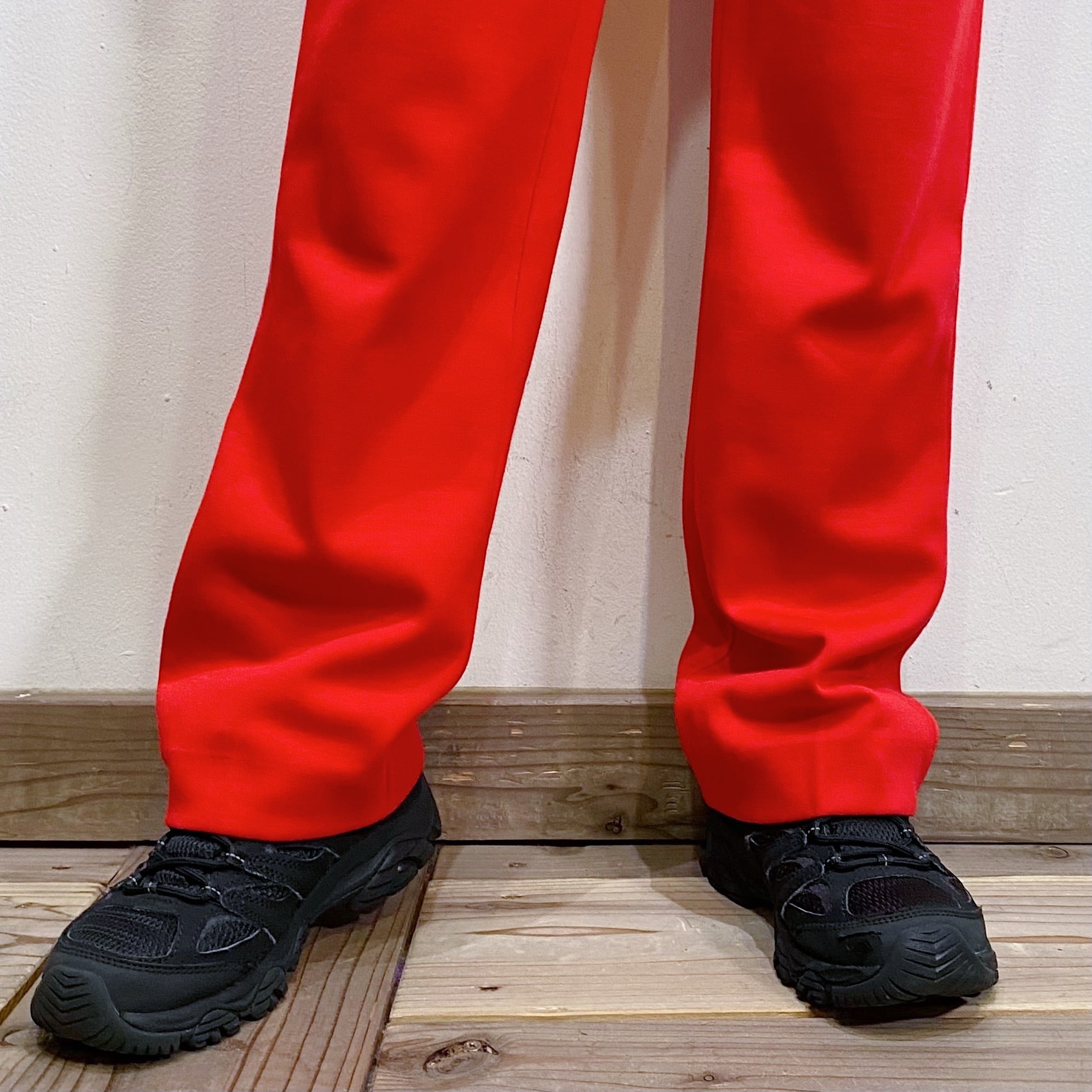 パッキリレッドカラーが可愛い70年代のイージーパンツです。
