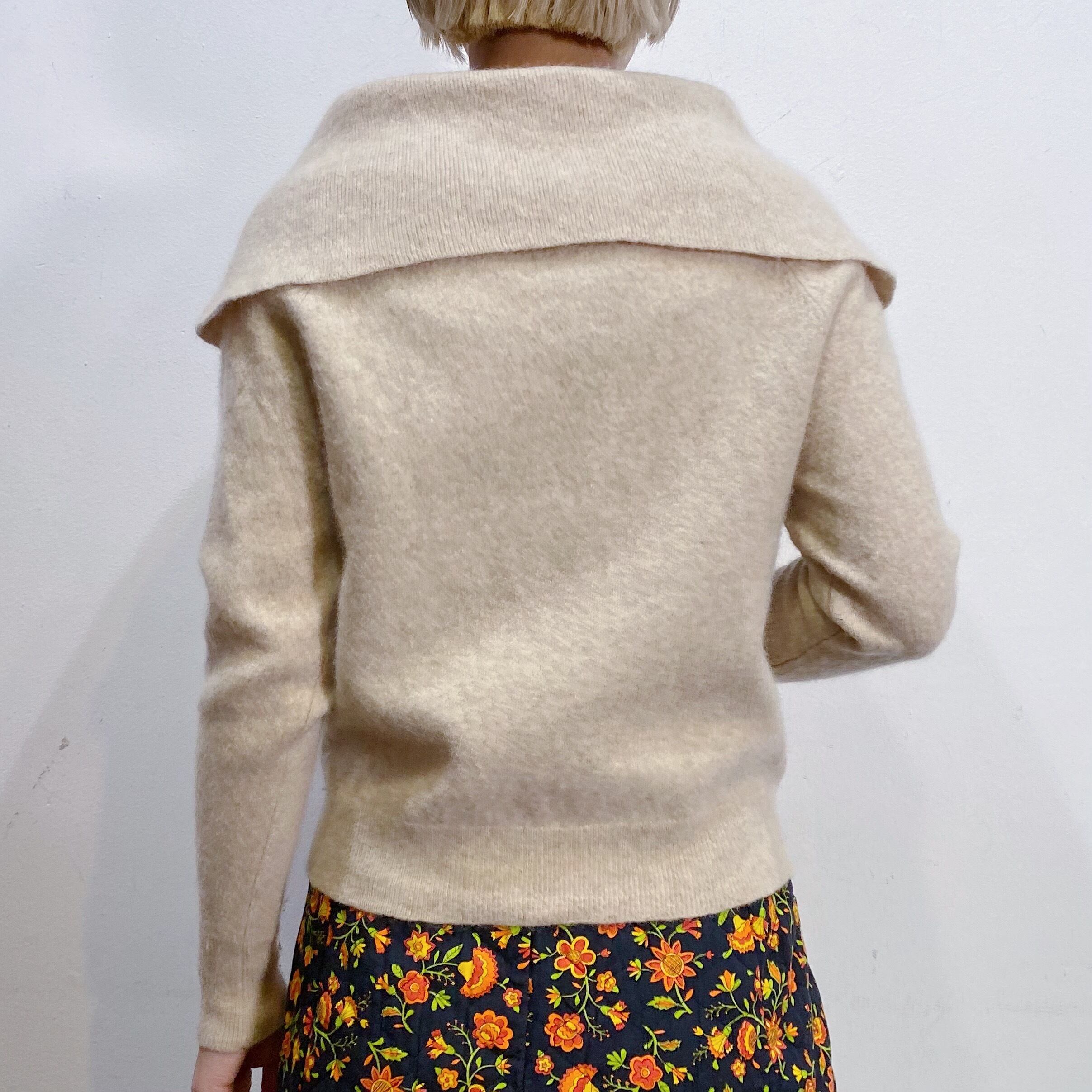 こちらはベージュカラーで使い勝手良く、首回りのデザインがとても可愛くて素敵。