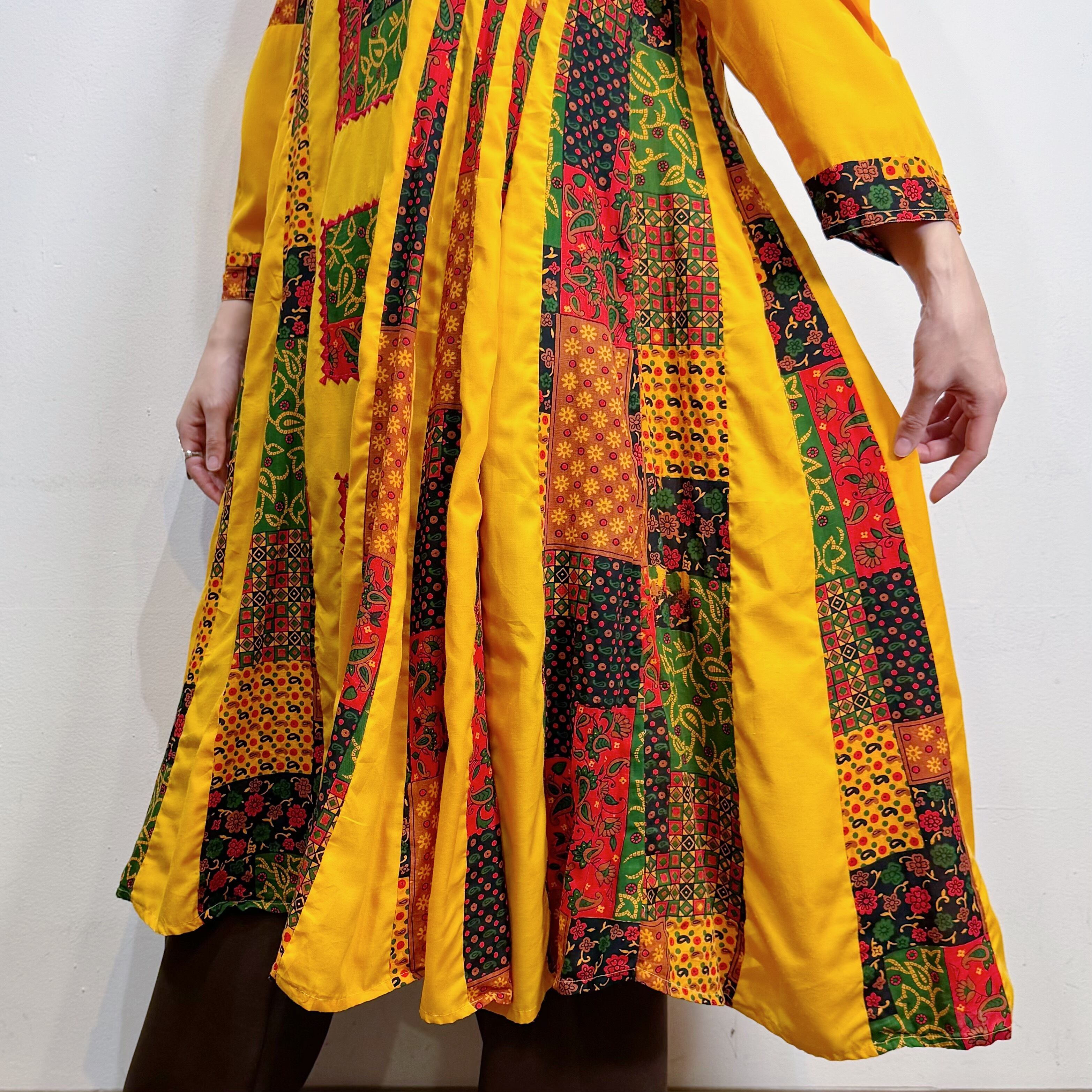ボタニカルなリアルパッチワークがたっぷりとあしらわれたロングワンピースです。
