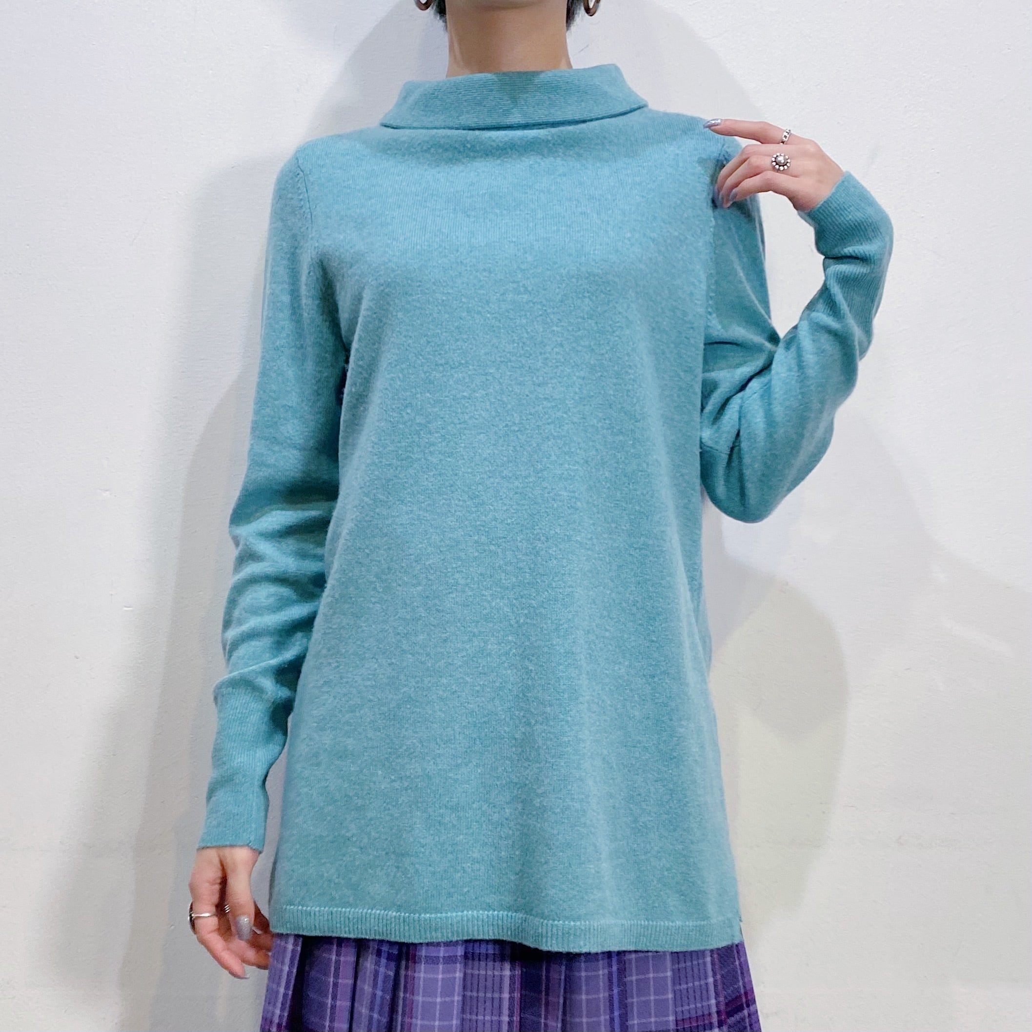 綺麗なサックスブルーの色合いが魅力のカシミヤセーターです