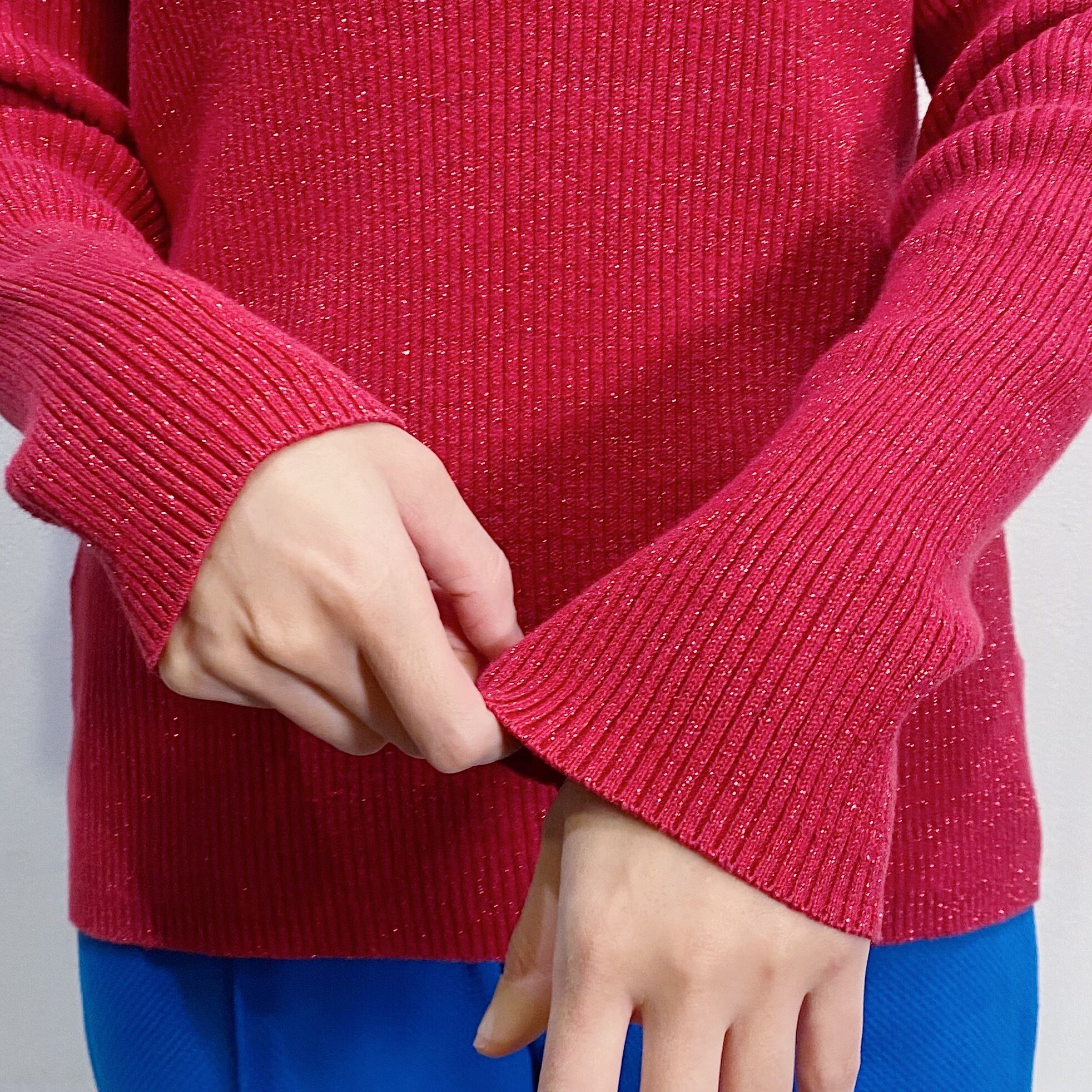 キラッと光るラメ糸が可愛い、ハイネックトップスです。