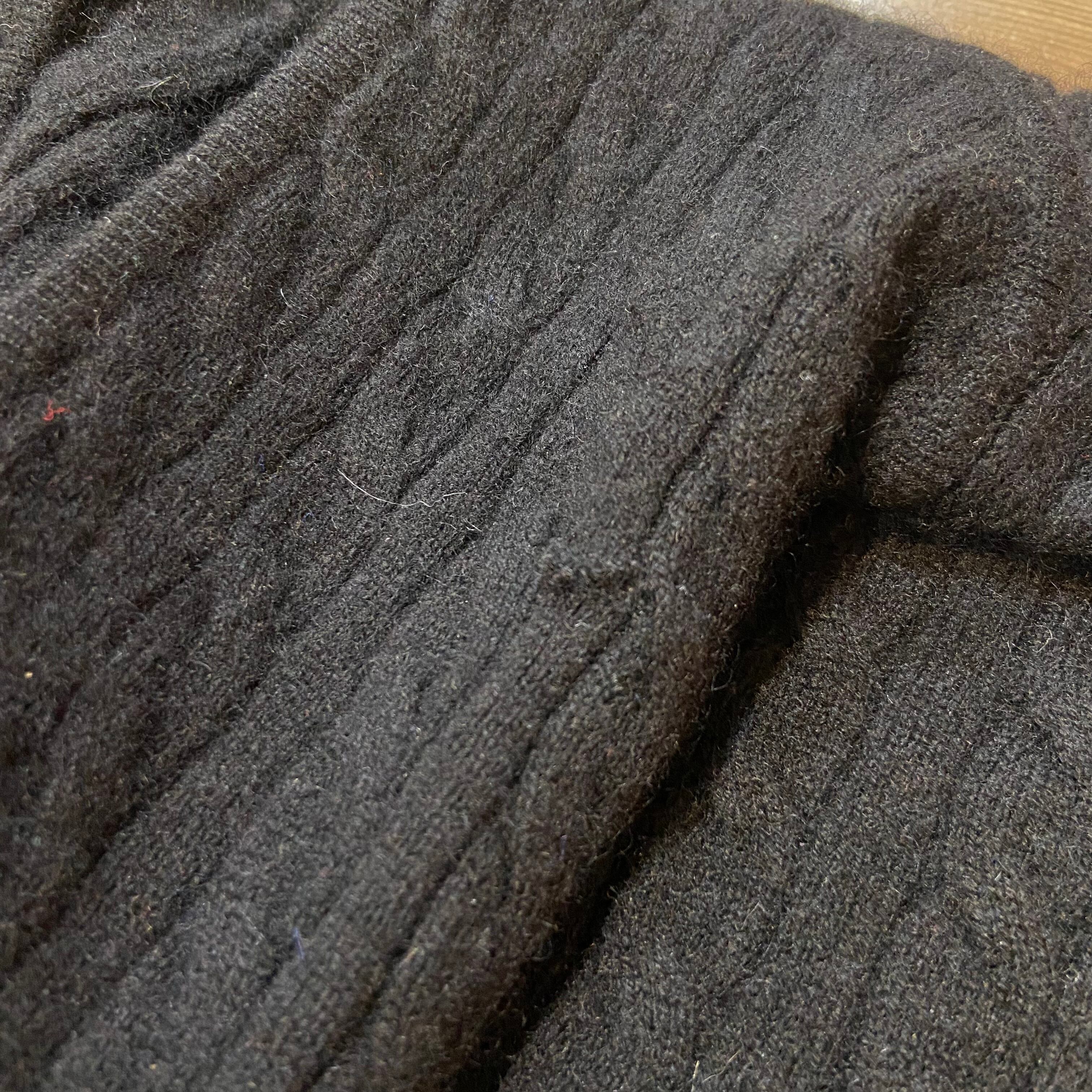 ケーブル編みになっているのも素敵で、無地黒で使い勝手がいいのにデザイン性もあるのが魅力ですね。