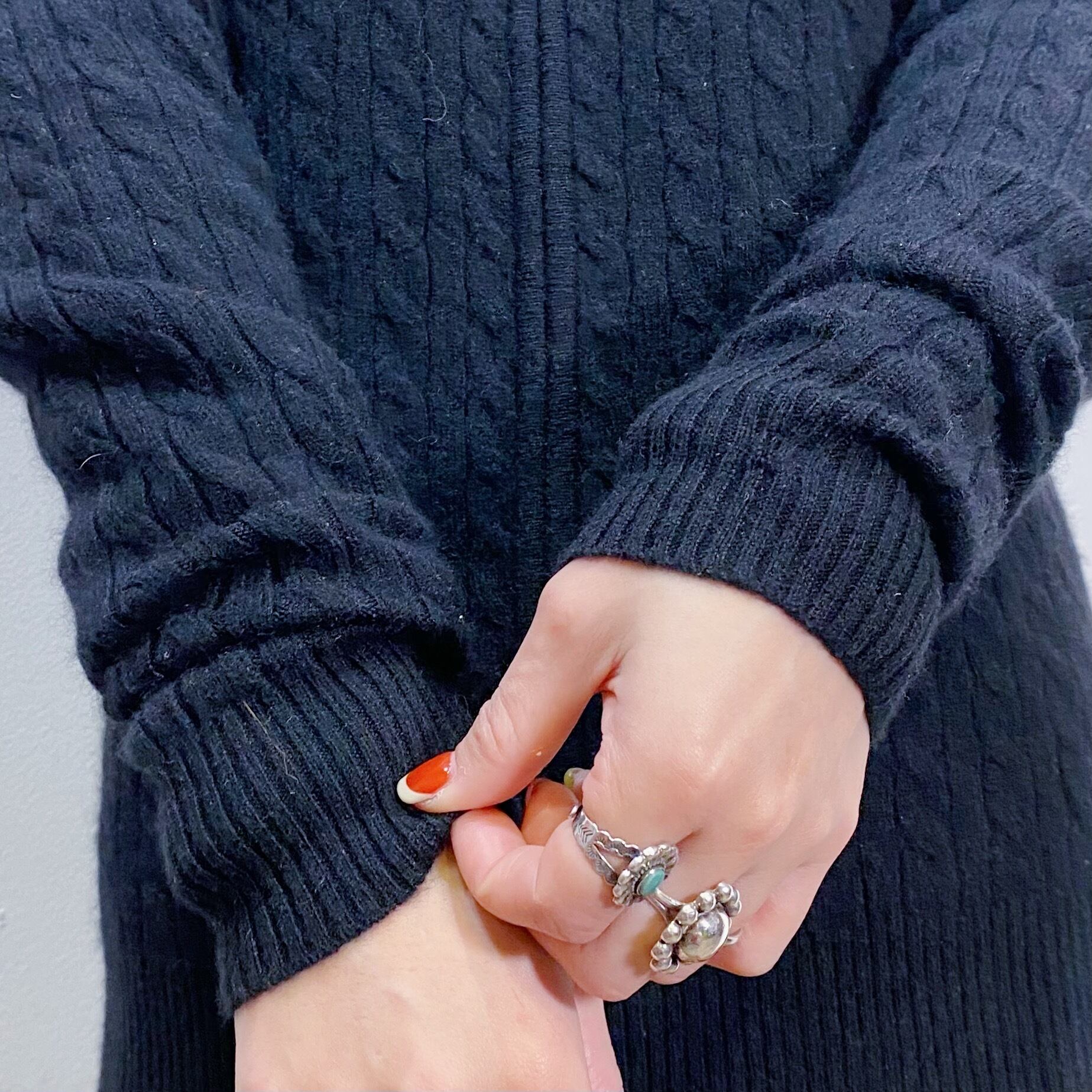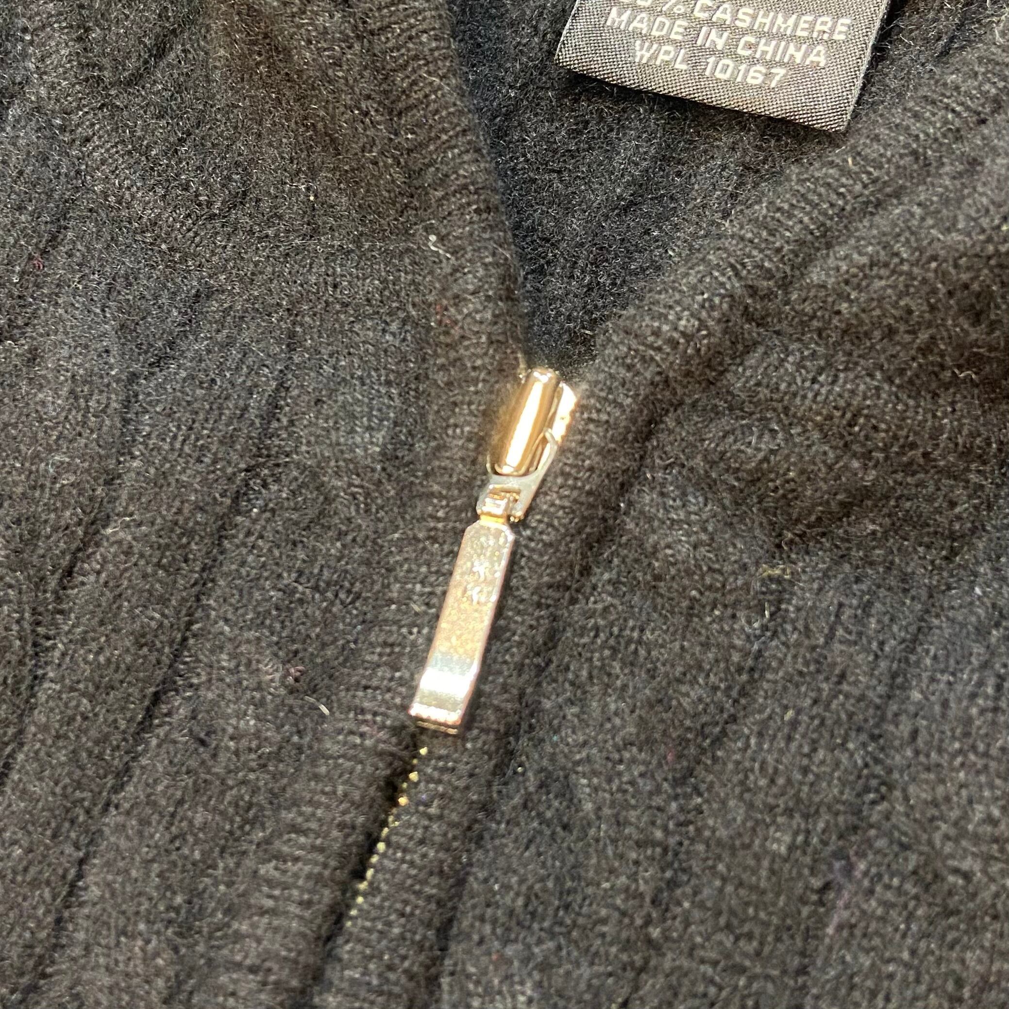 Black cashmere knit zip up foodie