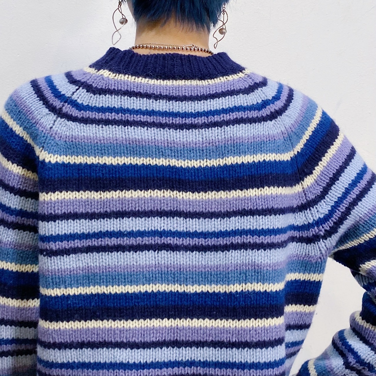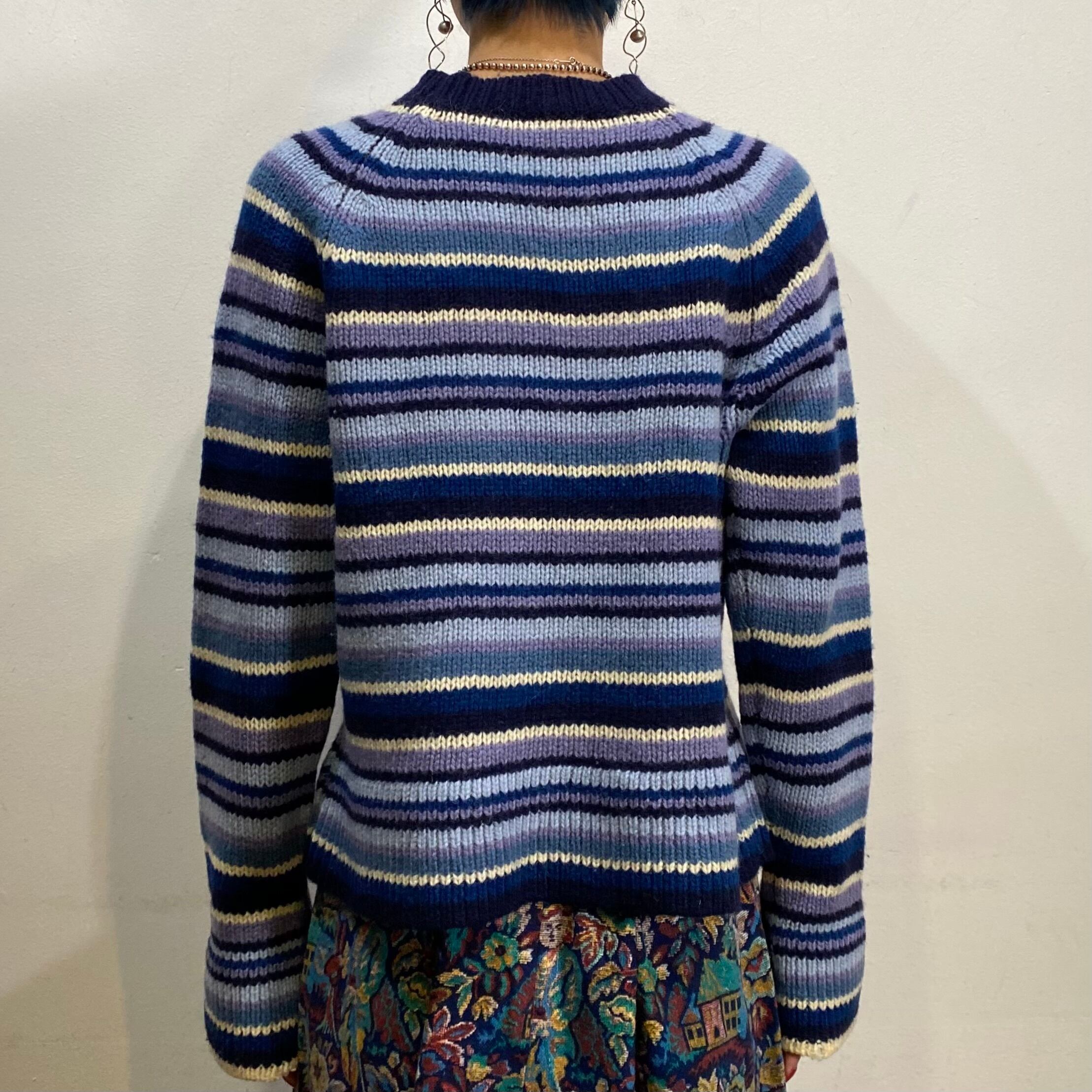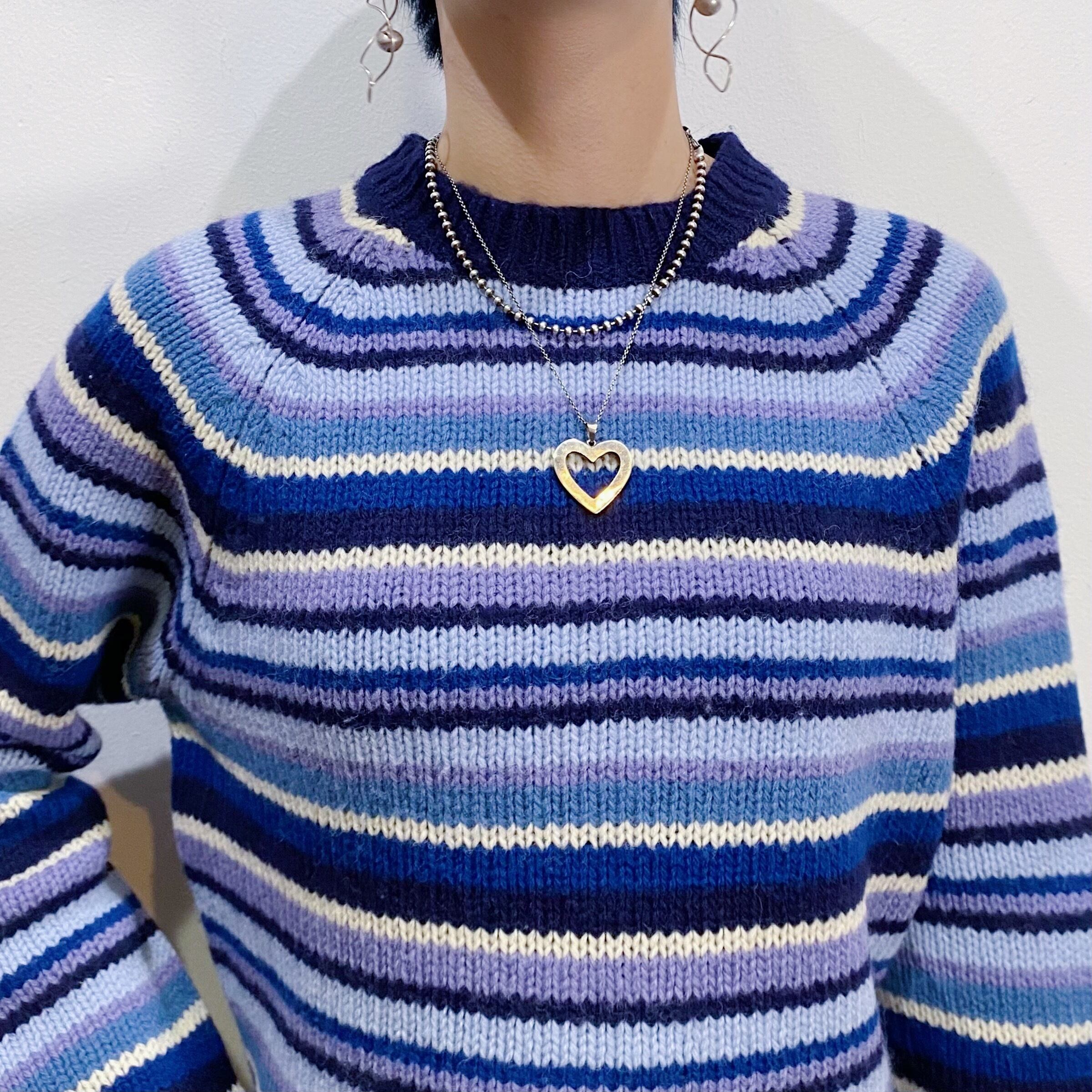 ブルー系のストライプが可愛い、ニットセーターです。