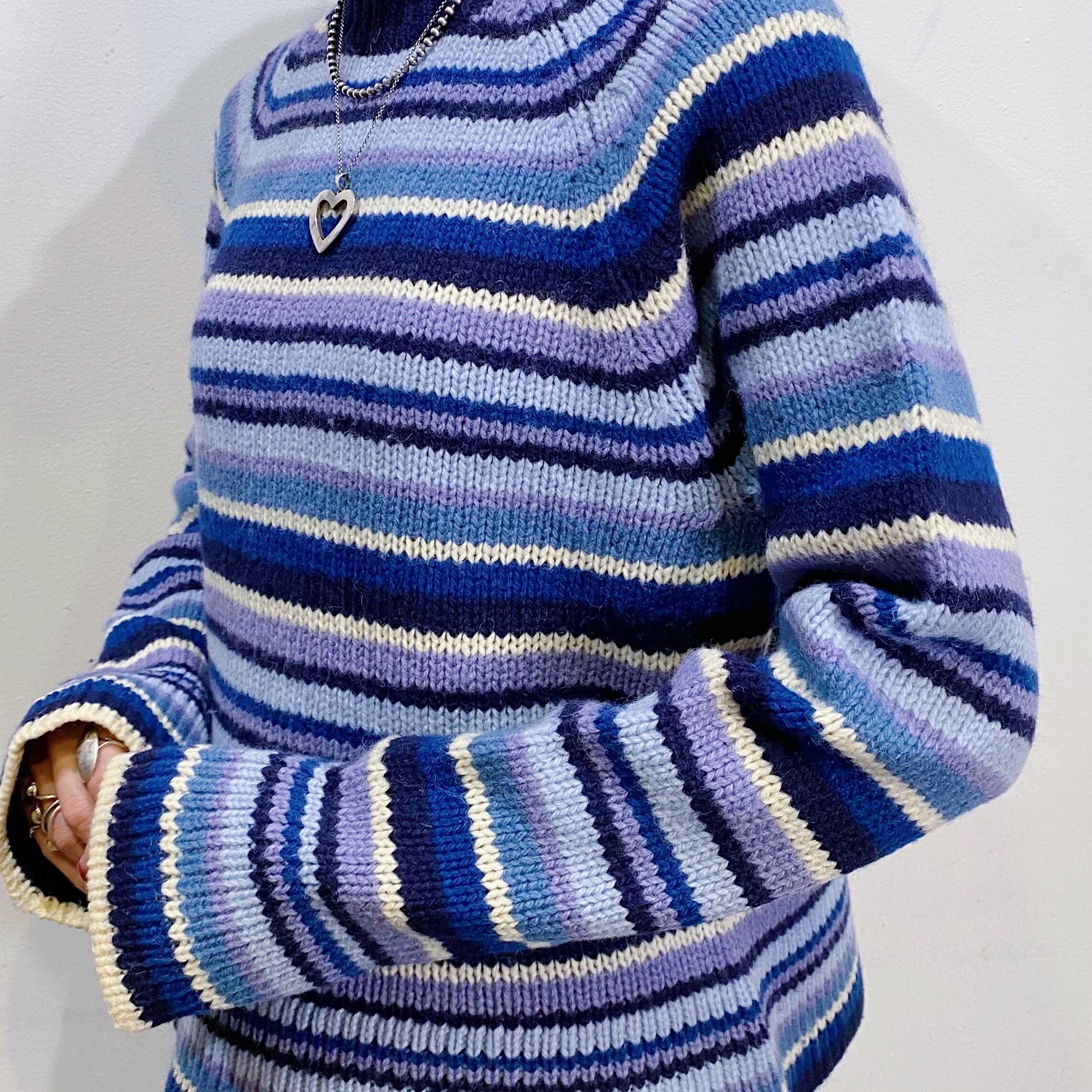 Blue stripe wool knit sweater