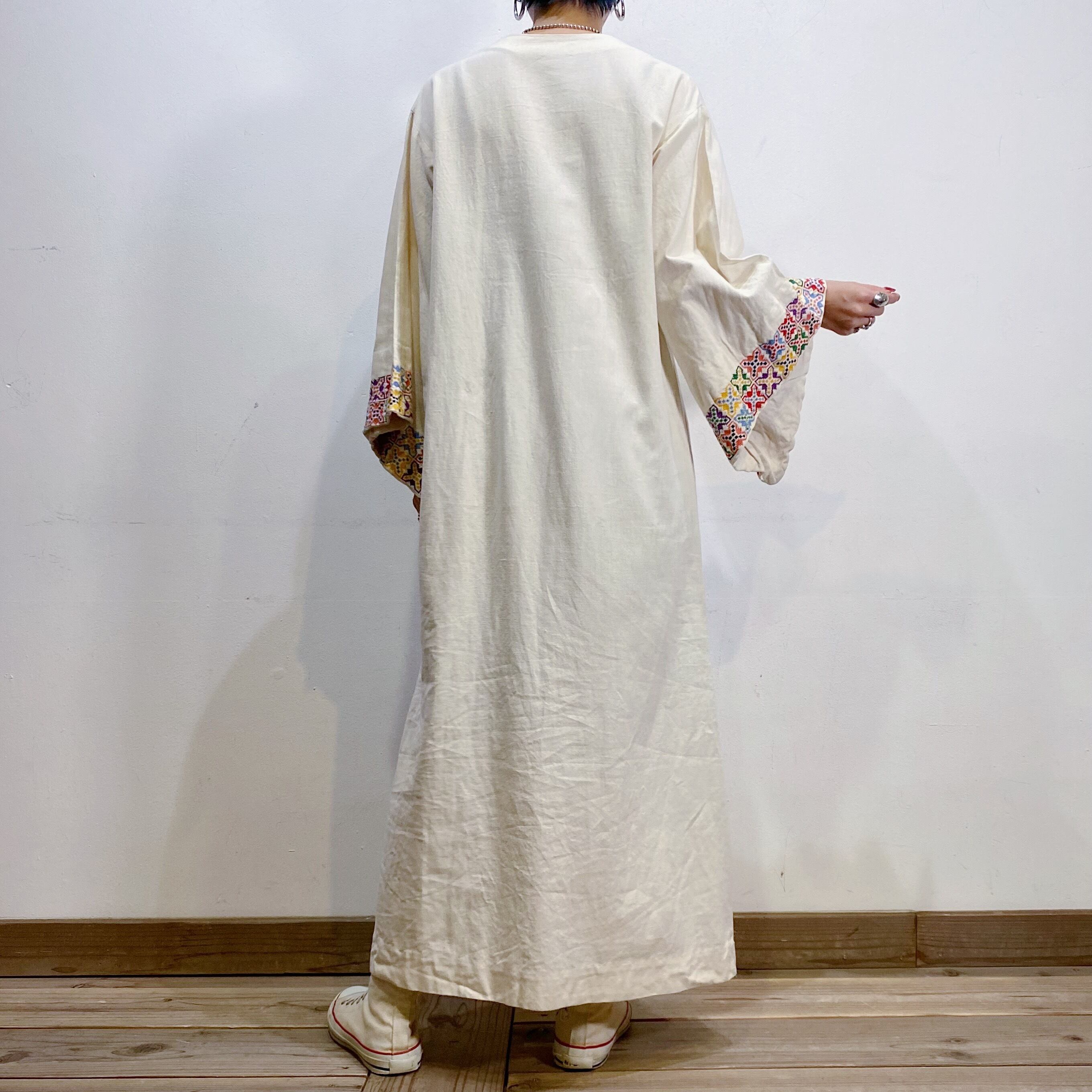 胸元と袖口に施されたカラフルな刺繍が可愛い、70年代のワンピースです。