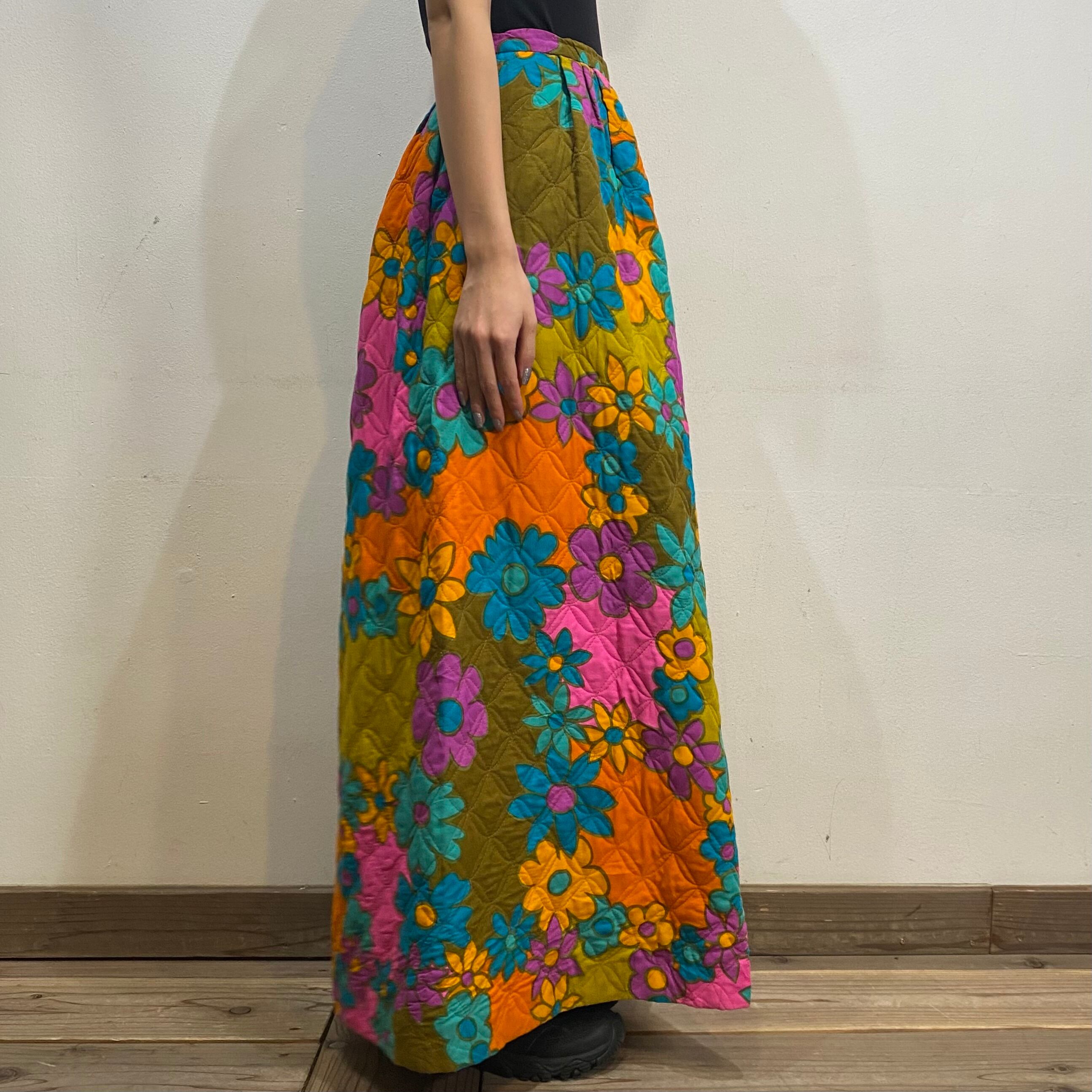 カラフルで着るだけでハッピーになれる、60~70年代の花柄スカートです。