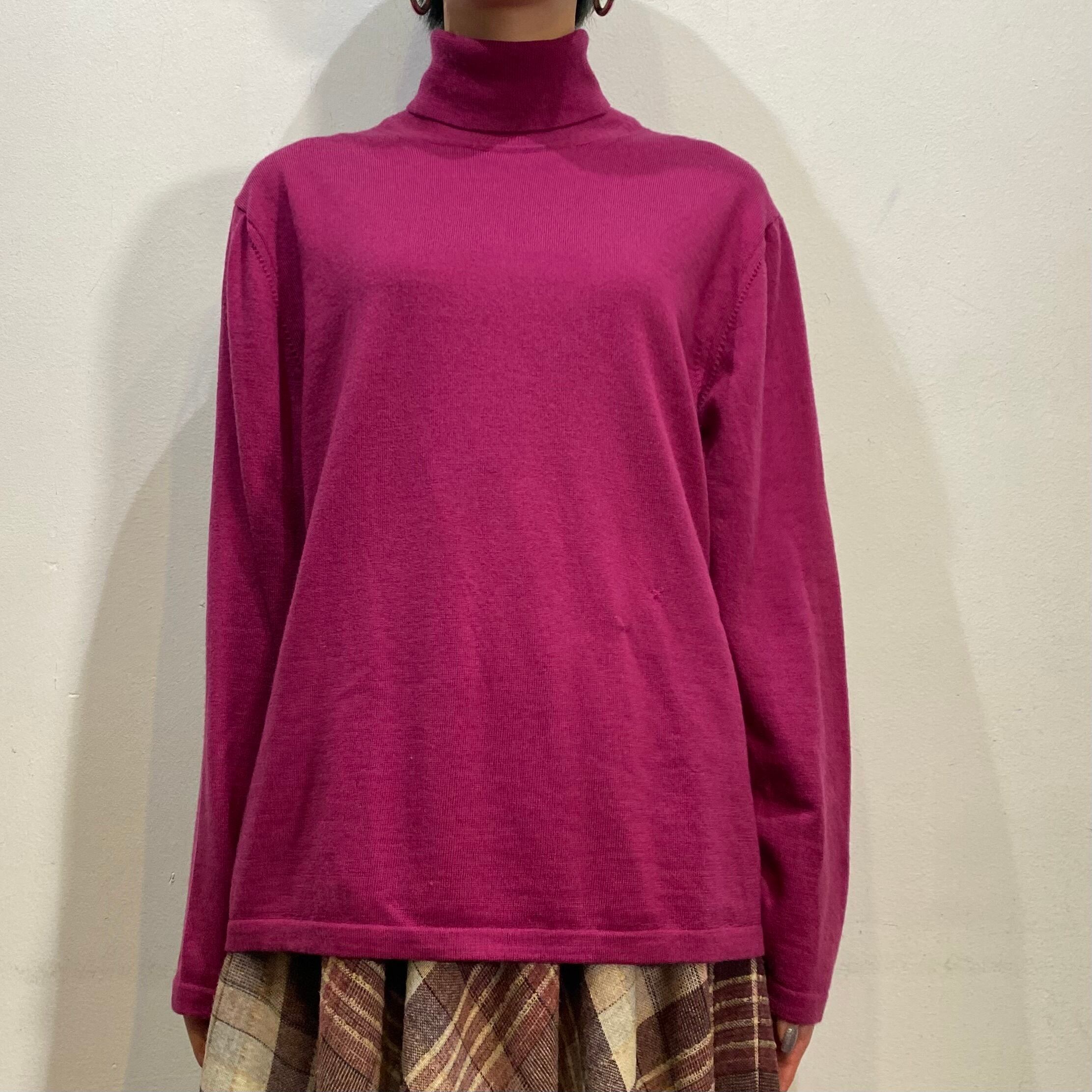 こっくりとしたピンクが可愛い、ハイネックニットセーターです。