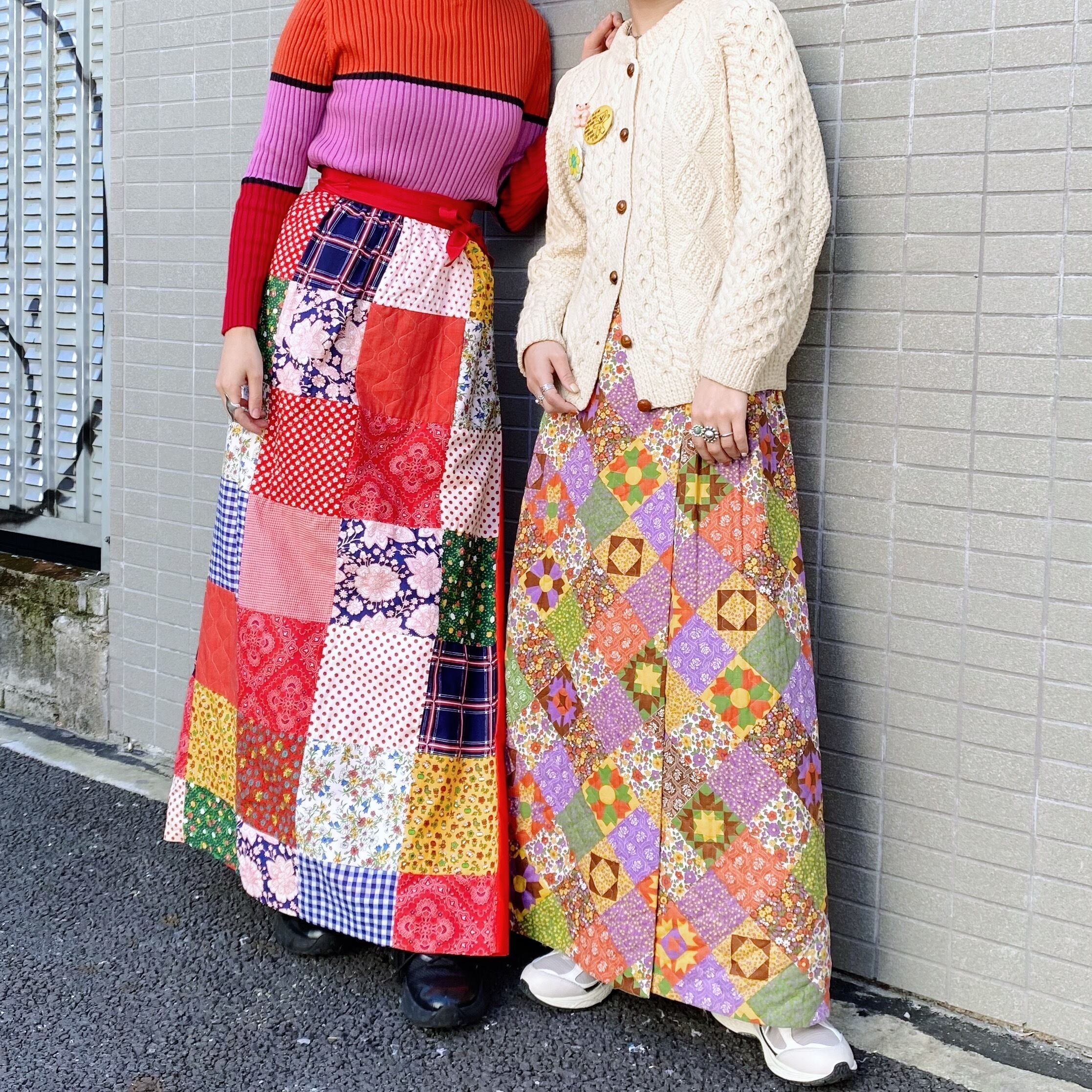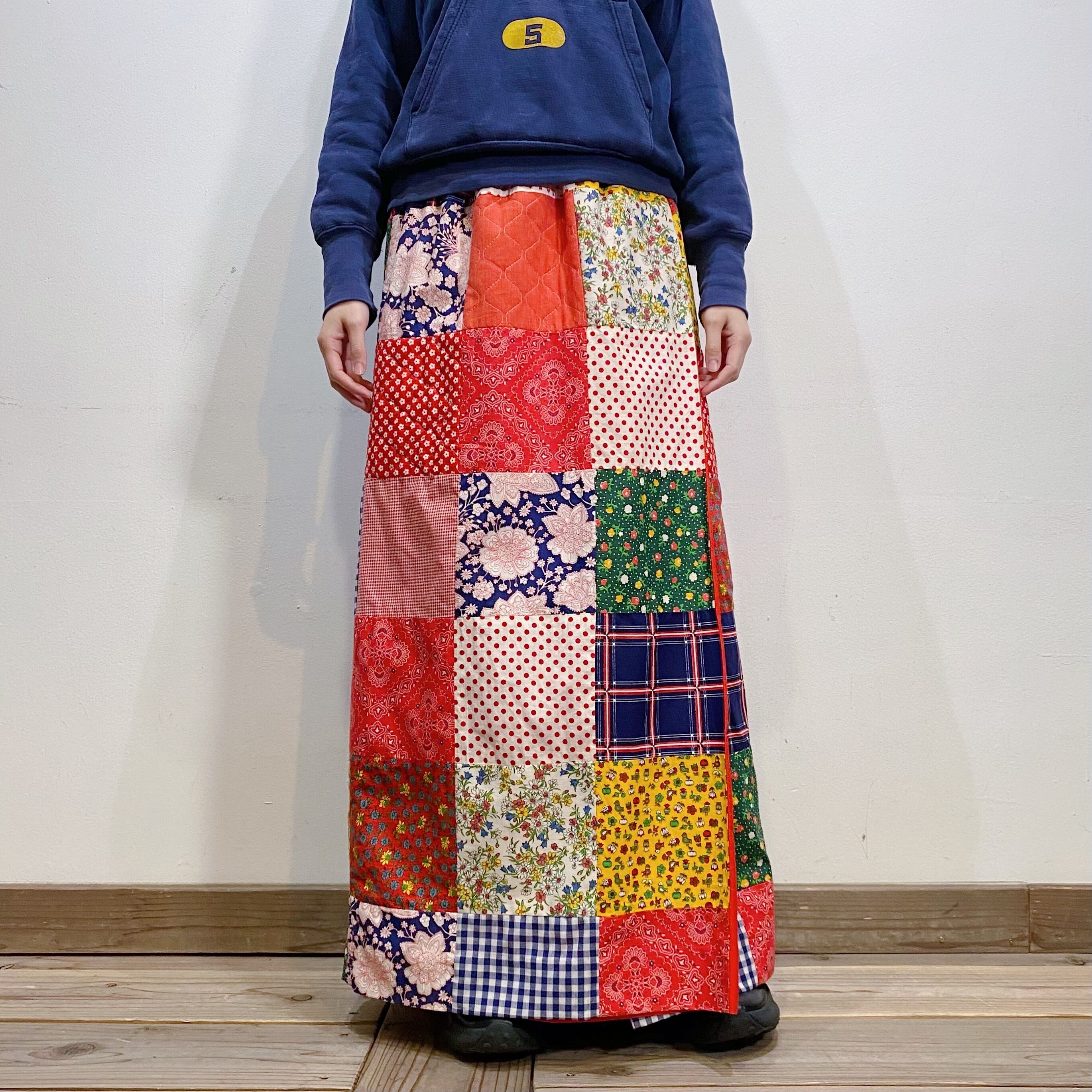 70年代のいろんな生地がリアルパッチワークされたロングスカートです。