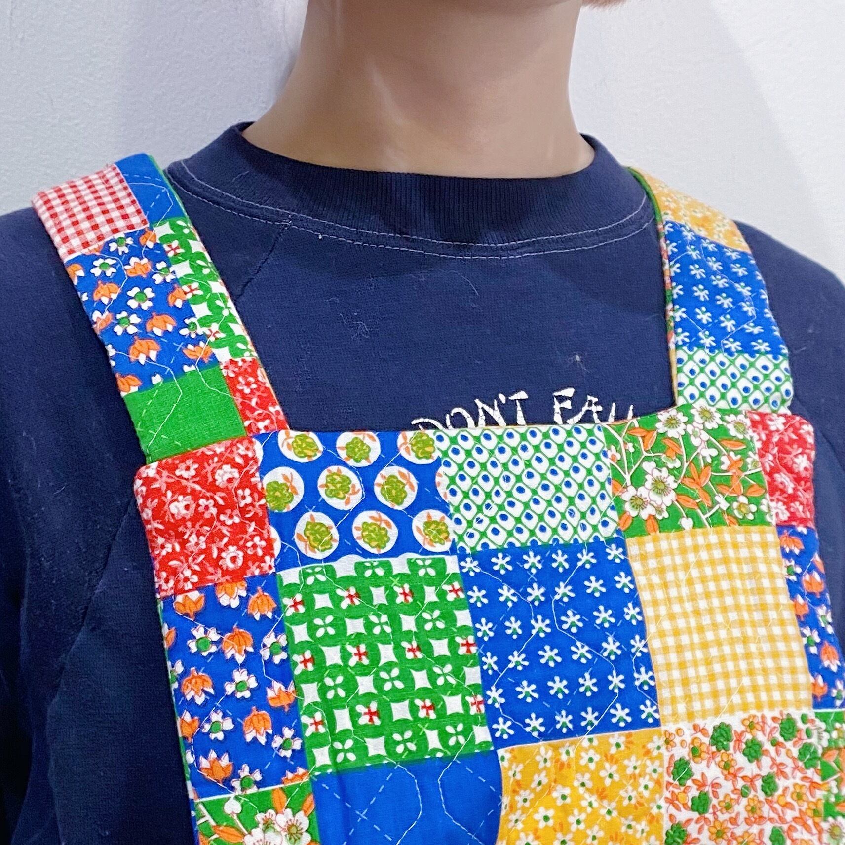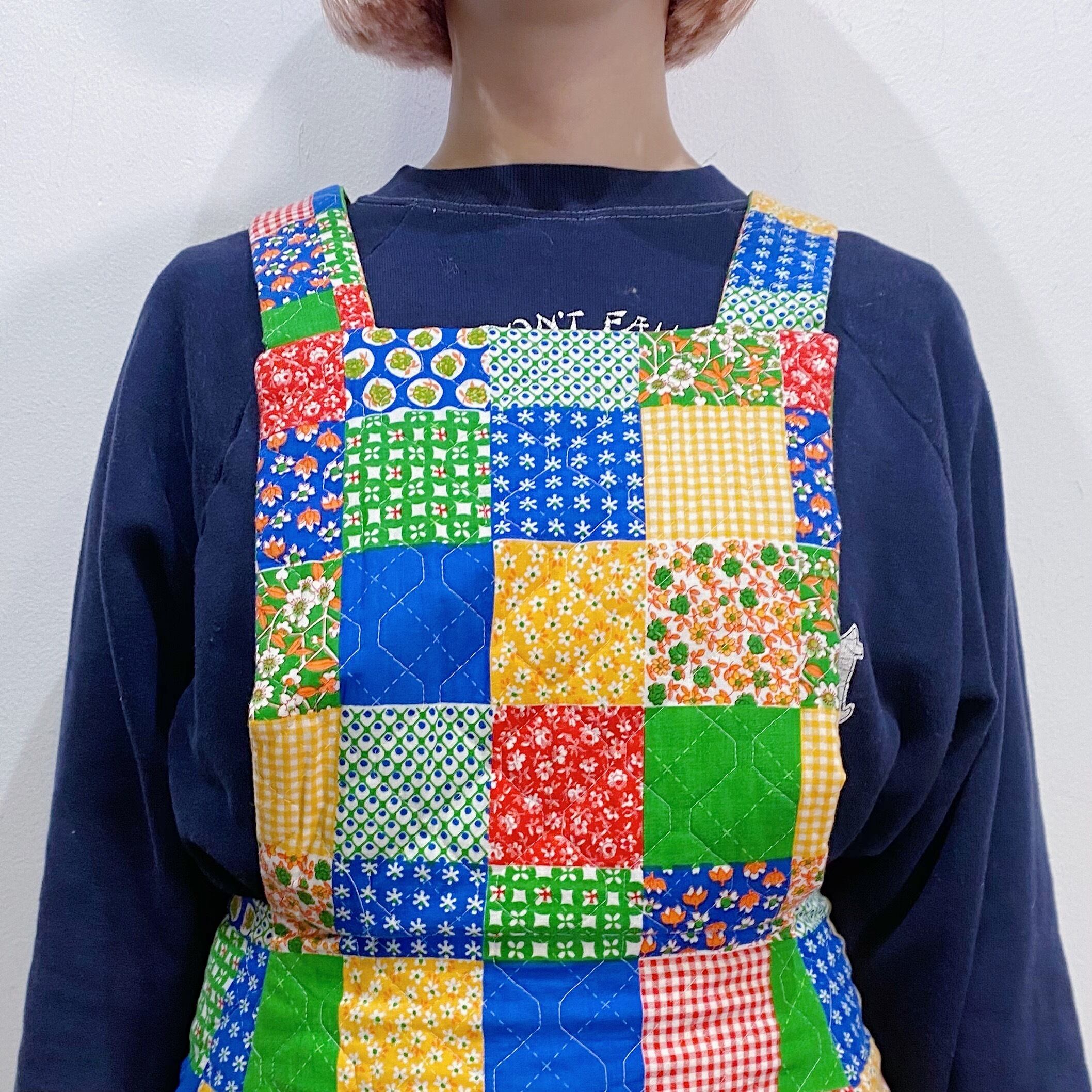 カラフルでハッピーなパッチワークプリントが最高に可愛いジャンパーワンピースです。