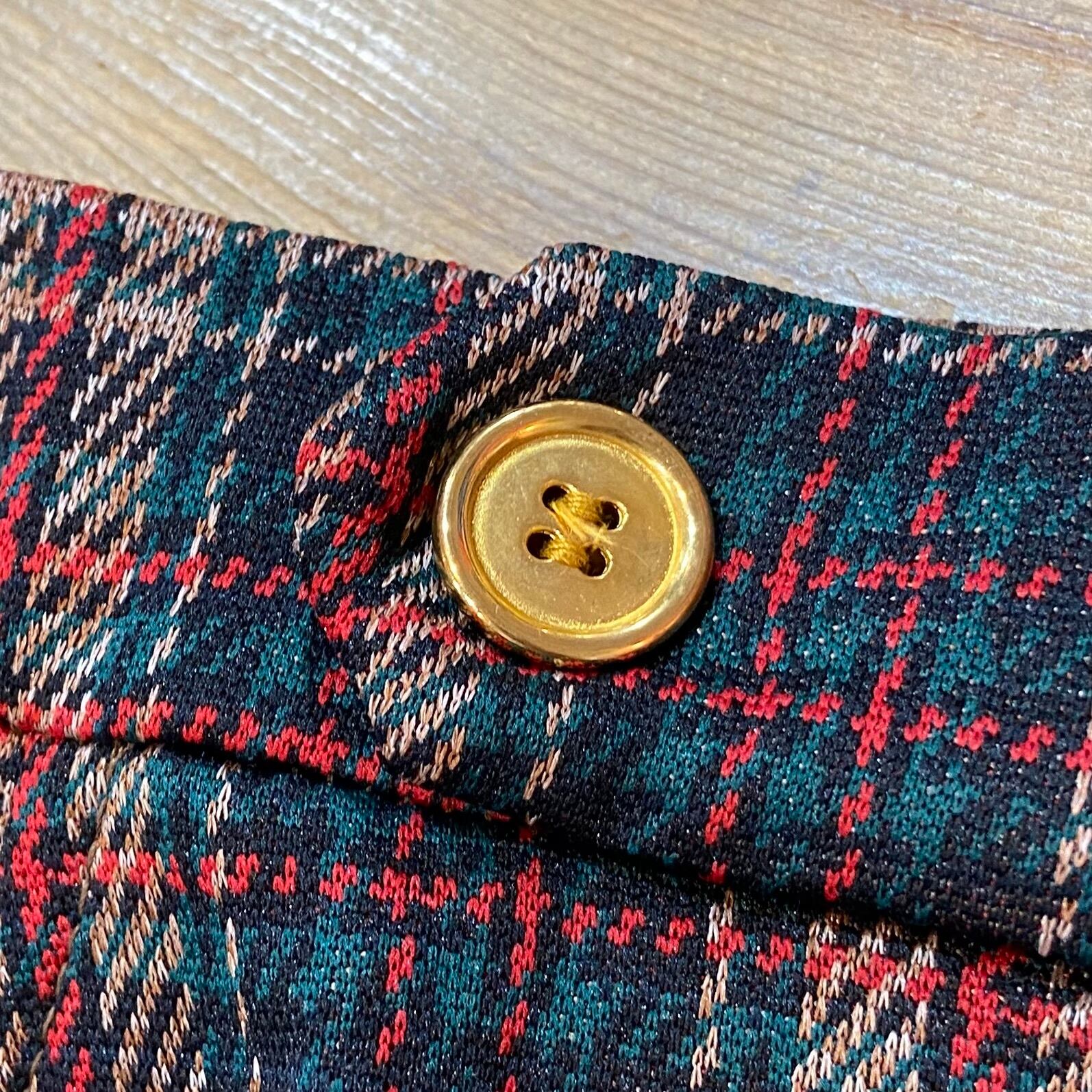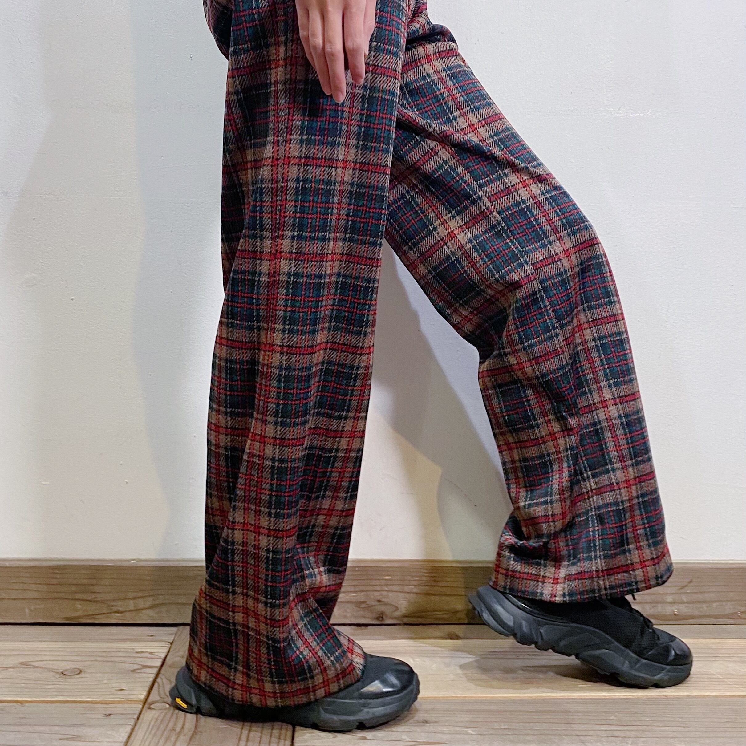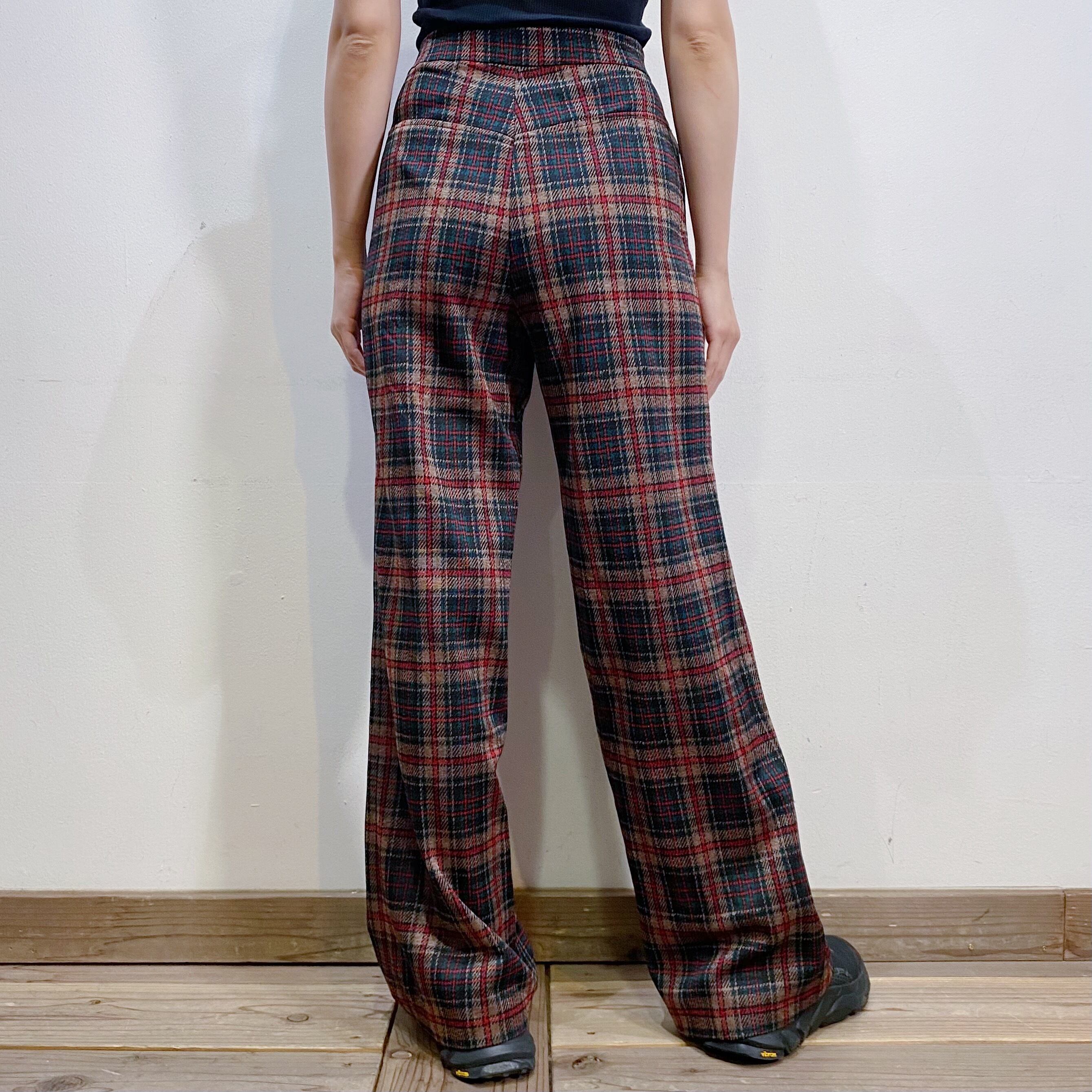 グリーン・レッド・ブラウンカラーのチェック柄が可愛い、70年代のワイドパンツです。