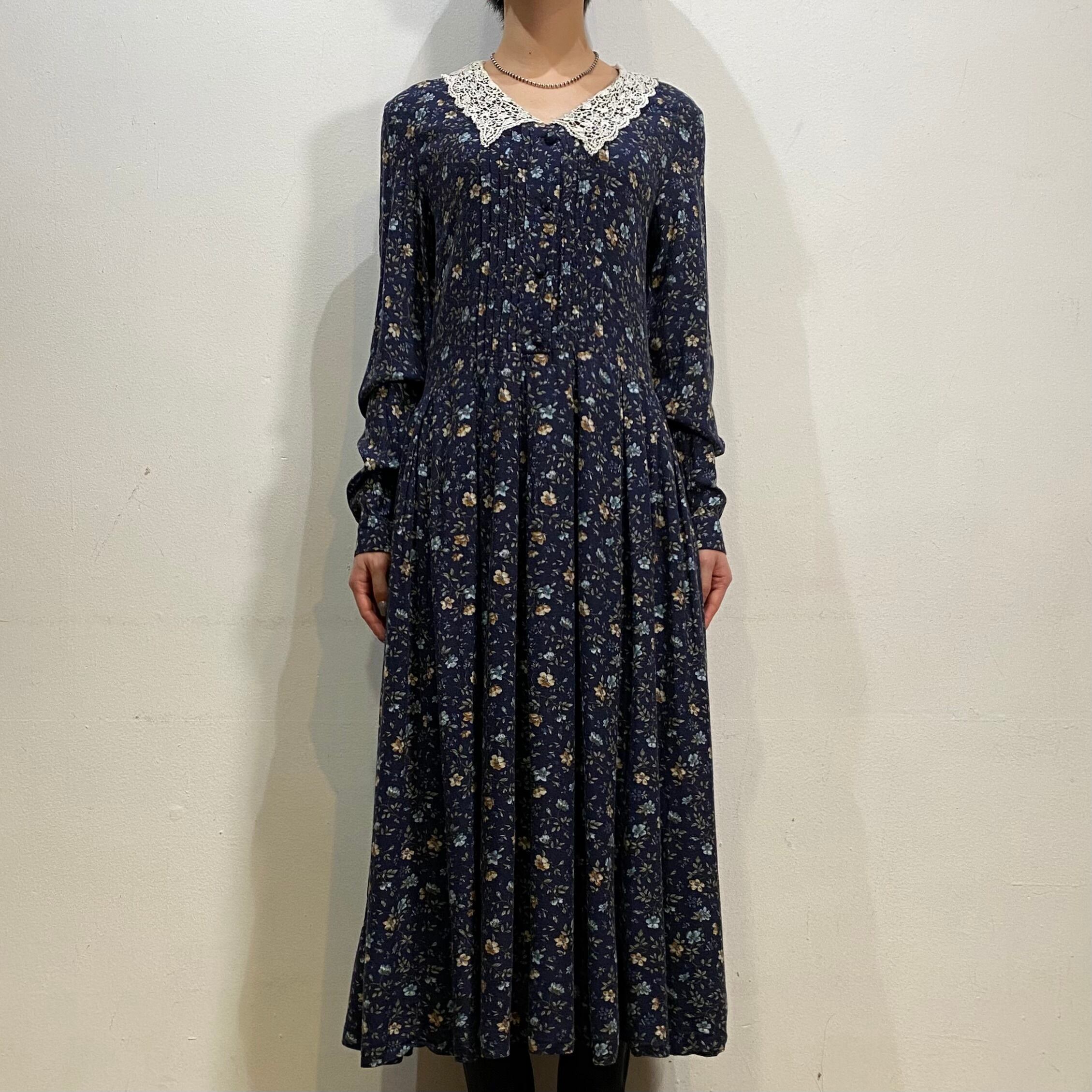 ネイビベースの花柄が可愛い、ローラアシュレイのワンピースです。