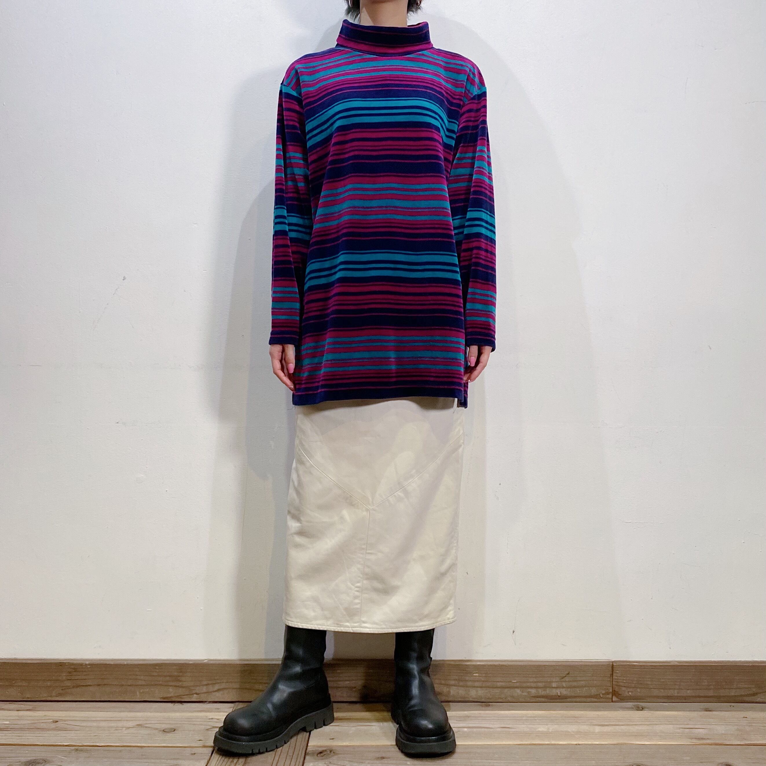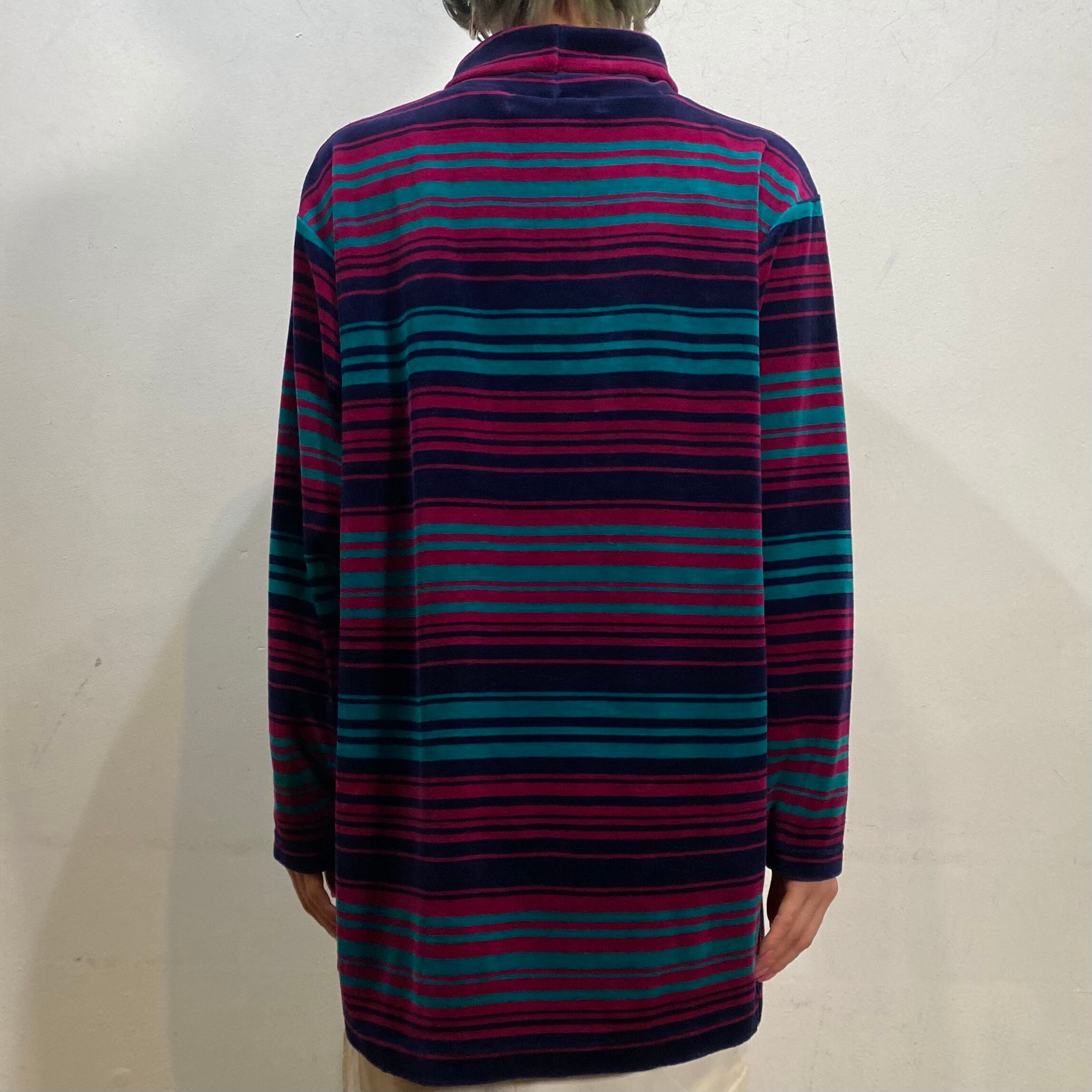 パープルとグリーンのボーダー柄が可愛い、90年代のトップスです。