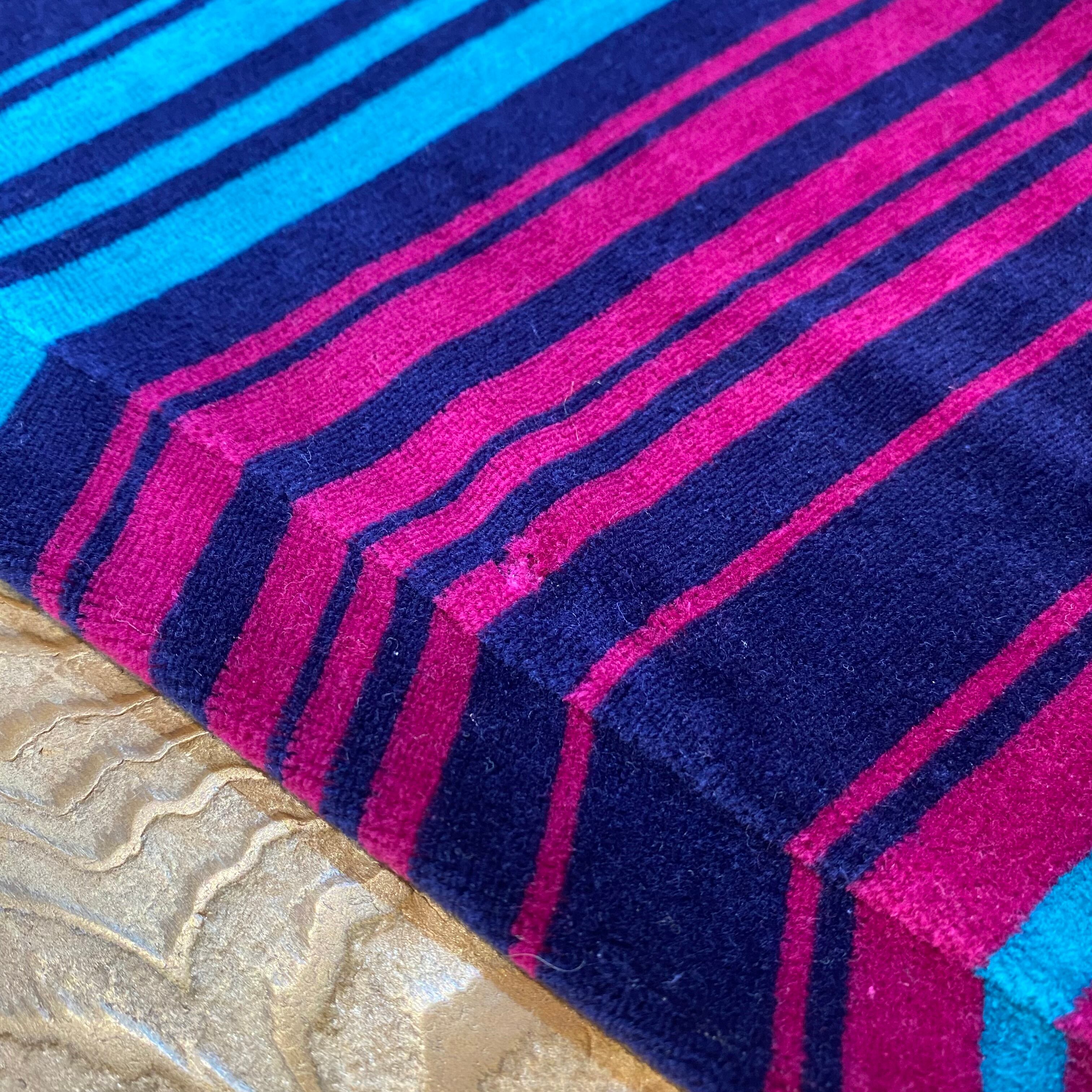 80s purple and green stripe velvet top