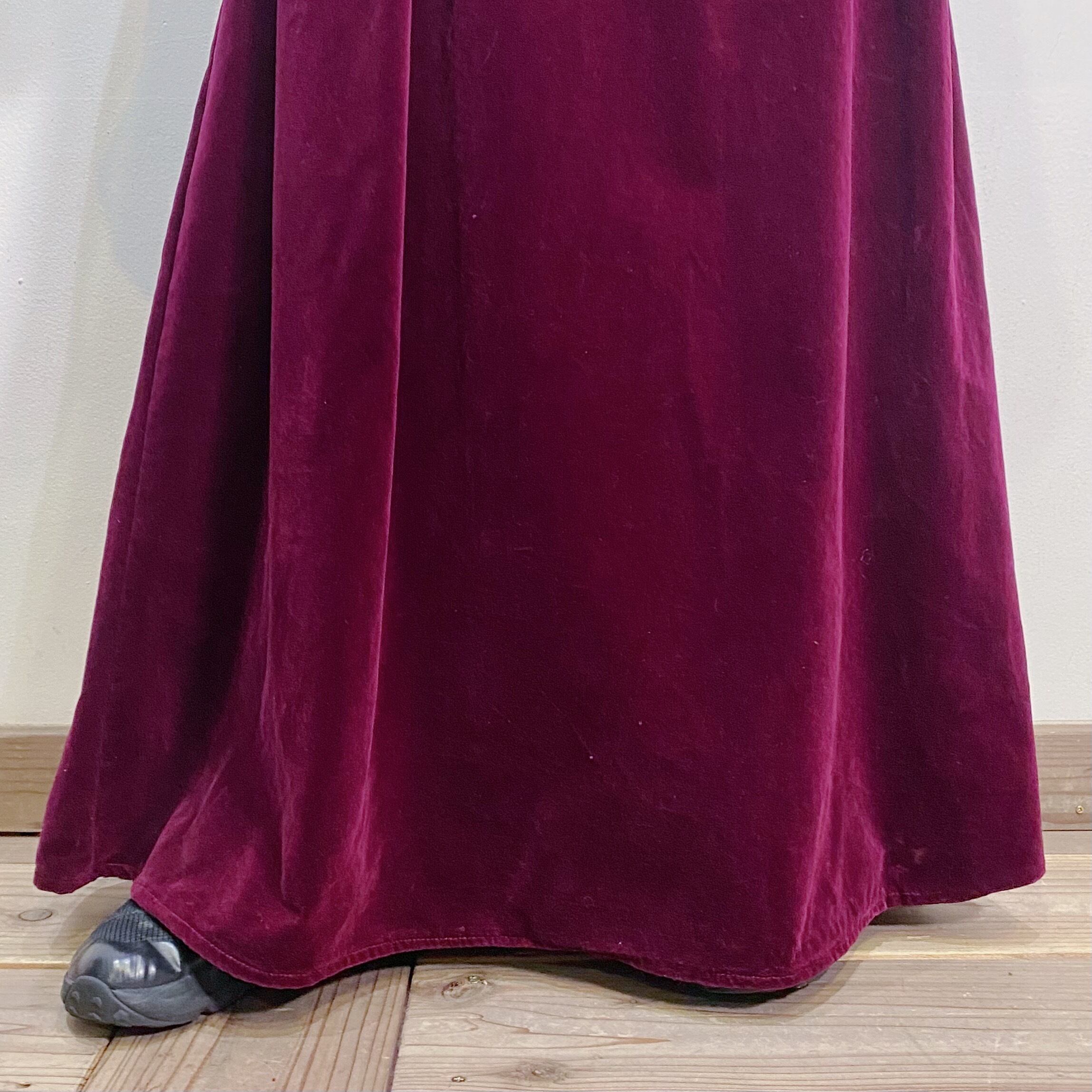 パフになったお袖に綺麗なAラインシルエットが魅力の、70年代のロングワンピースです。