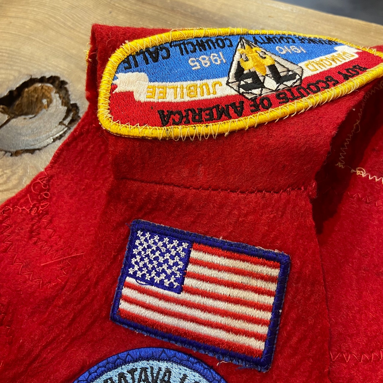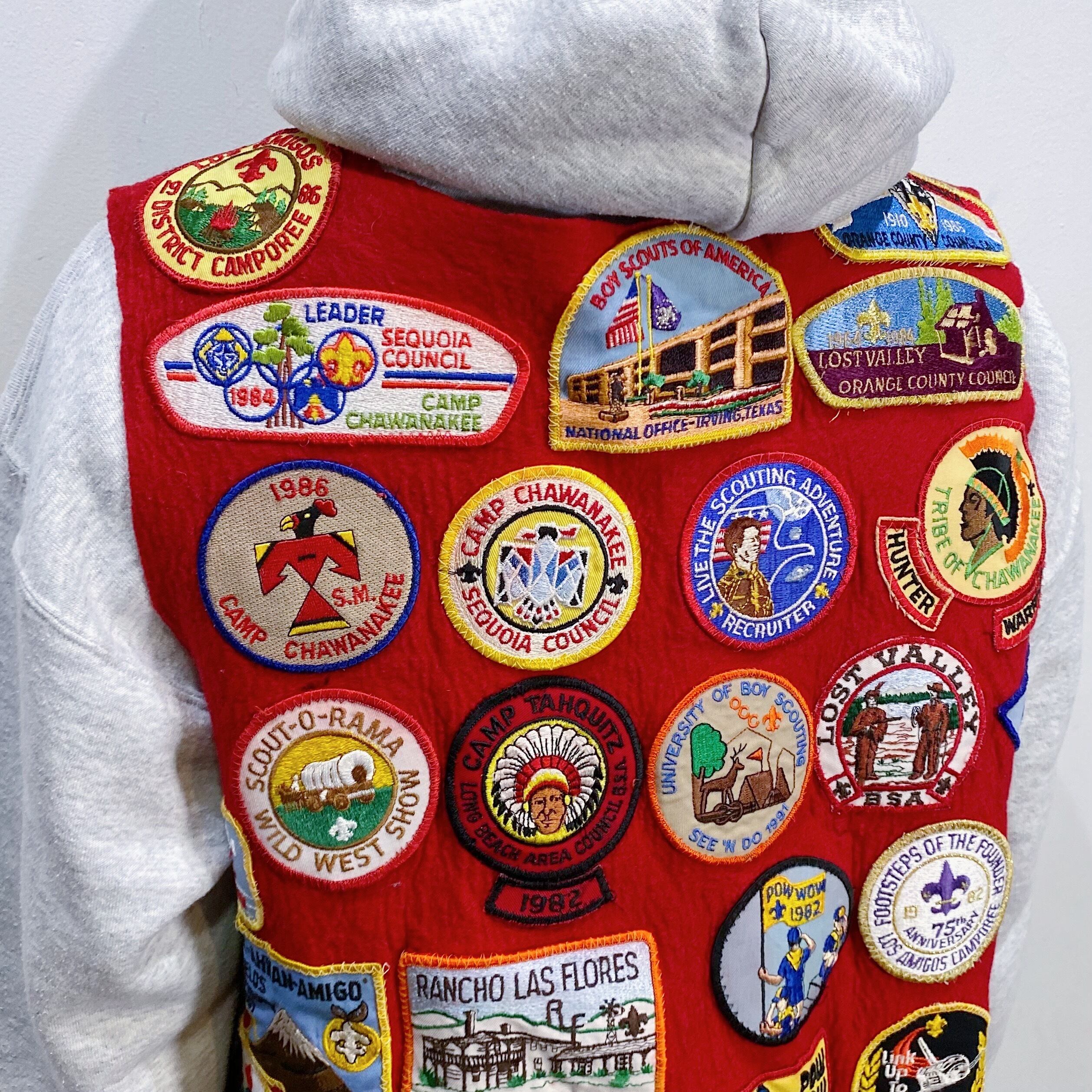 これでもかとビッシリ全面に縫い付けられたワッペンがとにかく豪華な、80~90年代のボーイスカウトのベストです。