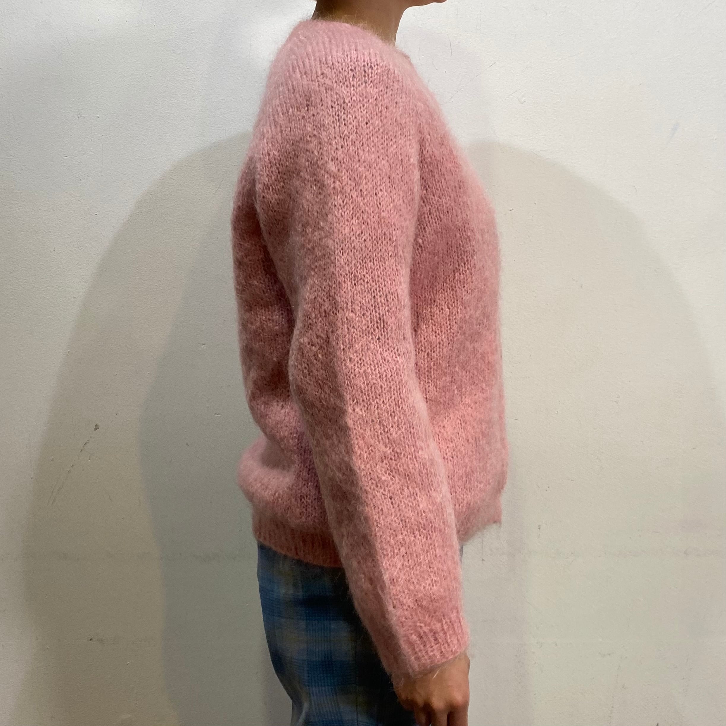 Pink mohair knit cardigan