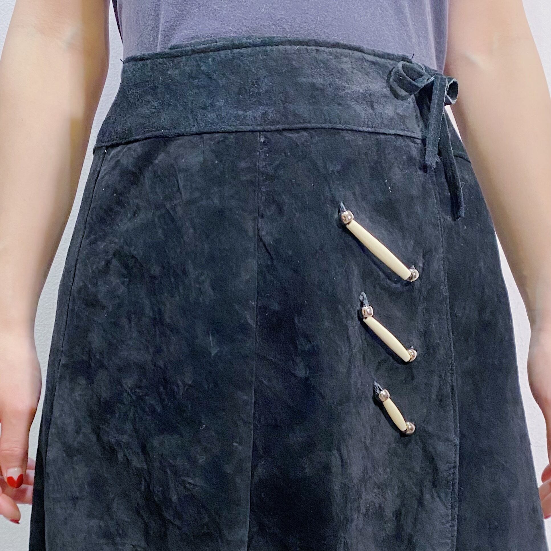 裾のフリンジが可愛い、80年代のスエードスカートです。
