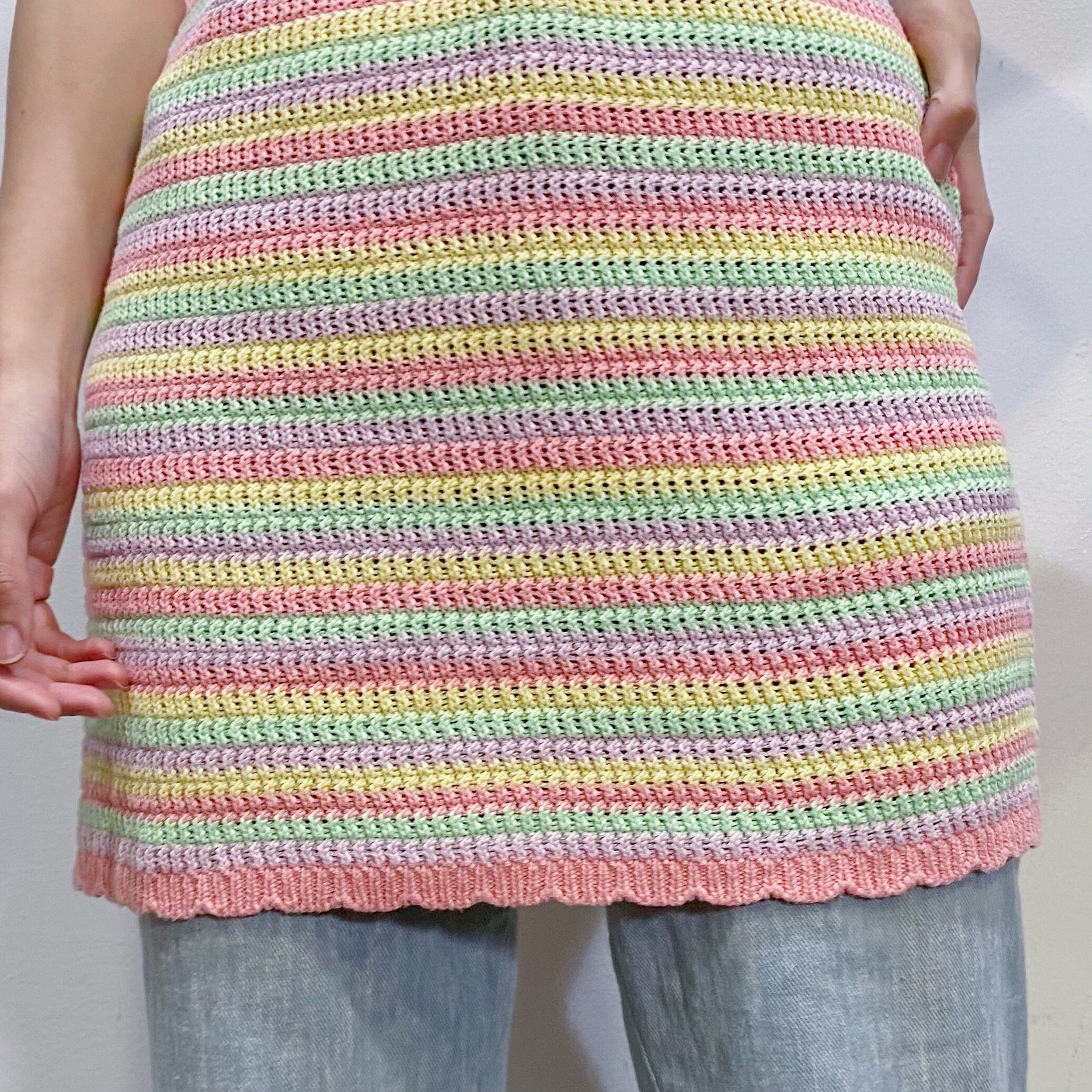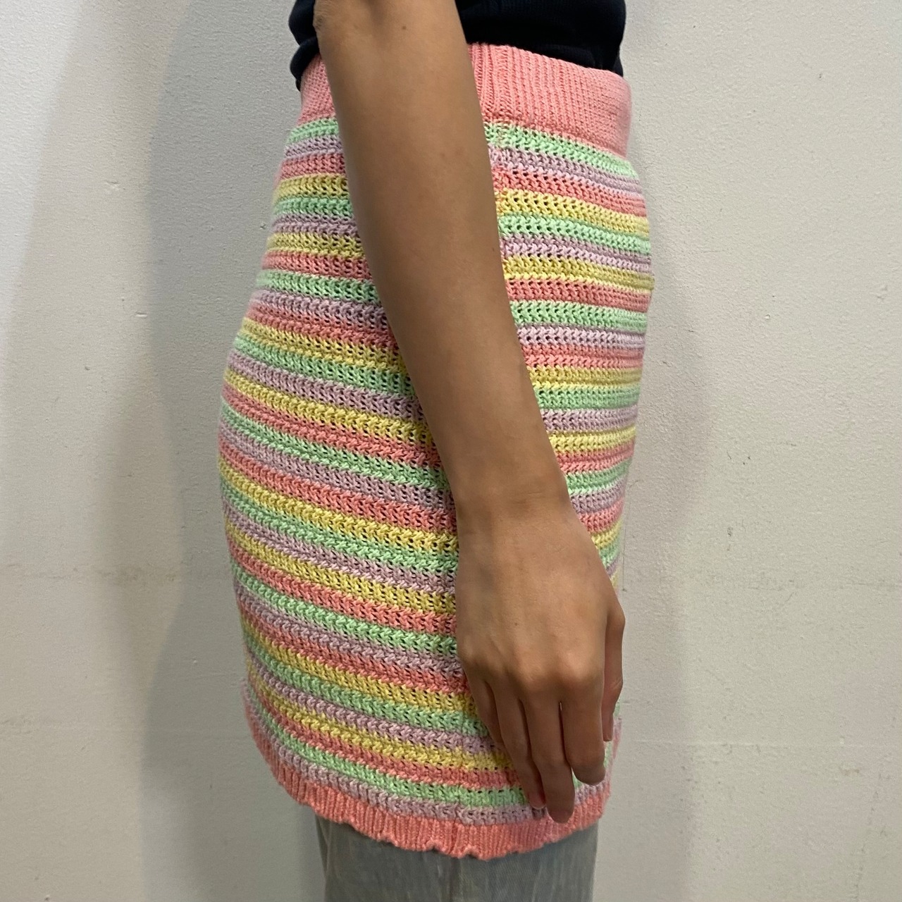パステルカラーのボーダーが可愛い、ミニスカートです。