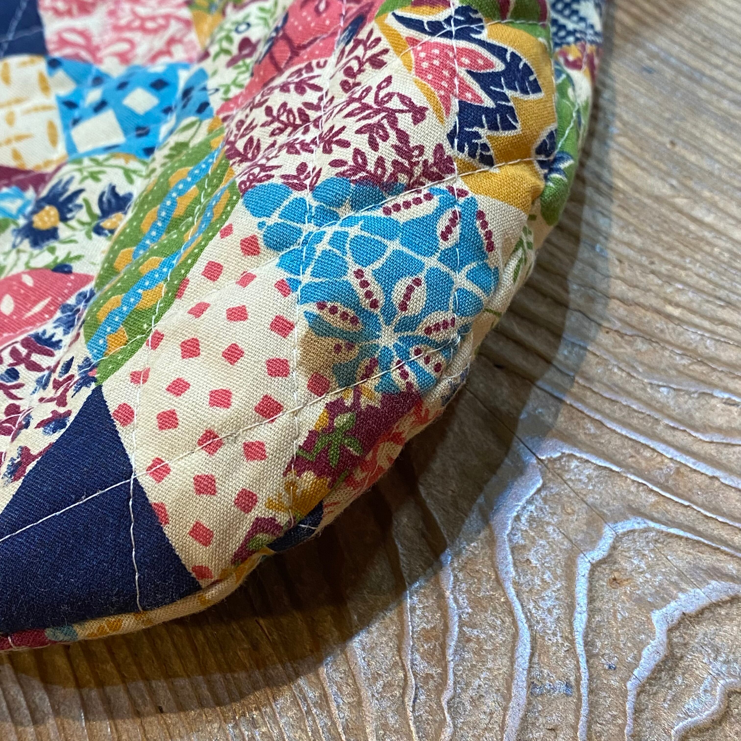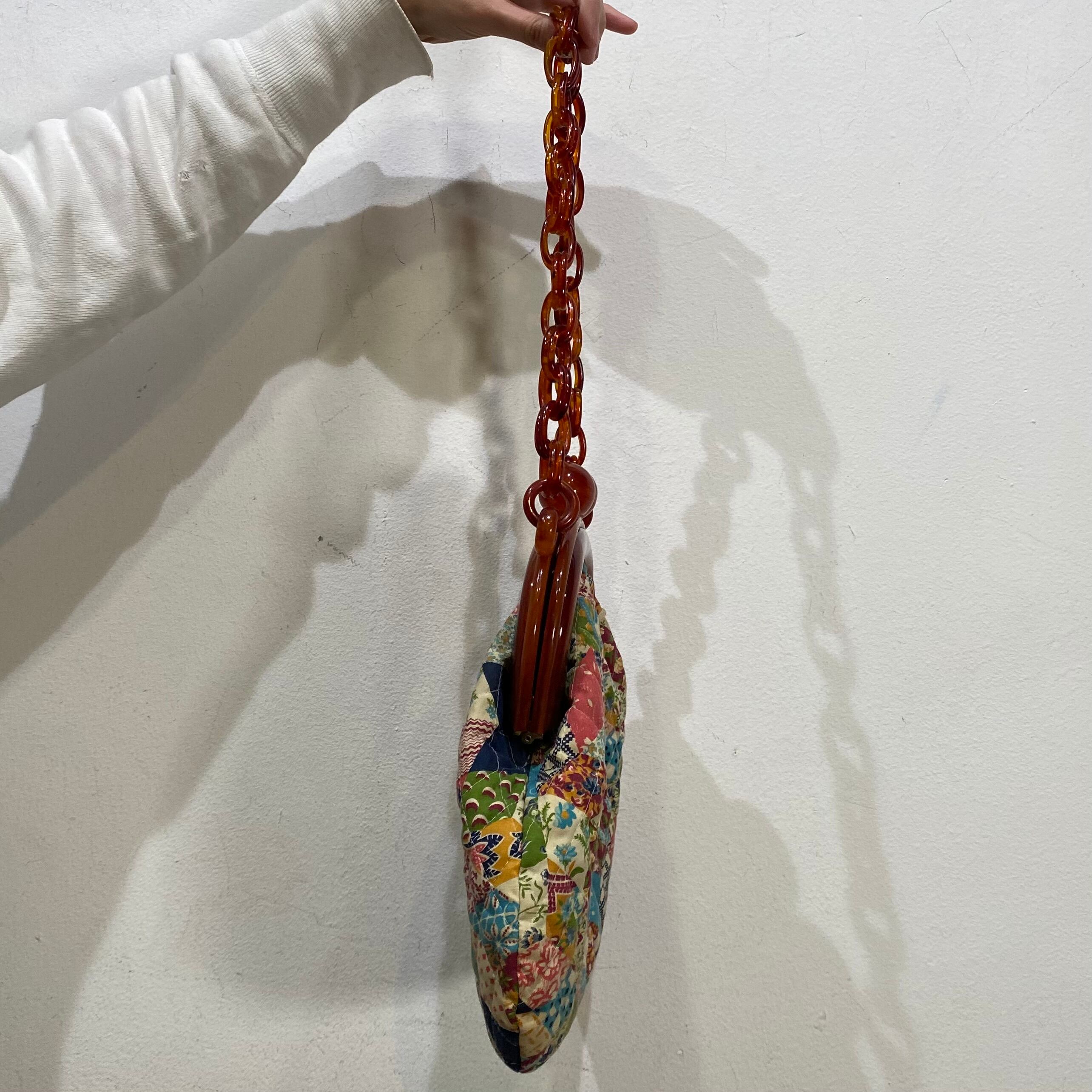 1960s lucite handle quilting patchwork bag