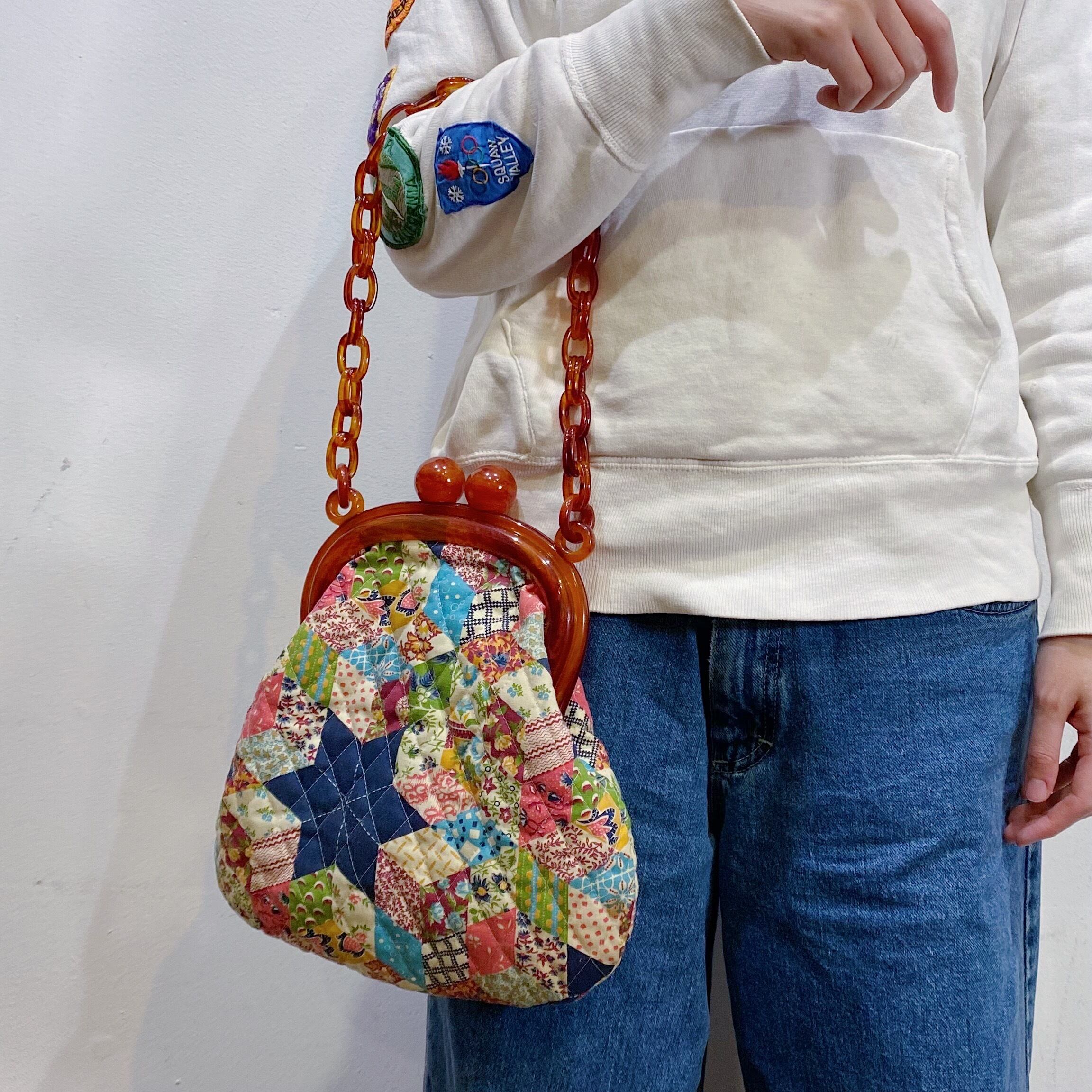 ルーサイト部分だけでも価値が高いアイテムですが、こちらはさらにバッグのボディ部分がパッチワーク柄のキルティングになったスペシャルな逸品。