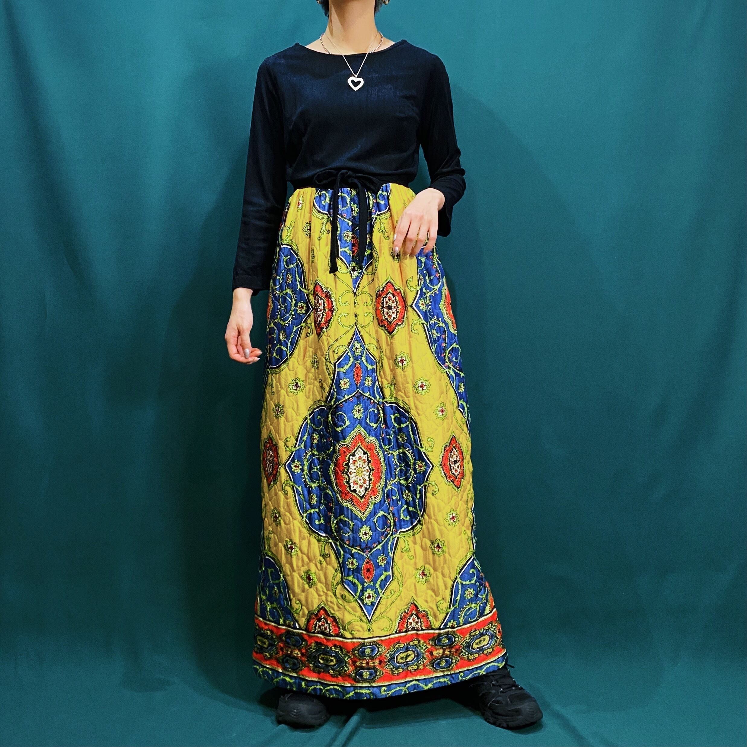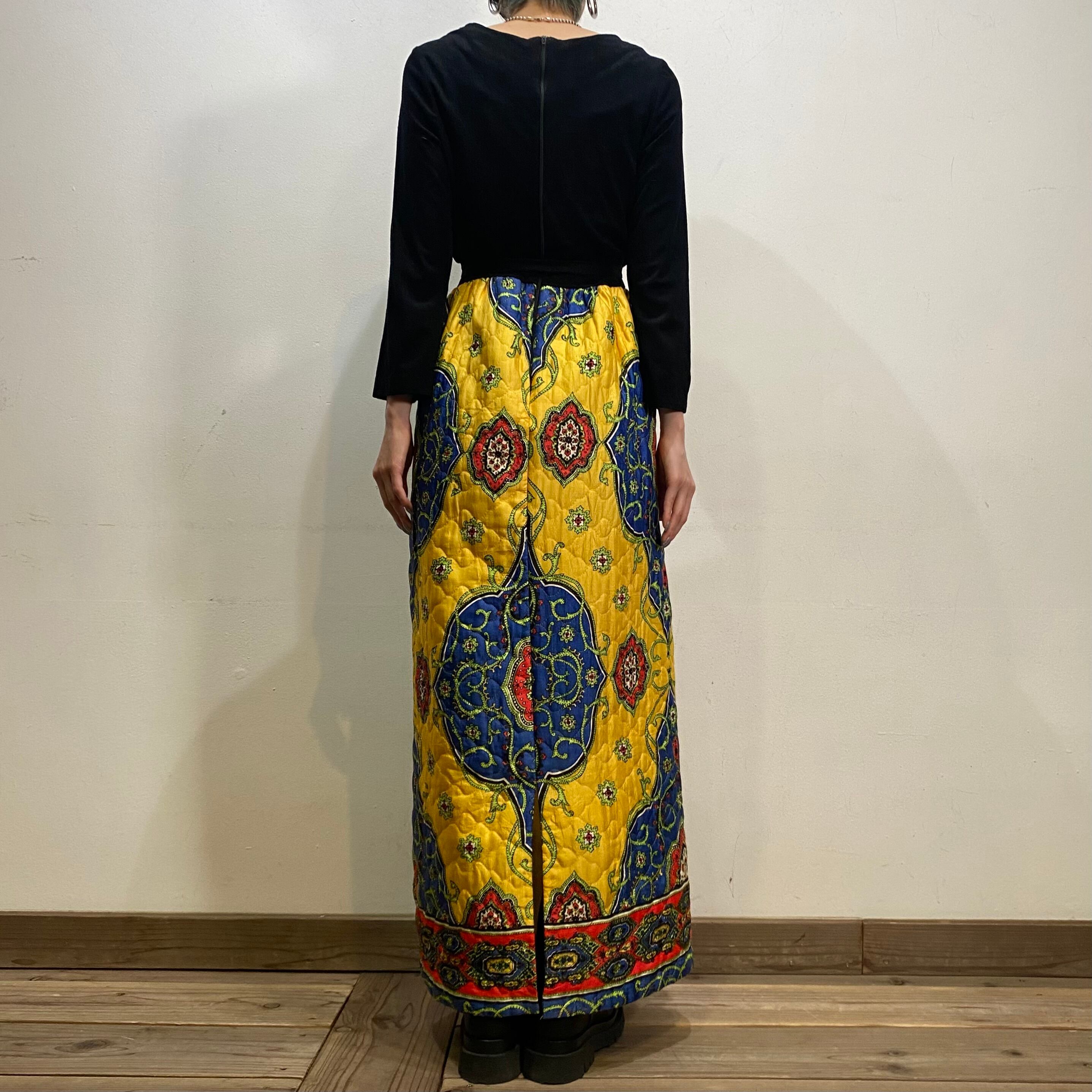 キルティングの切り替えデザインが可愛い、60~70年代のロングワンピースです。