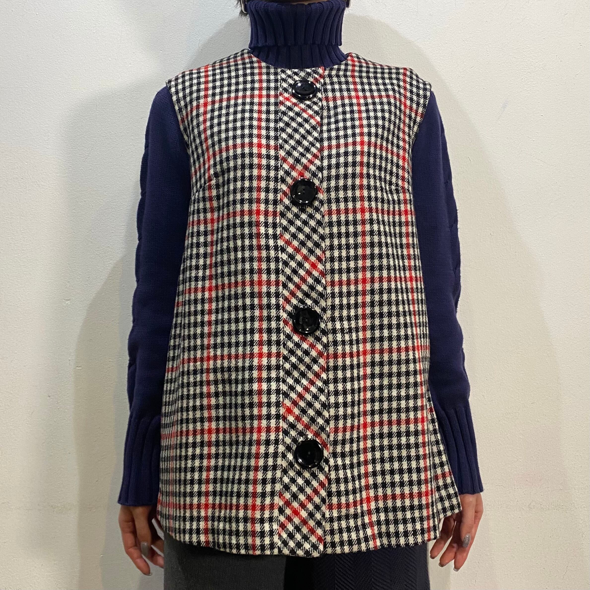 モノトーンカラーと赤のチェックが可愛い、ウール素材のベストです。