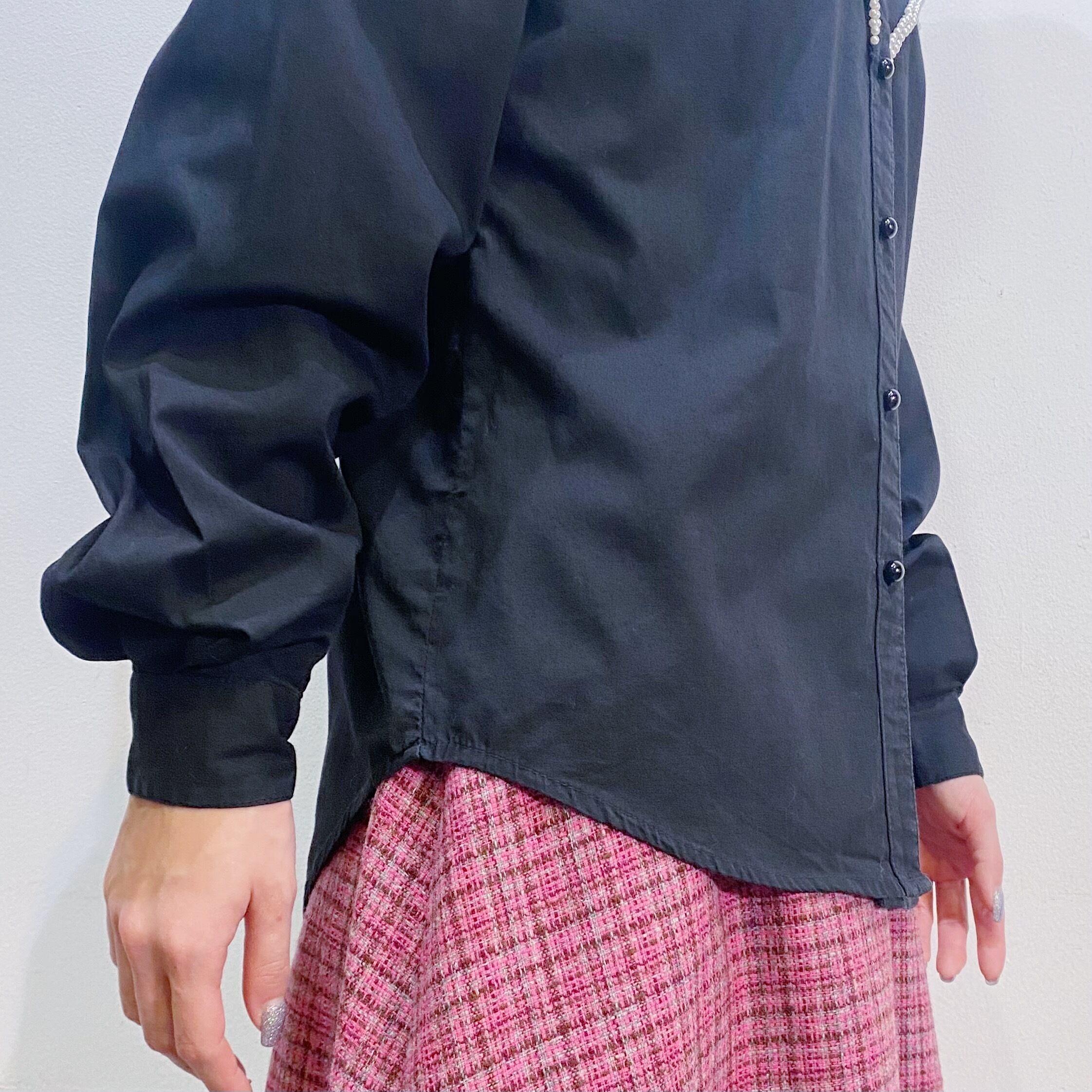 ブラックベースにホワイトのパールが映えて可愛い、80年代のシャツです。