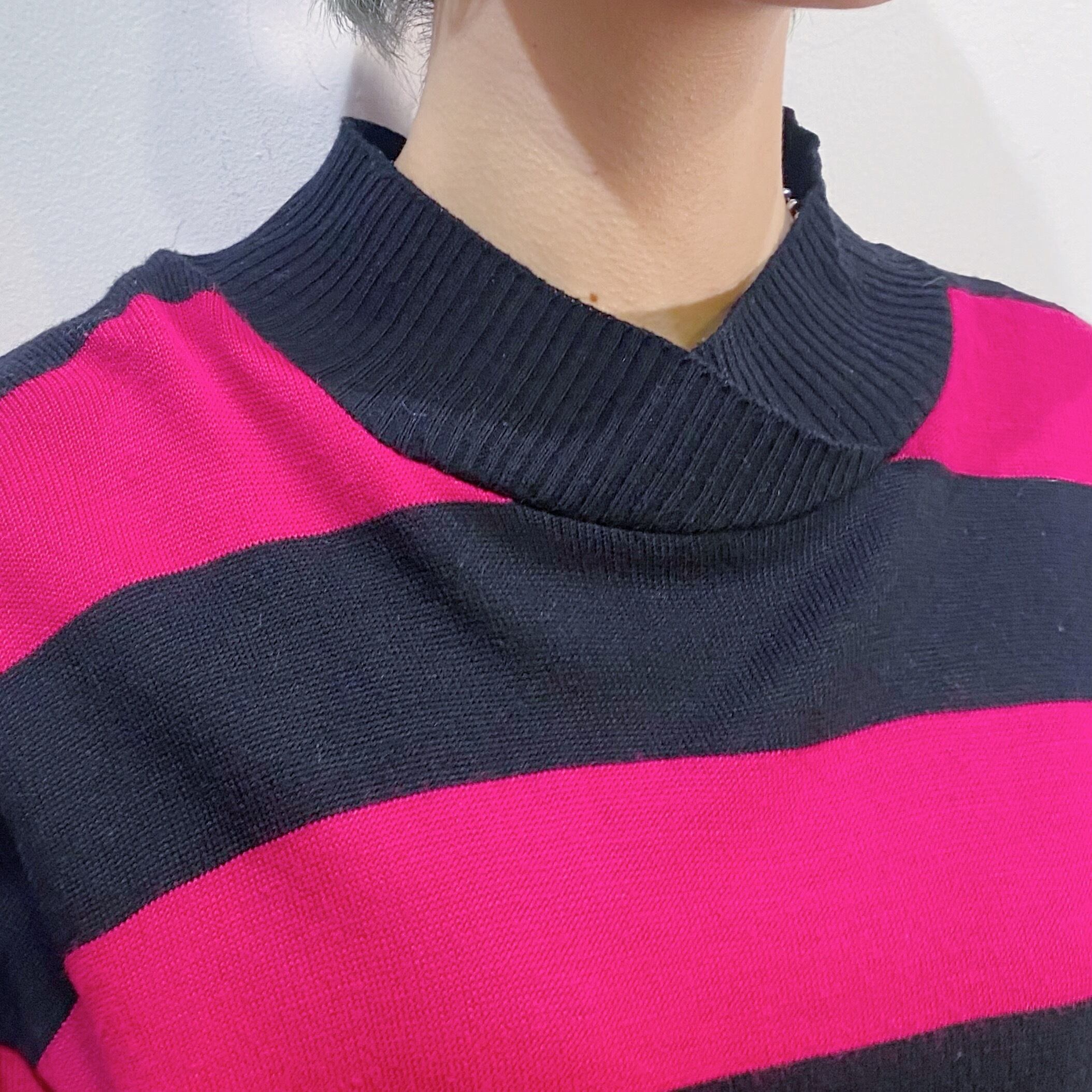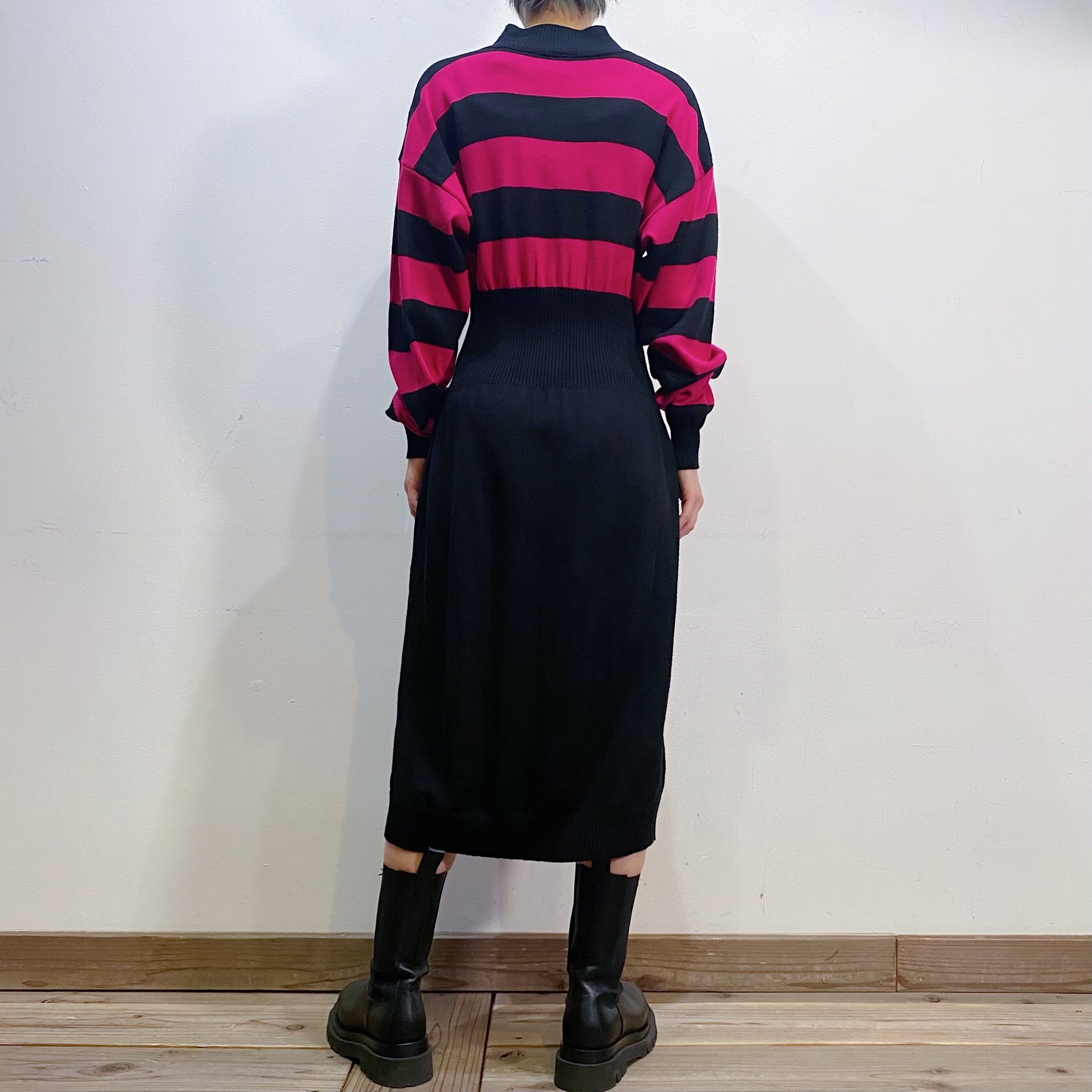 ピンク×黒のストライプが可愛い、80年代のニットワンピースです。