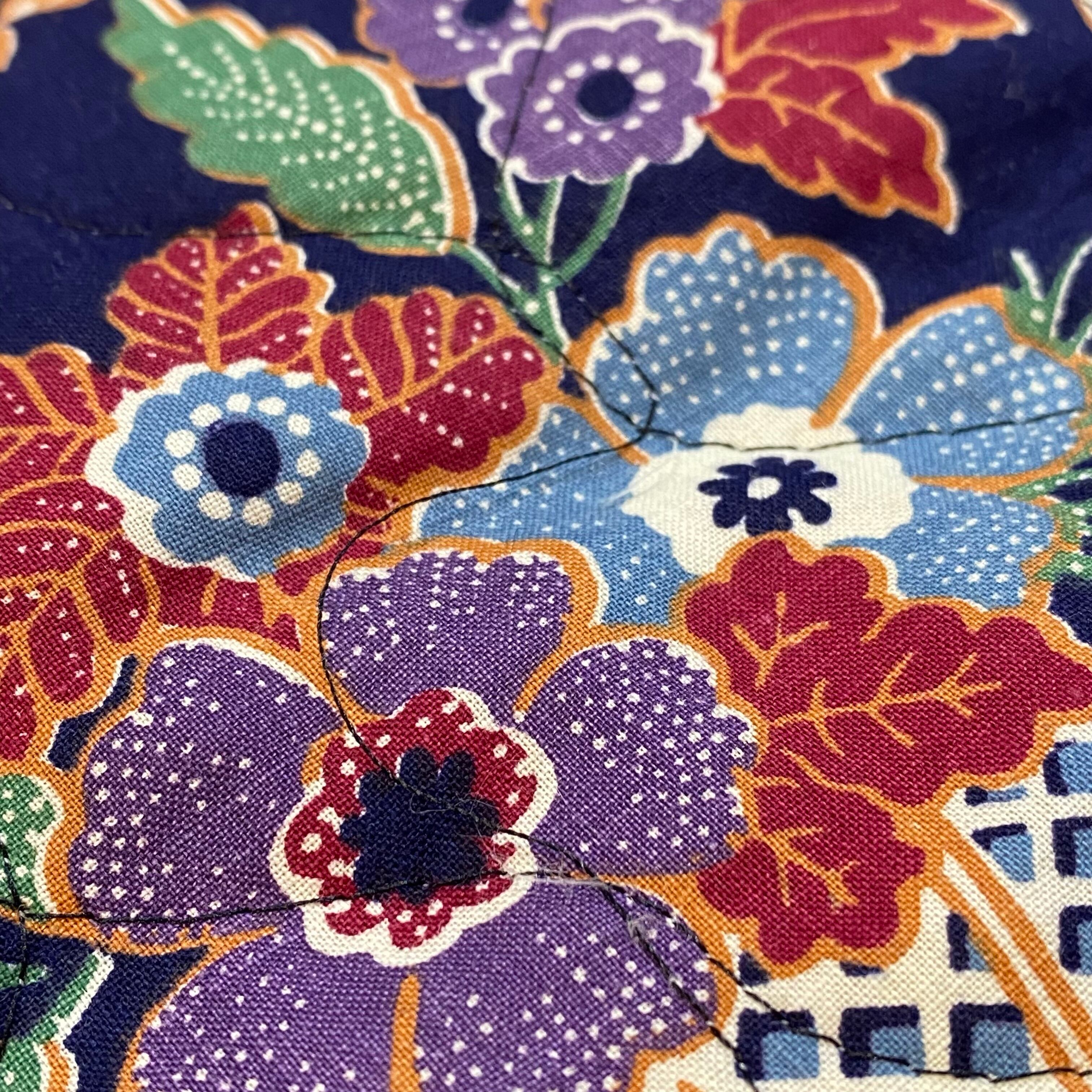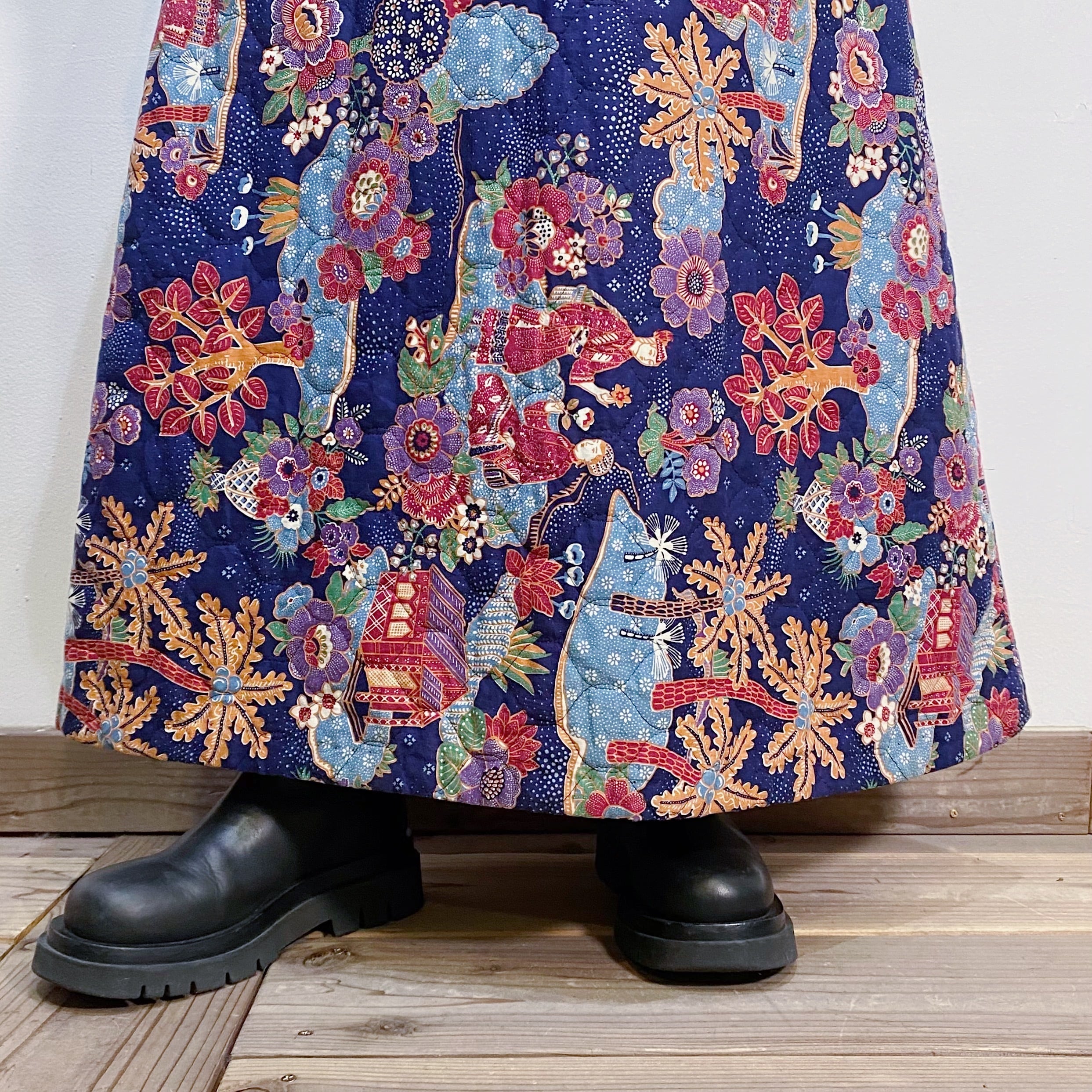 お花やお家、人物のプリントが可愛い、60年代のキルティングスカートです。