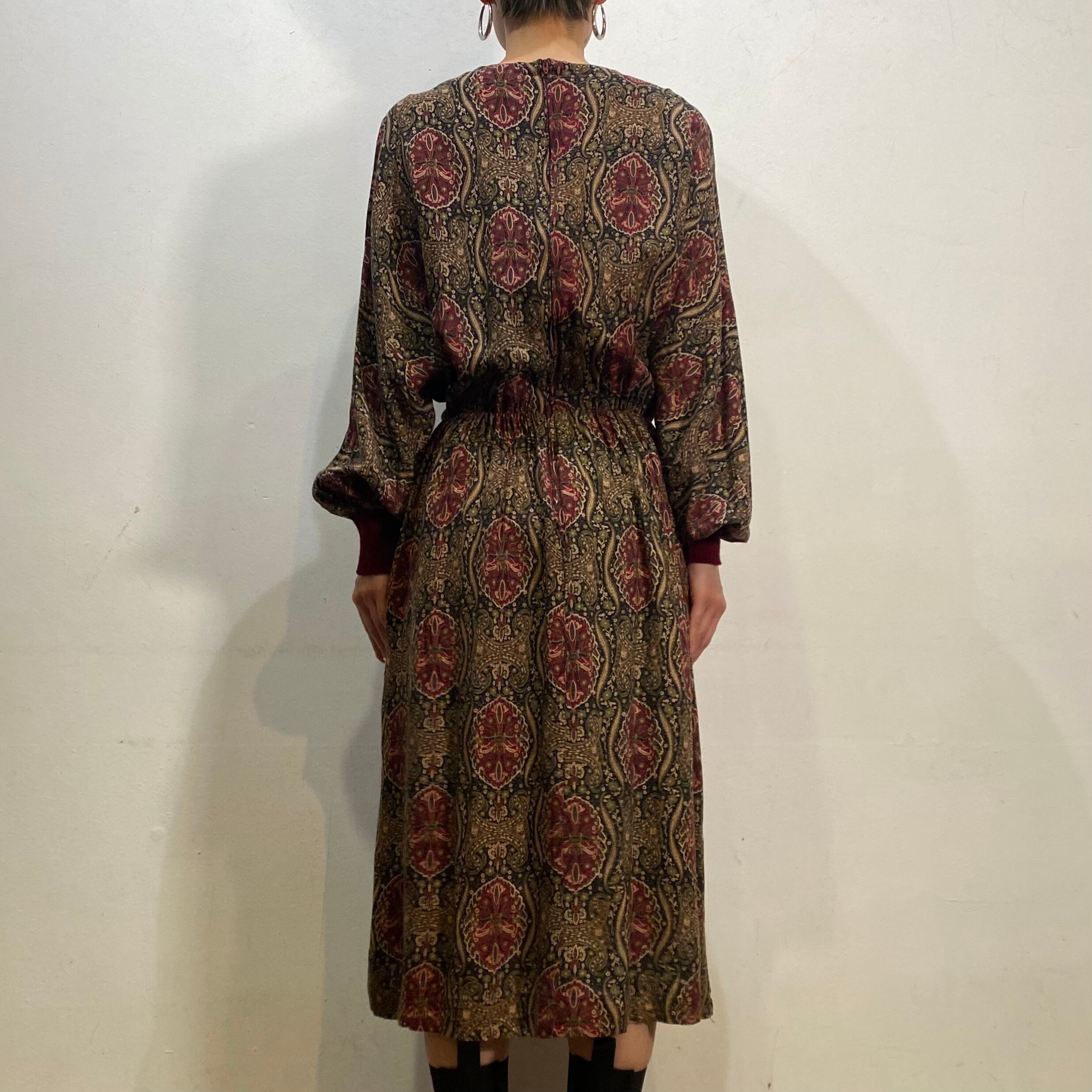 雰囲気たっぷりなテキスタイルが可愛い80年代のレーヨンワンピースです。