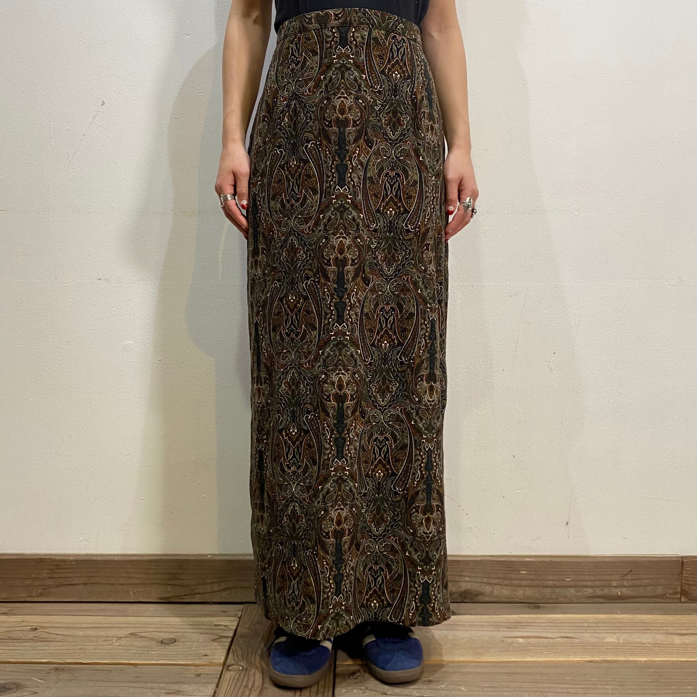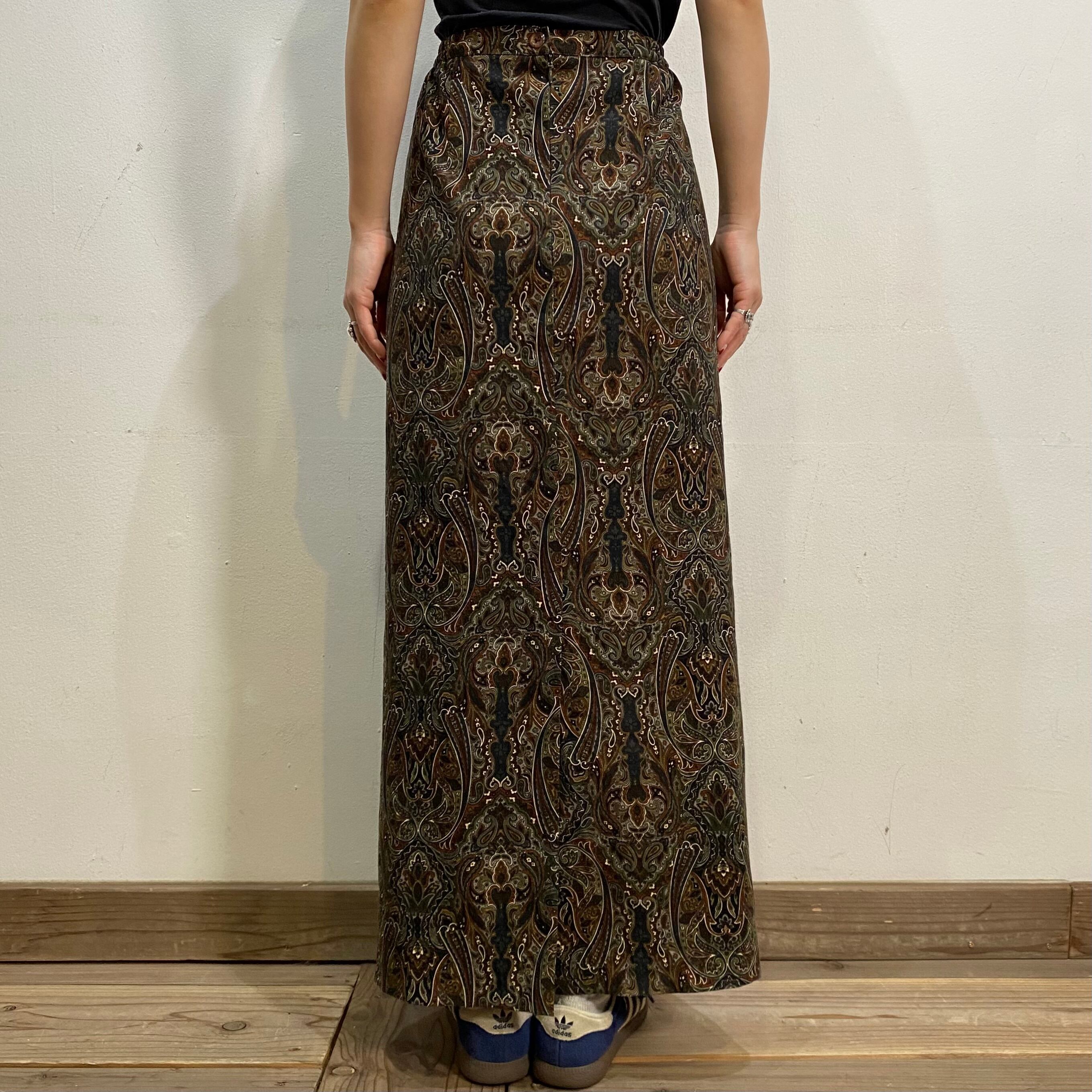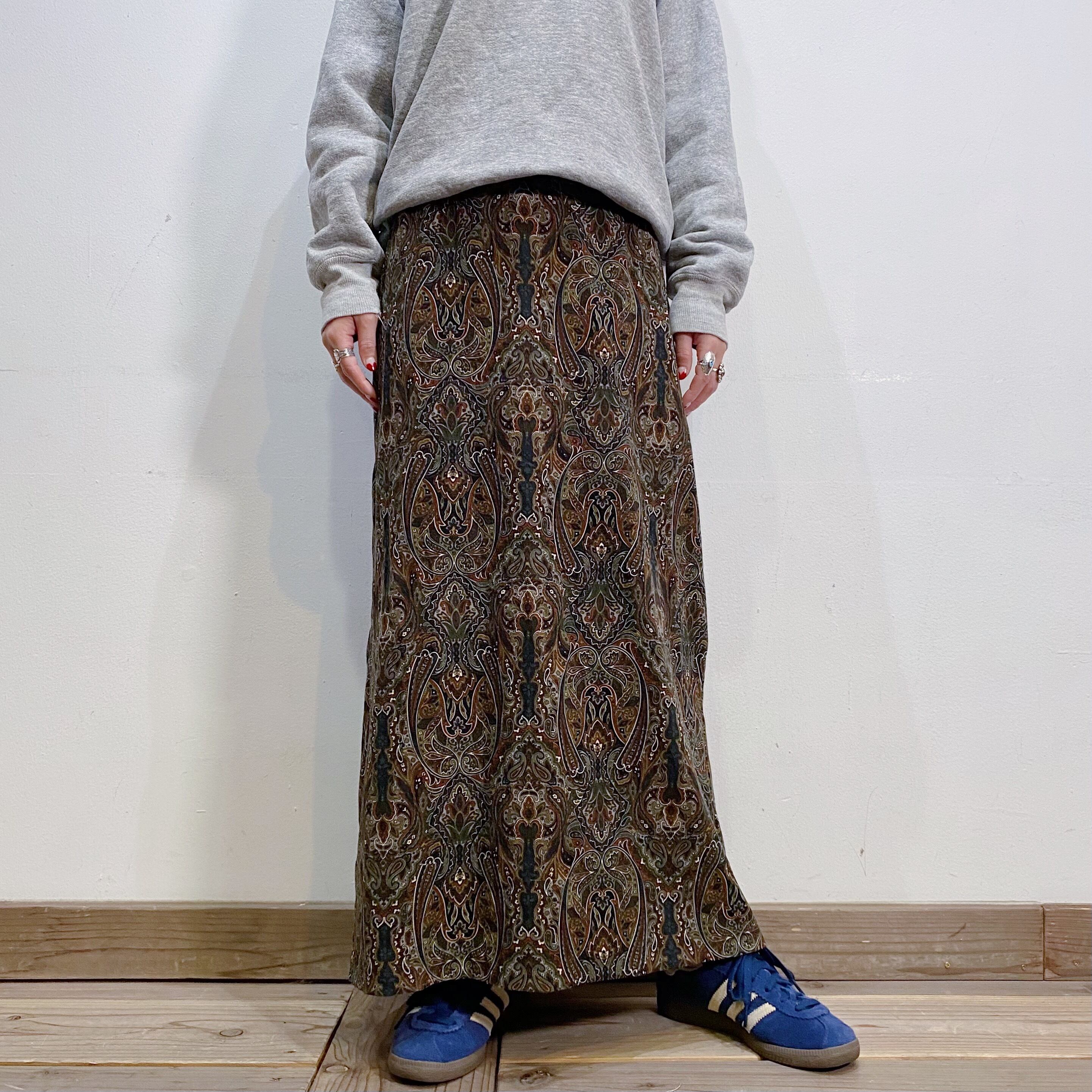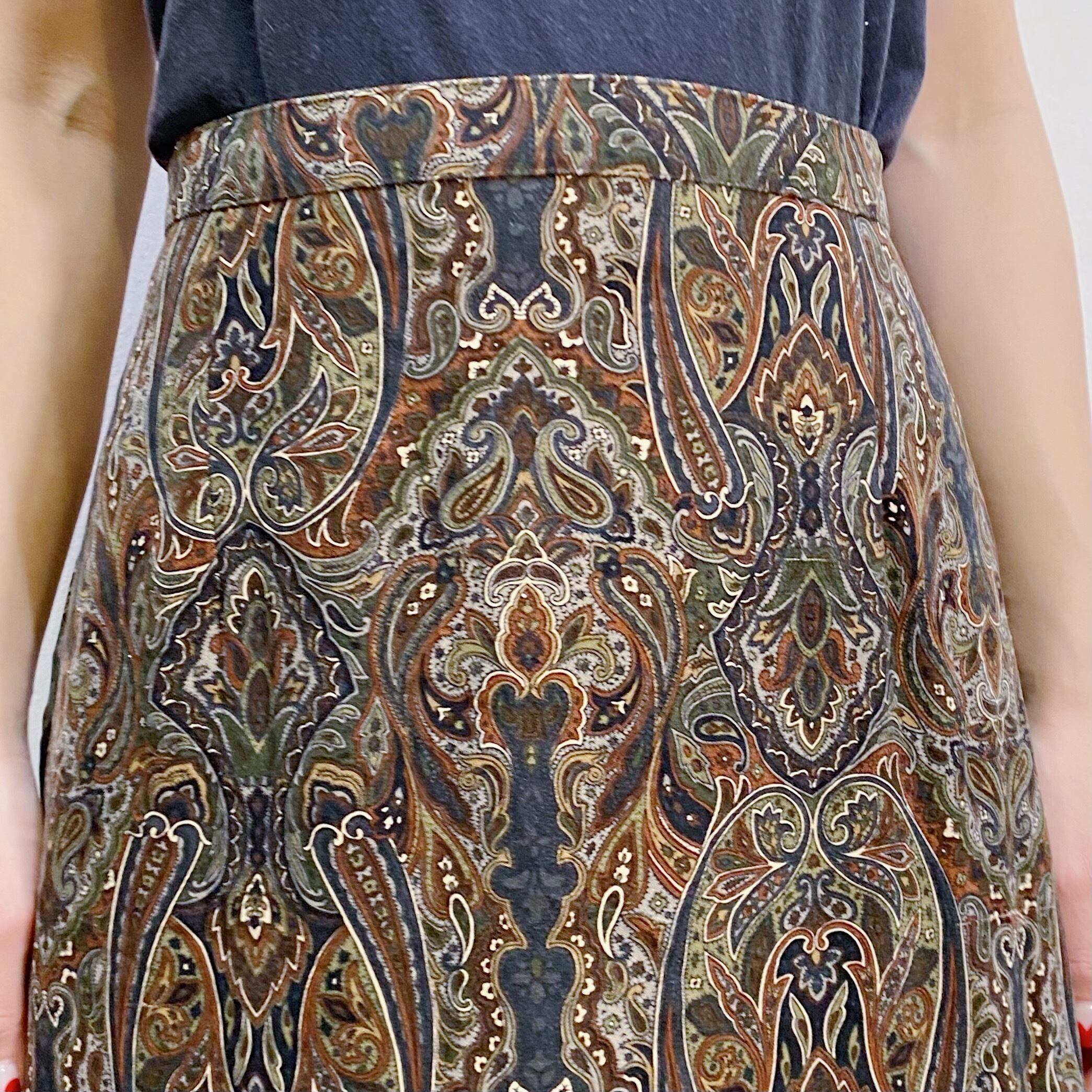落ち着いた色合いにペイズリープリントが可愛いロングスカートです。