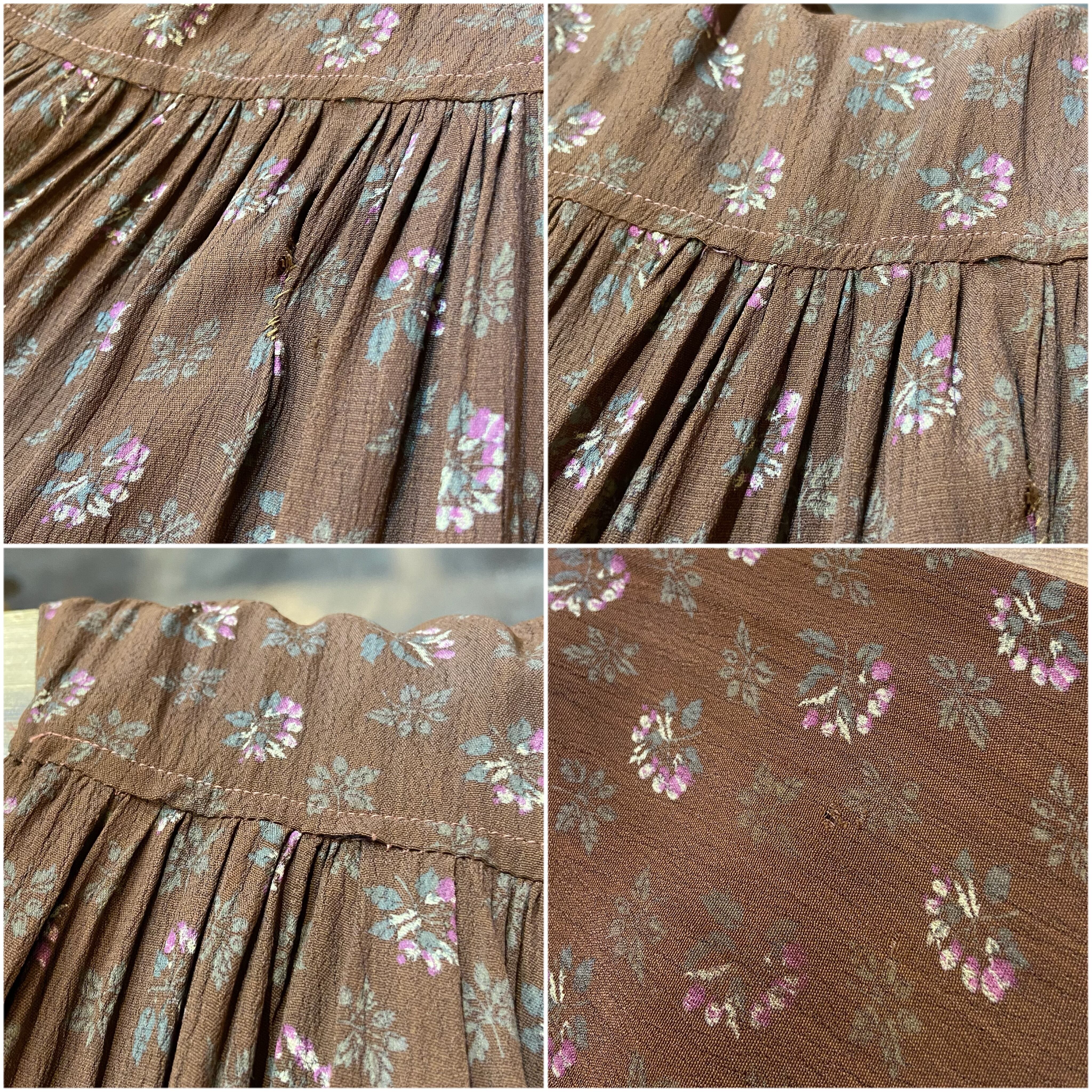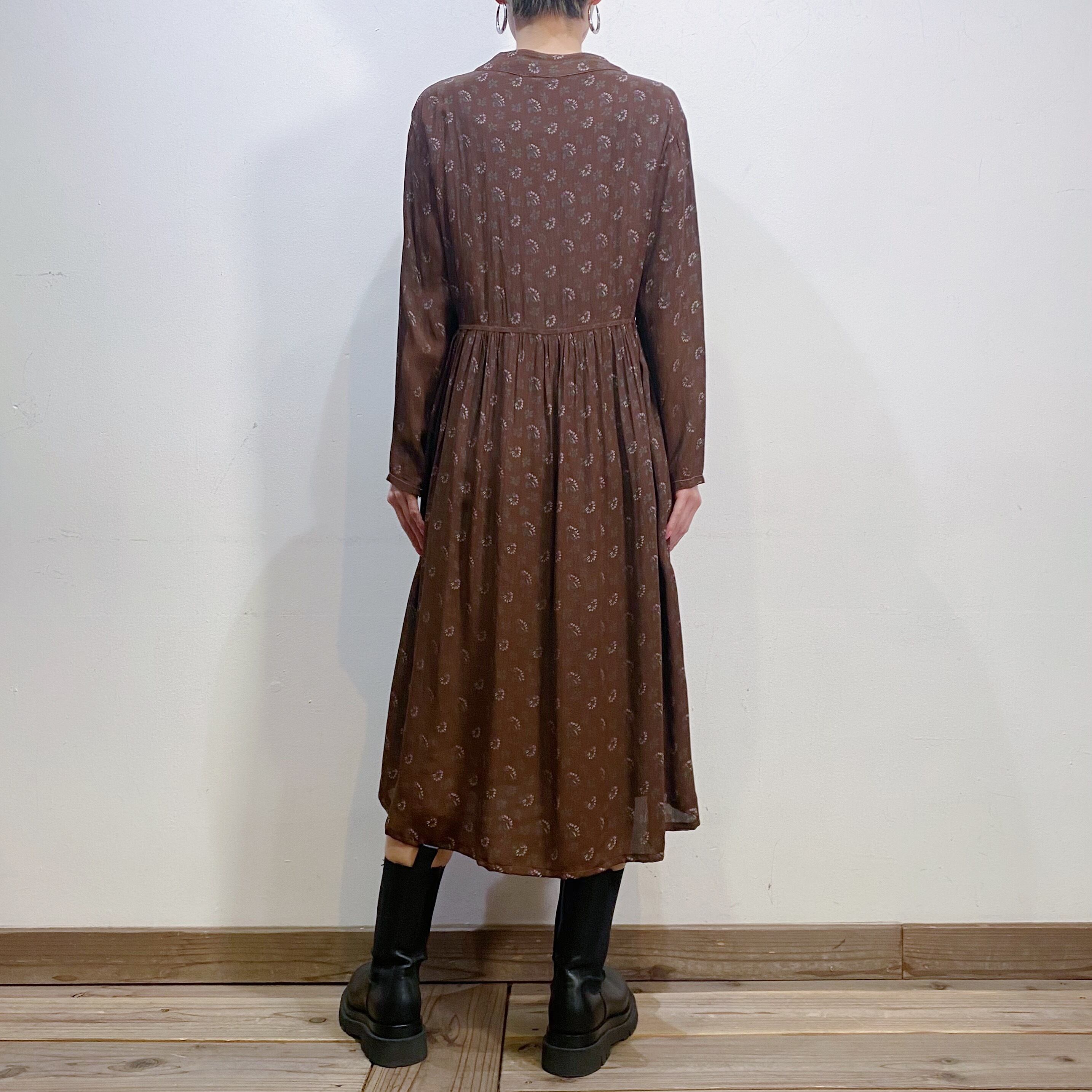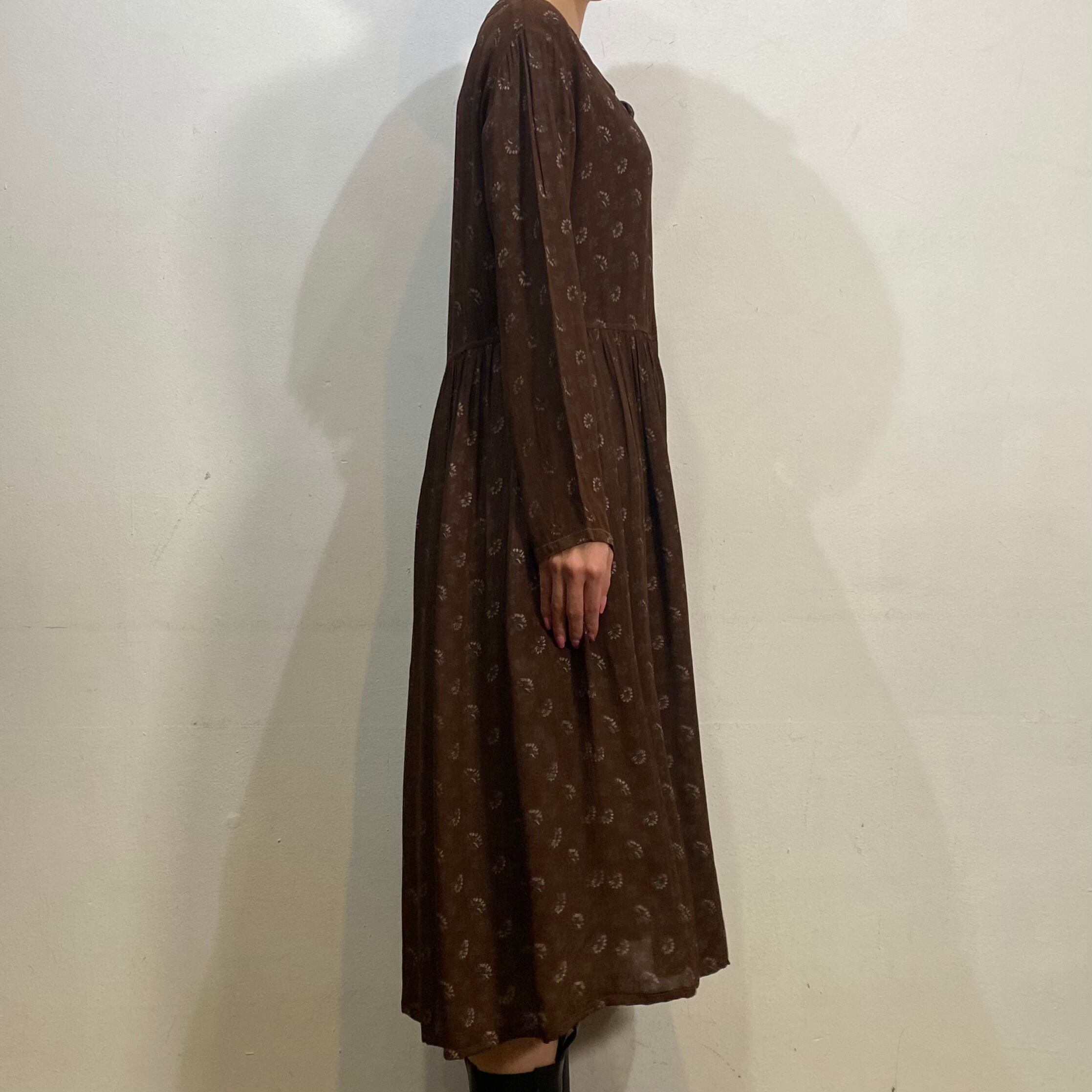 Brown flower printed rayon long dress