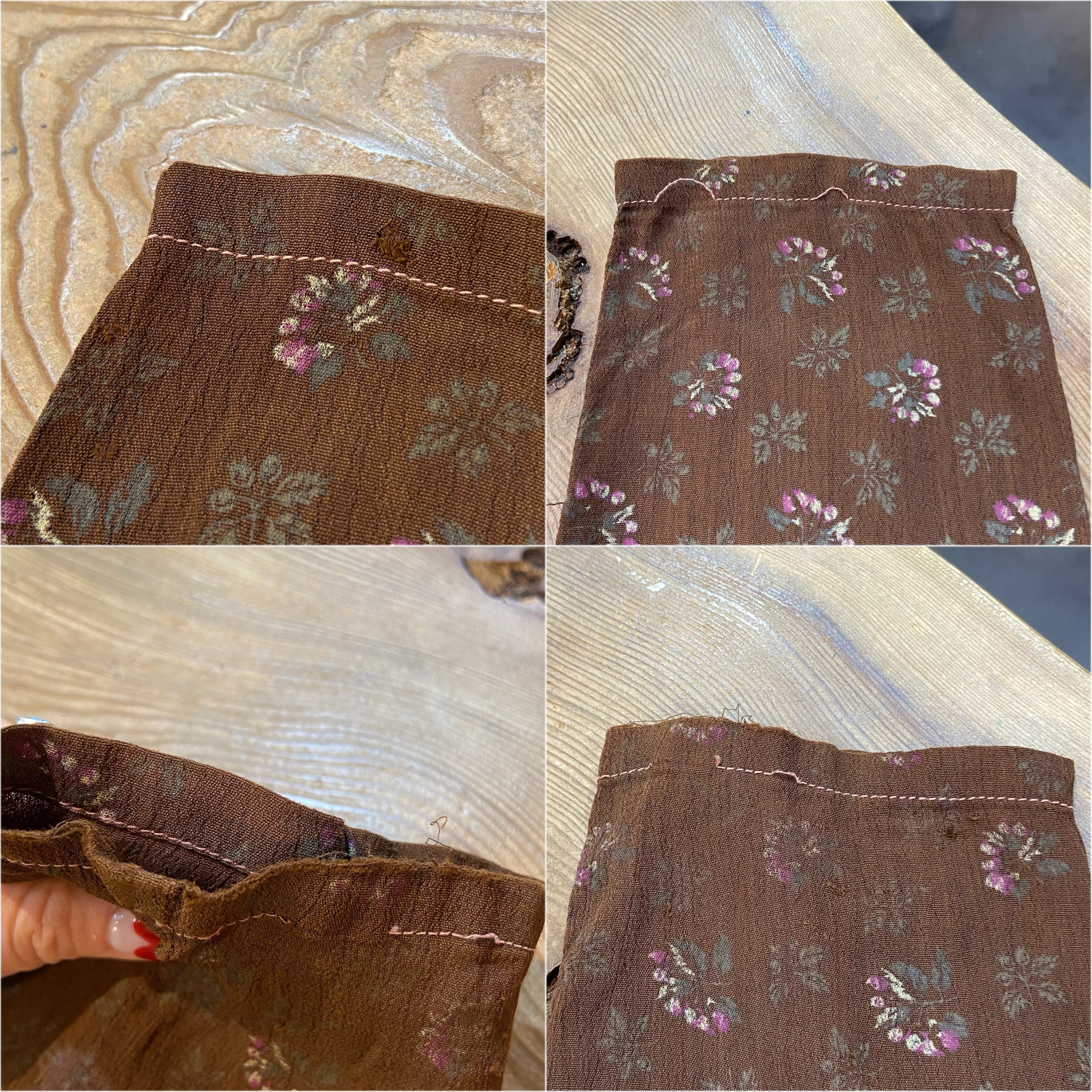 後ろのウエスト切り替え下部分に、前の所有者によるお直しの跡が見受けられますが、あまり目立たないかと思われます。