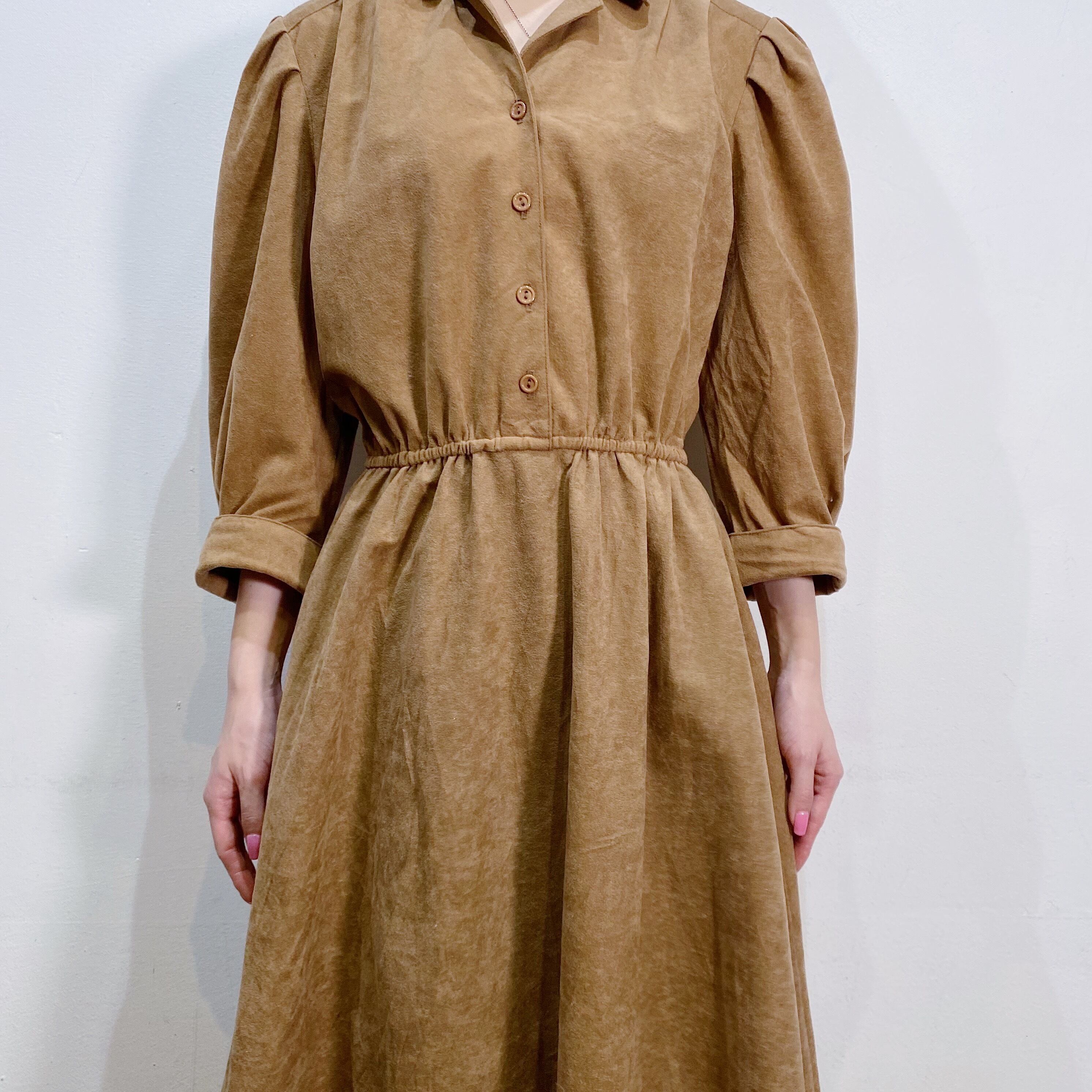 ブラウンカラーで着こなしすい、80年代のシャツワンピースです。
