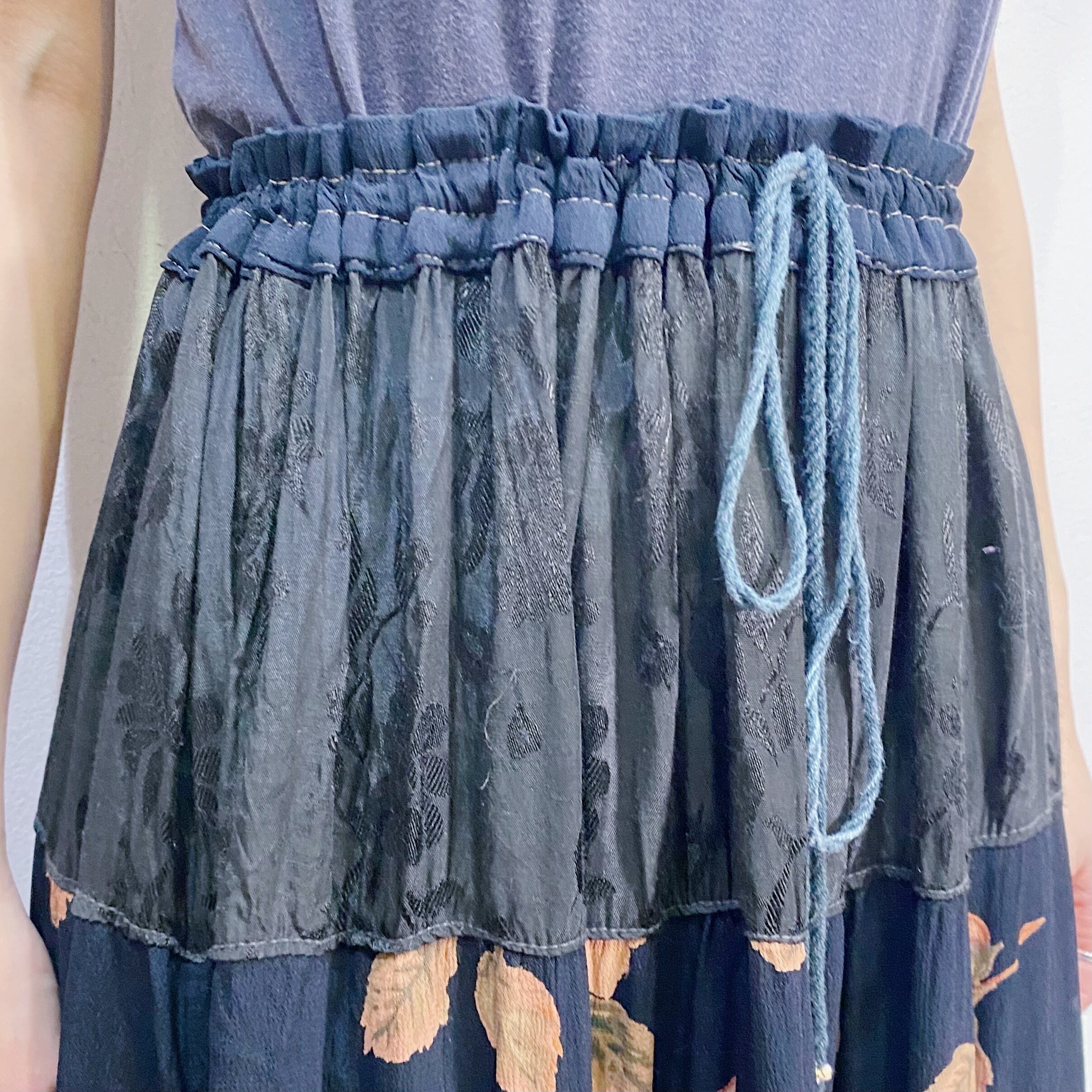 花柄とベロアの組み合わせが可愛い、インドレーヨンのスカートです。