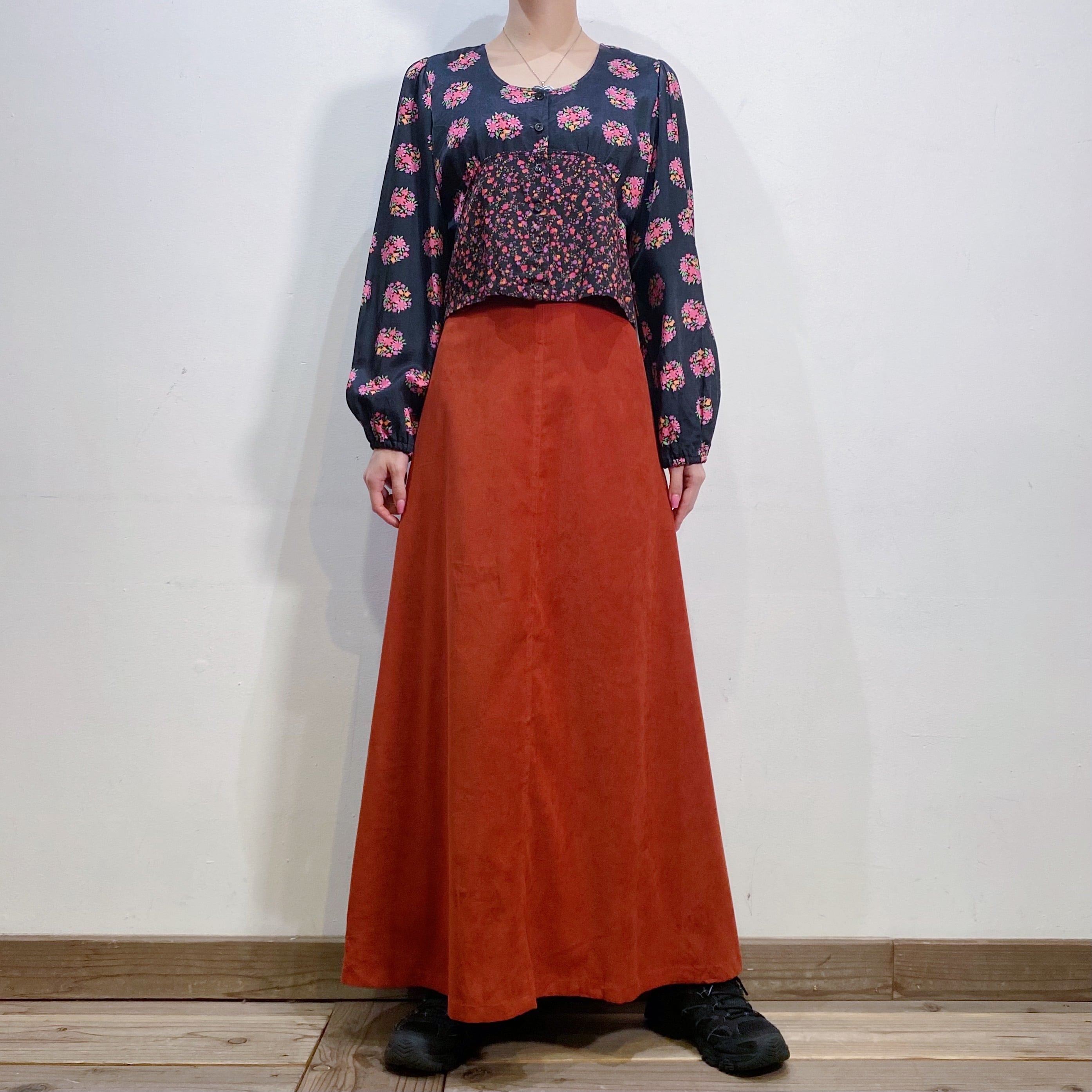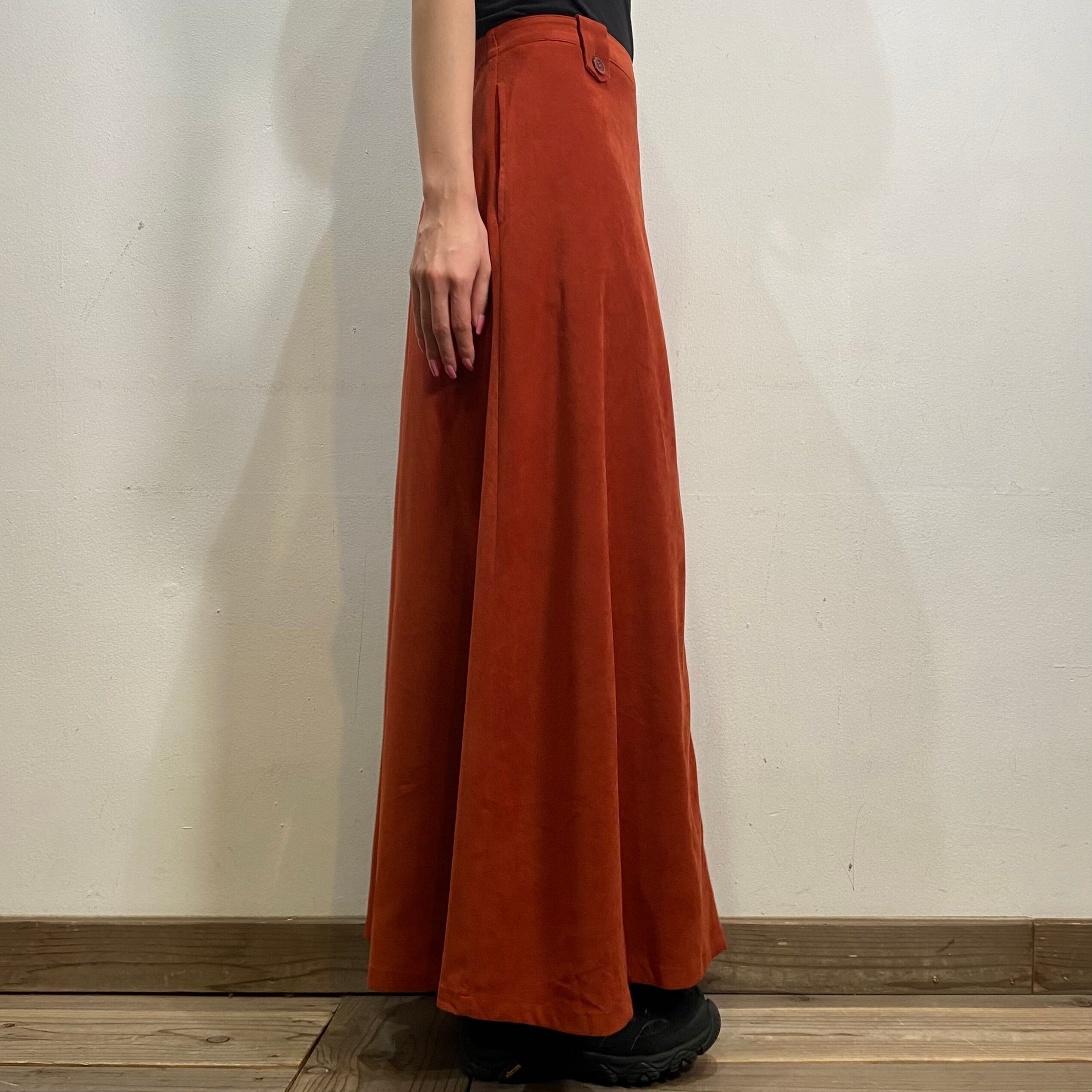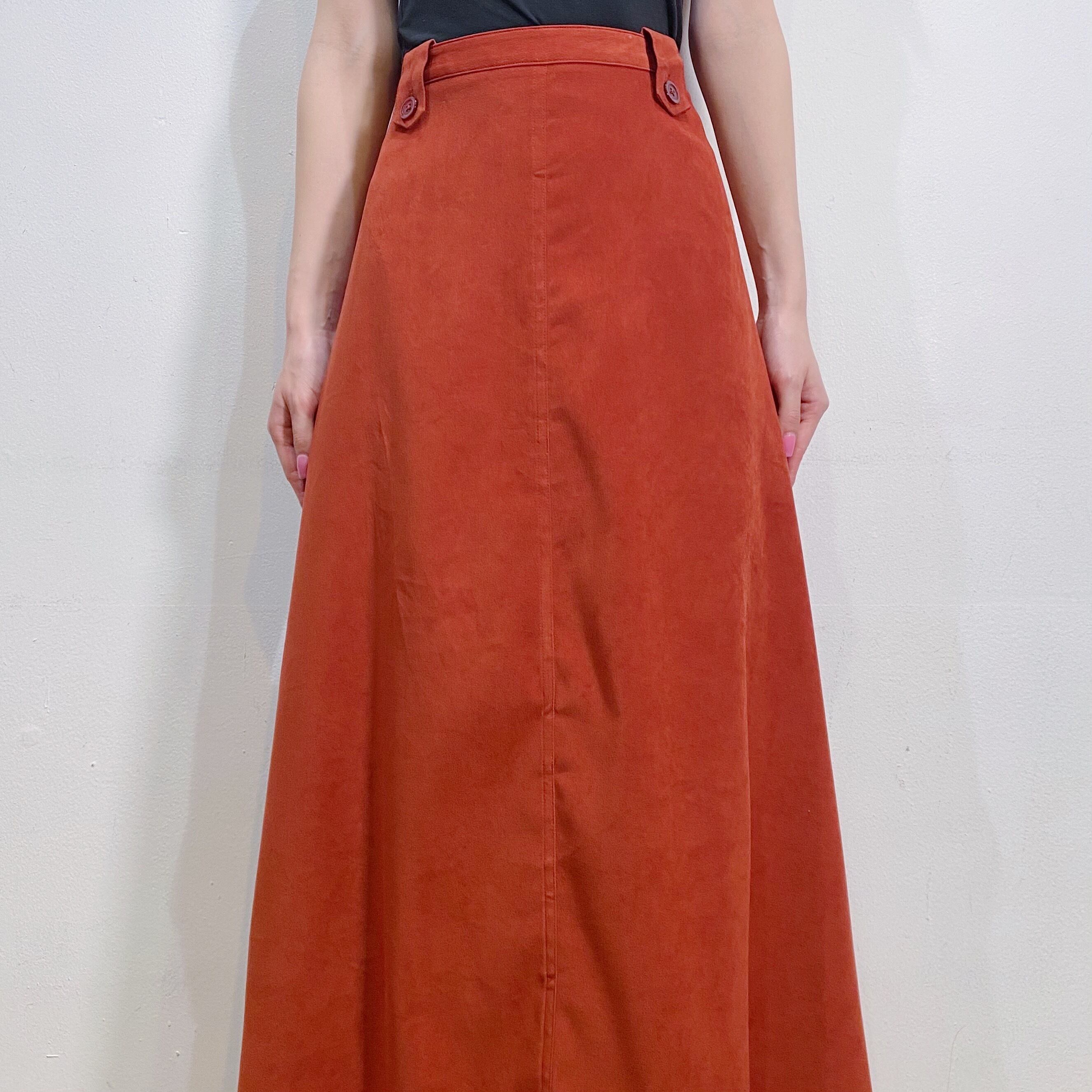 オレンジとブラウンの中間のような絶妙なこっくりカラーのスカートです。