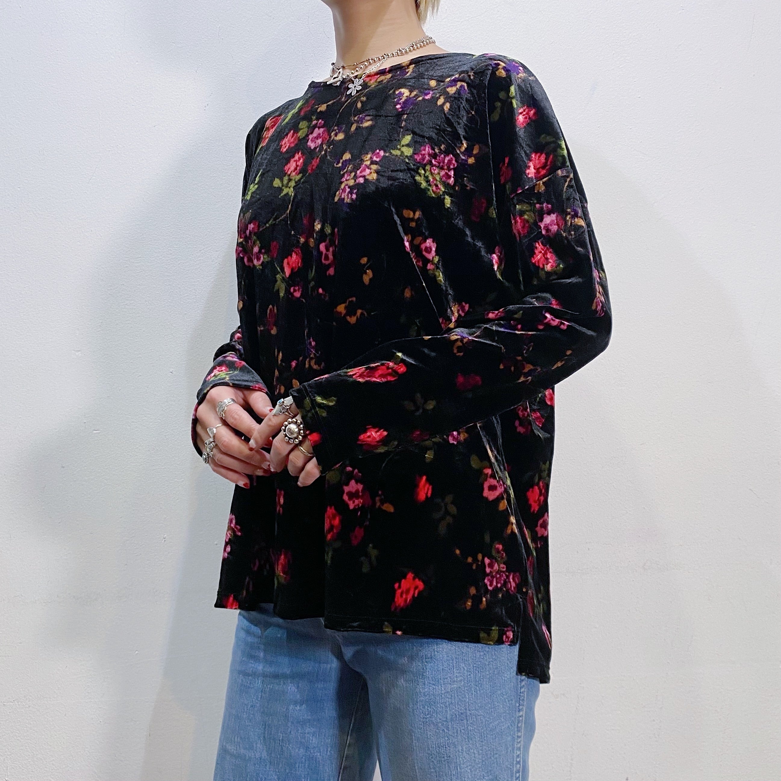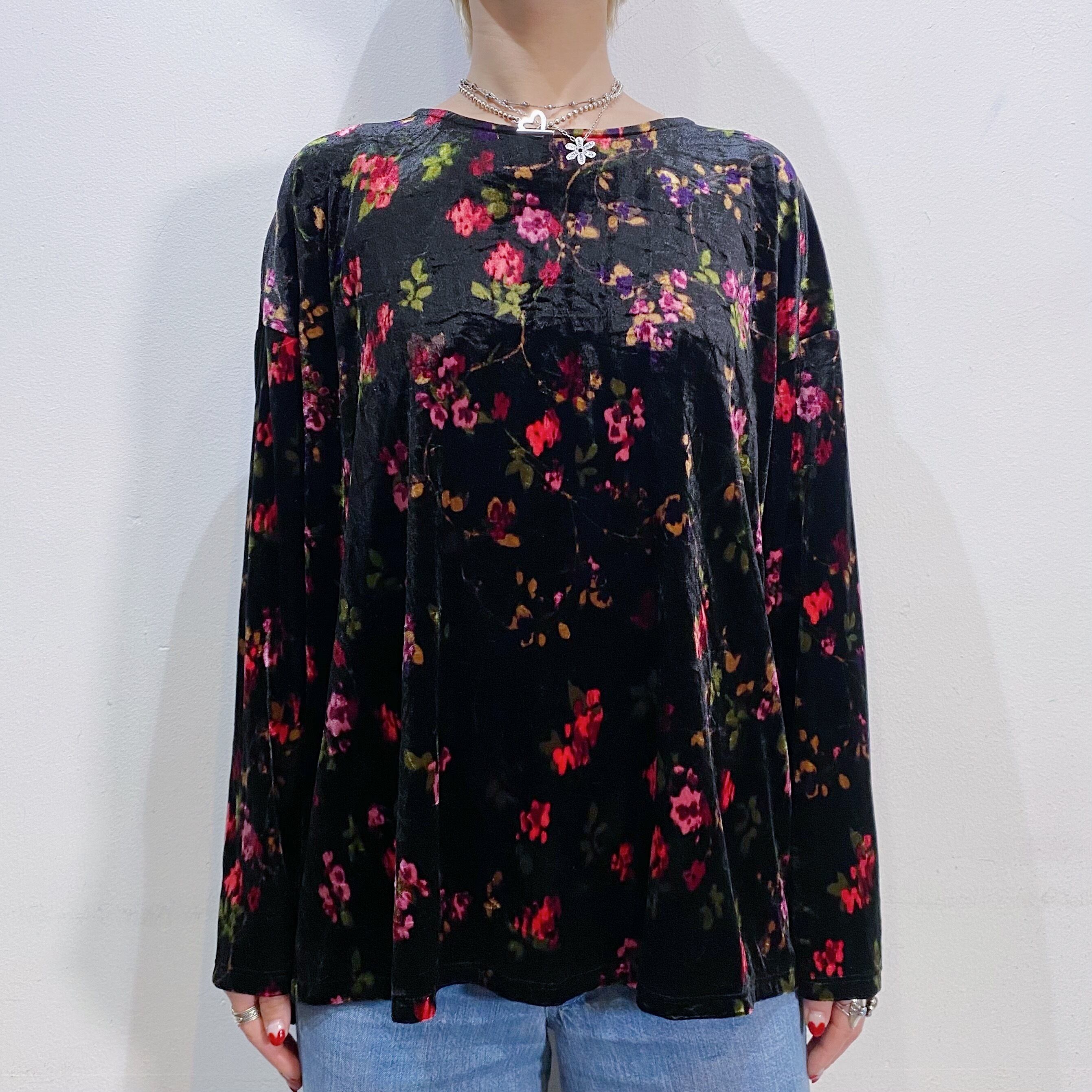 ピンクやレッドの小花柄が可愛いベロアトップスです。