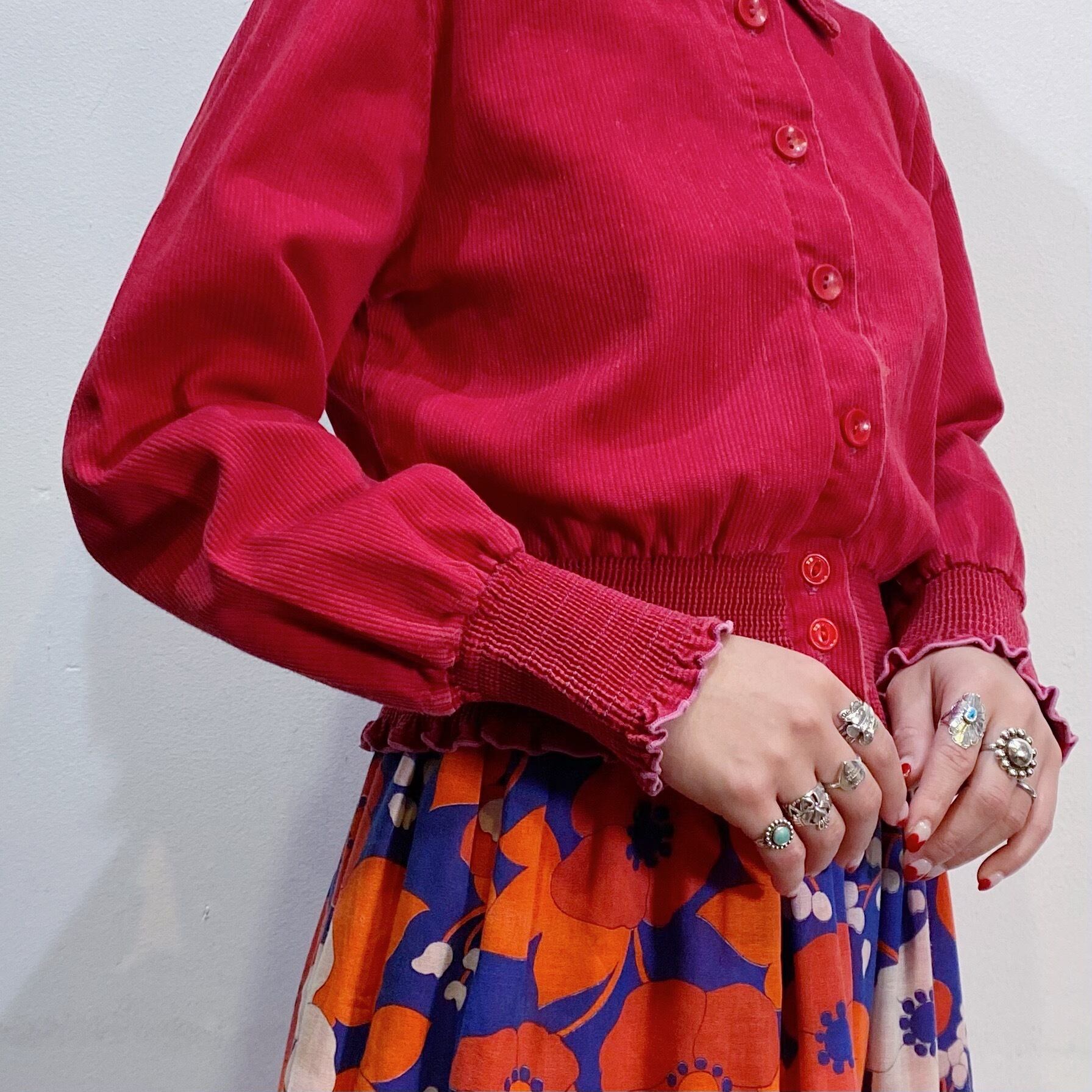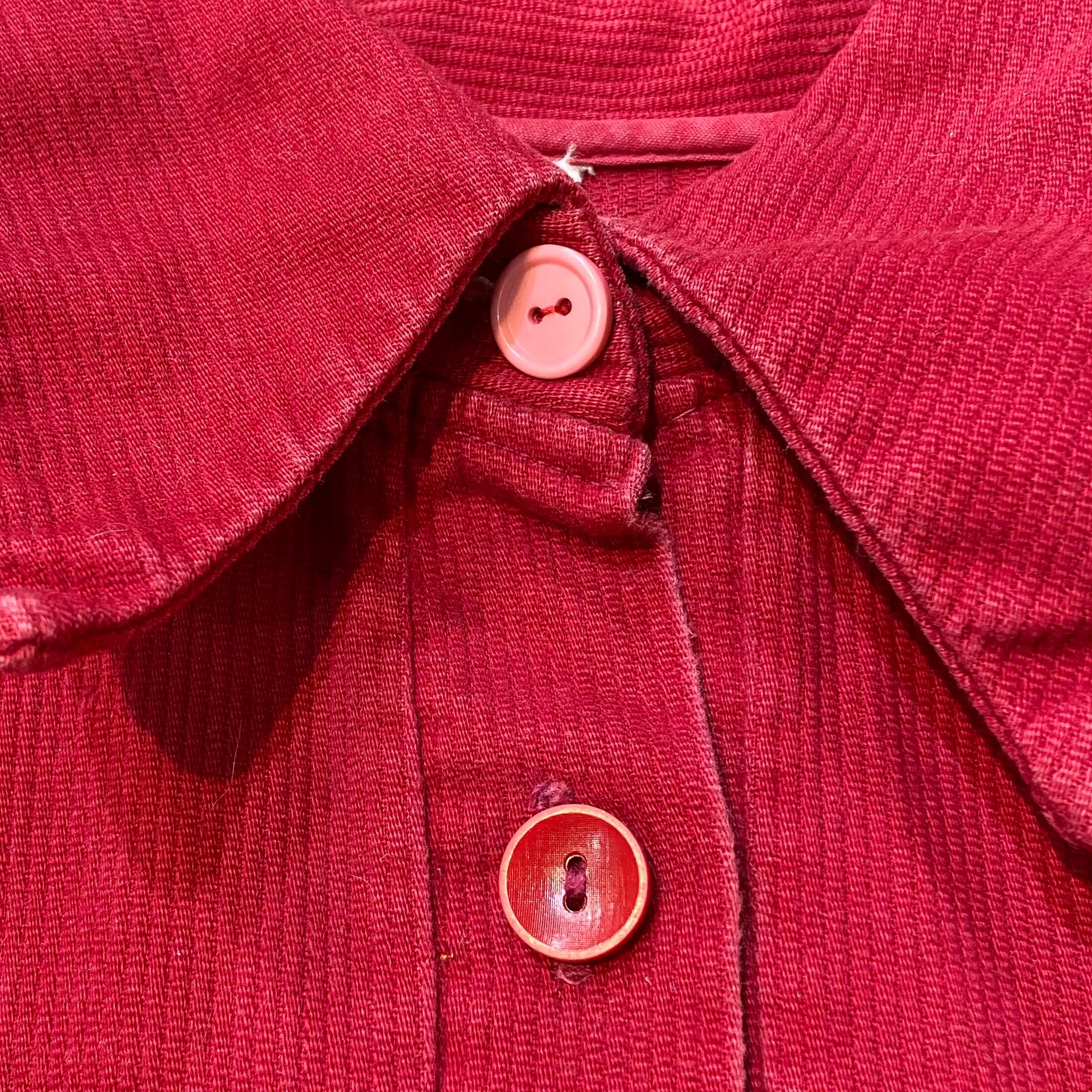 少し色褪せた赤に古いボタンがヴィンテージ感たっぷりな70年代のトップスです。