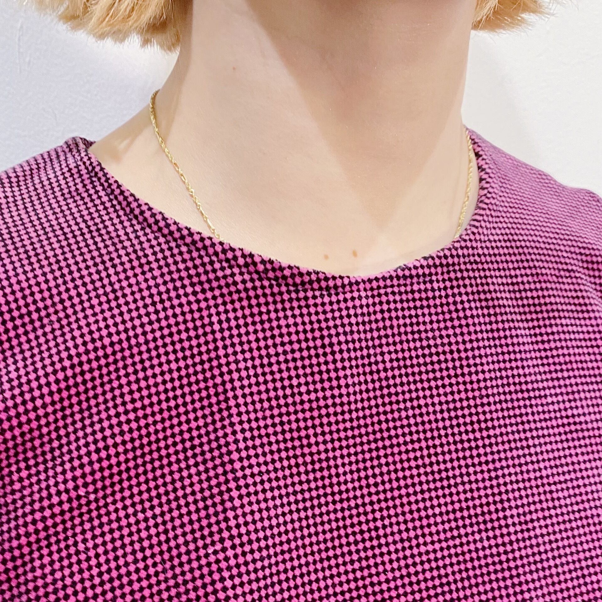 パープル×ブラックのギンガムチェックに高級感のあるベロア素材が素敵な一枚。