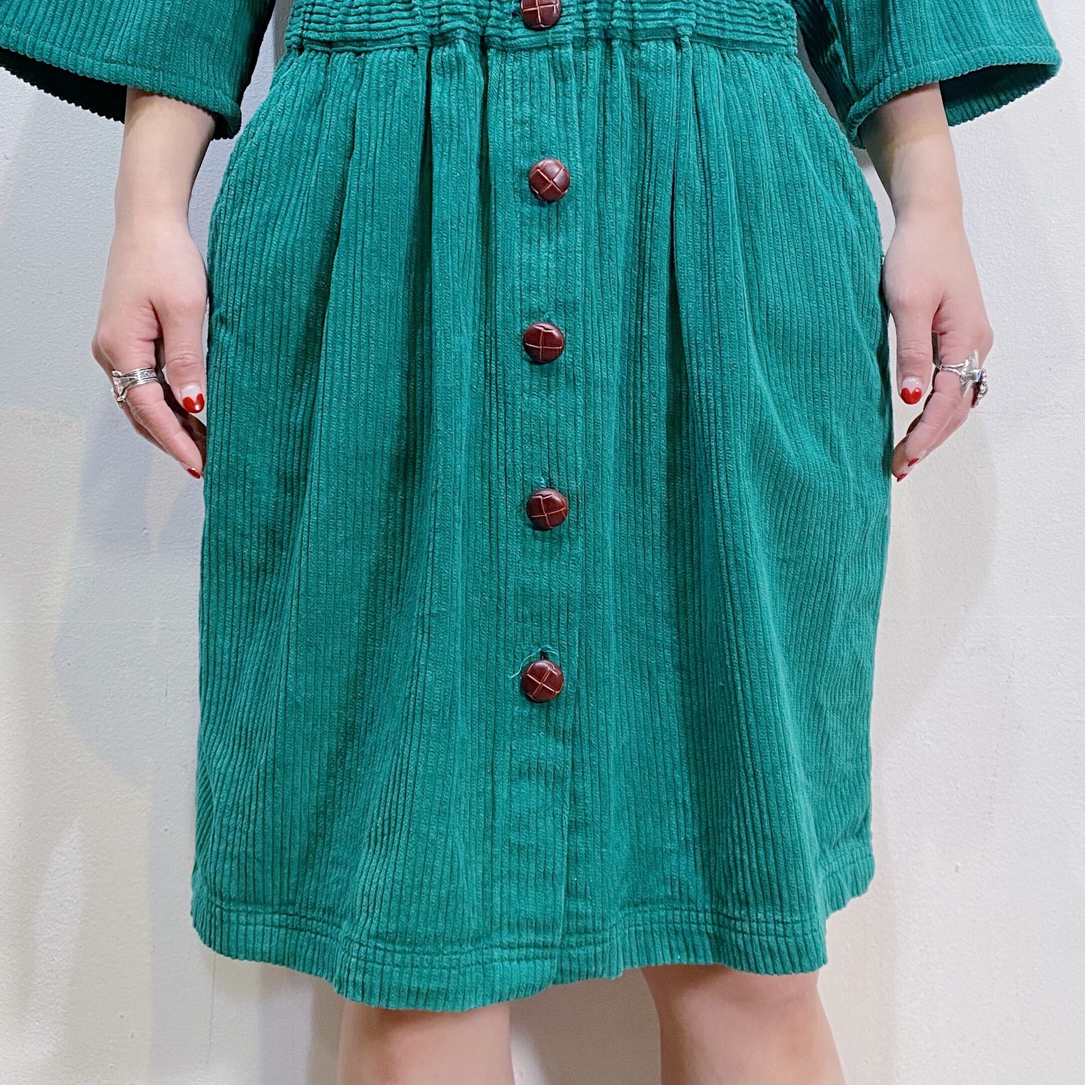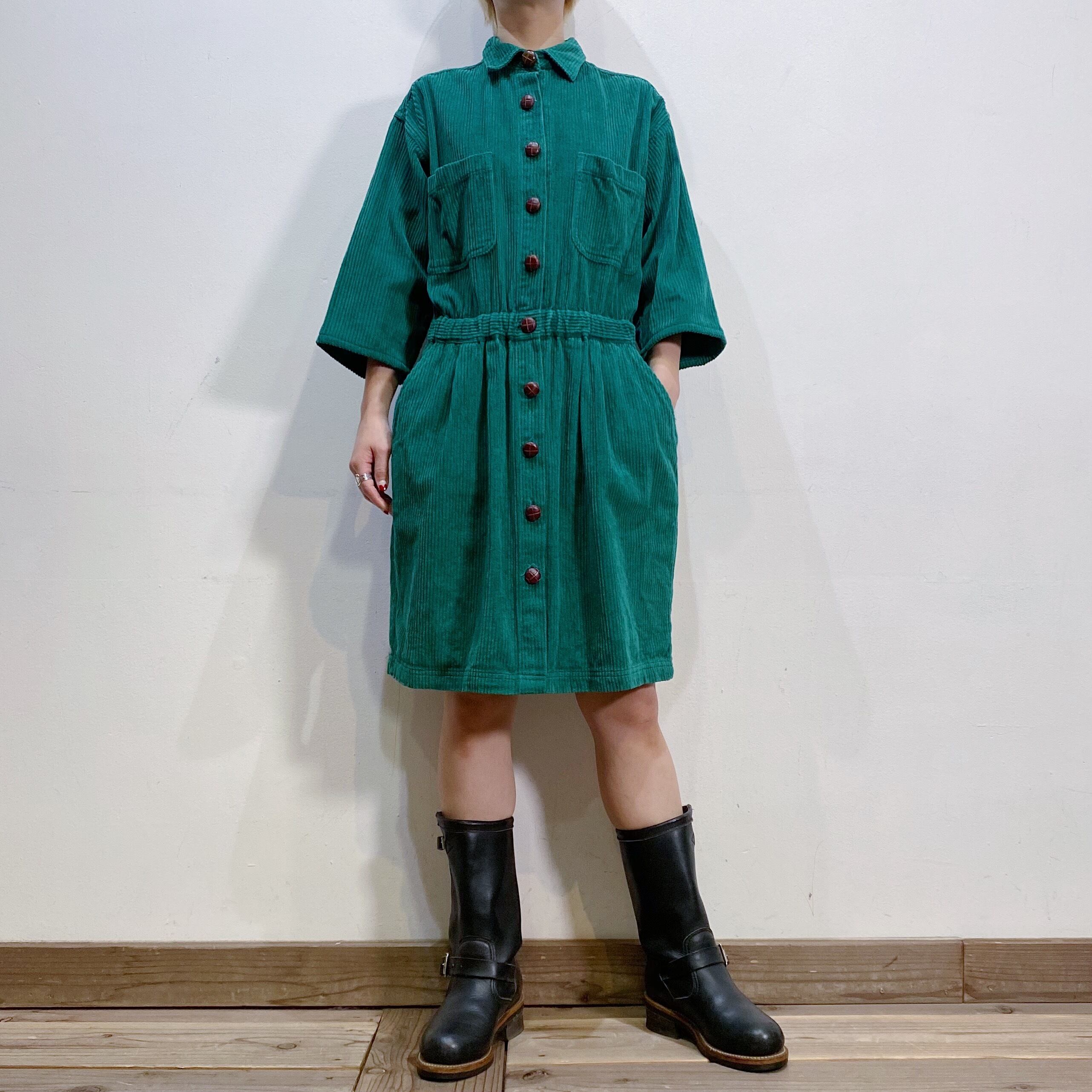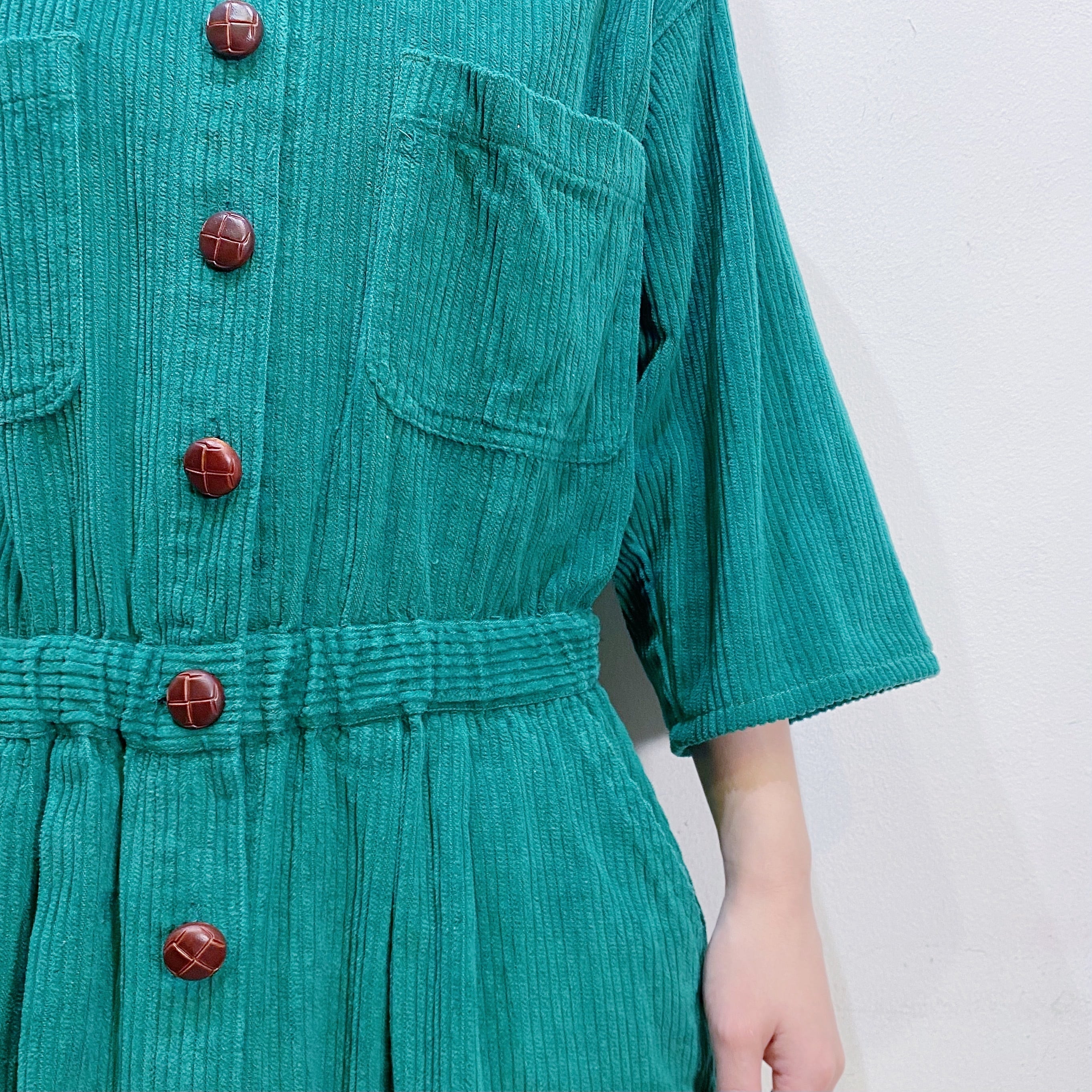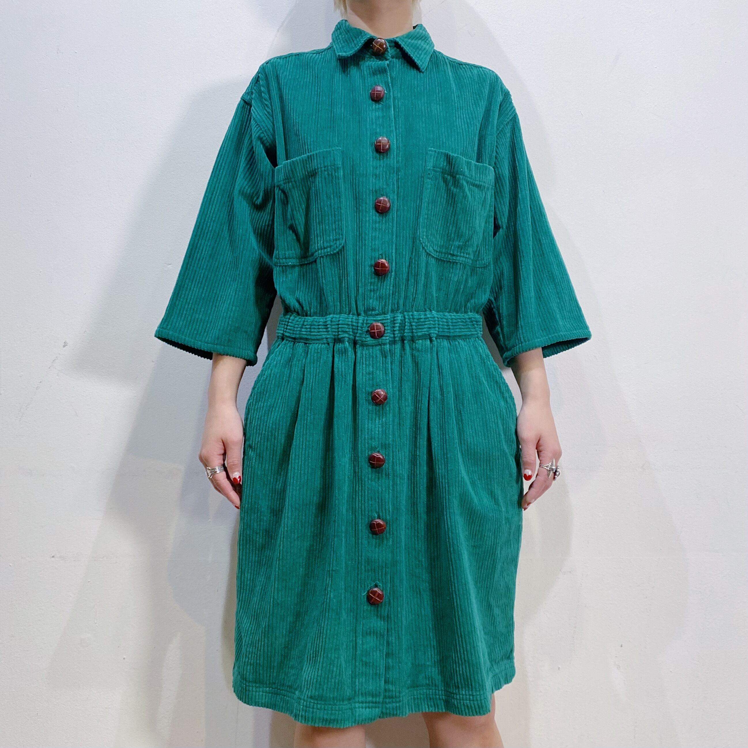 鮮やかなグリーンカラーが可愛い80年代のシャツワンピースです。
