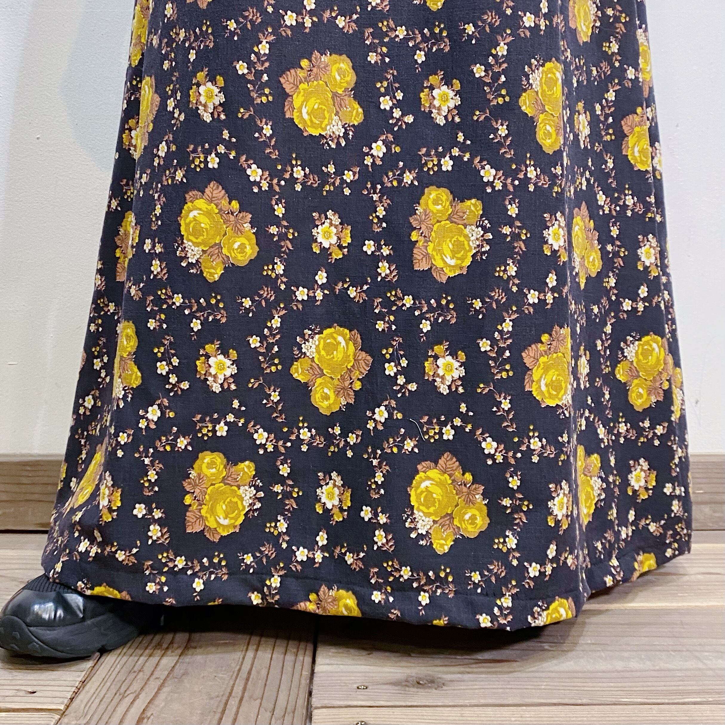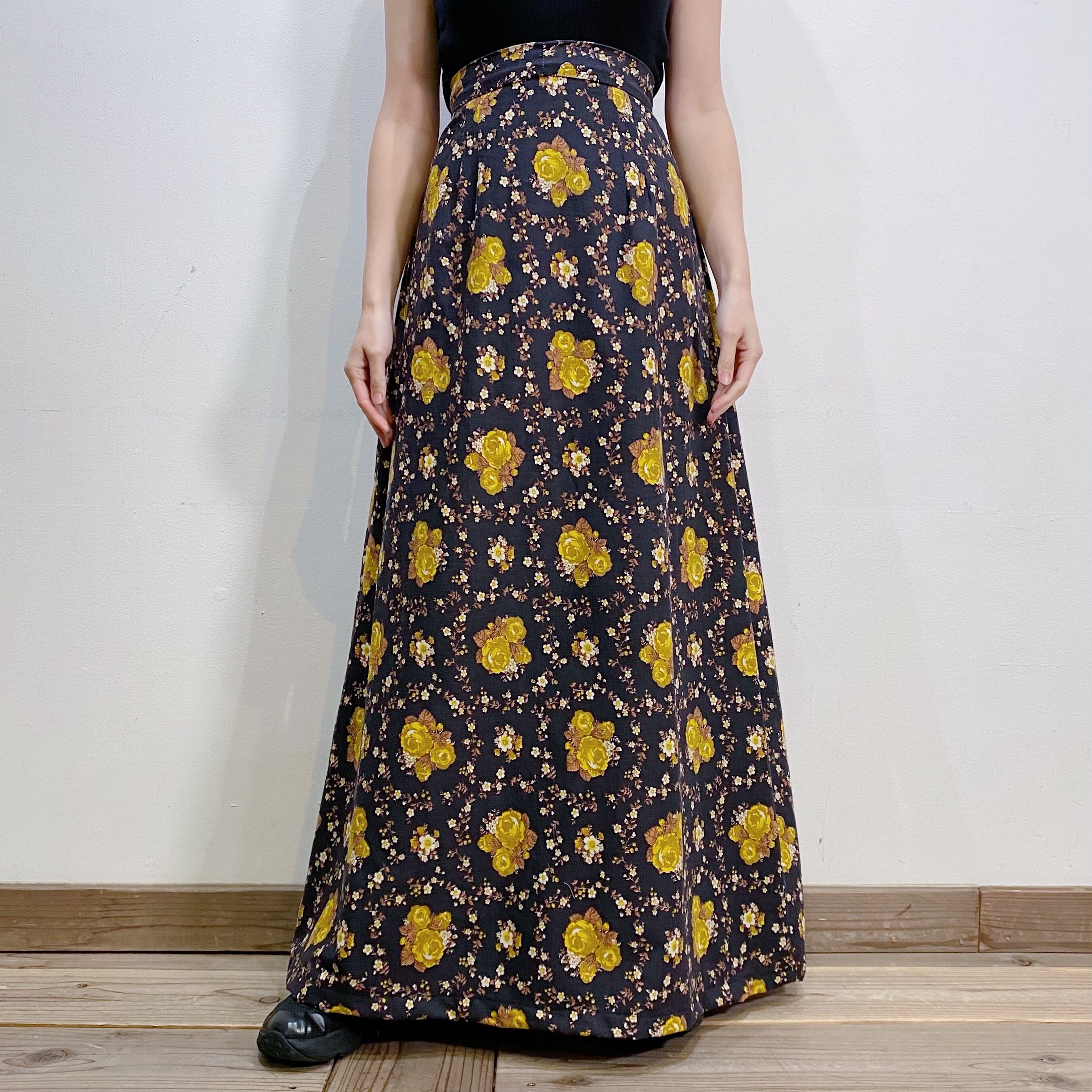 黒地に黄色の花柄が映える、70年代のスカートです。