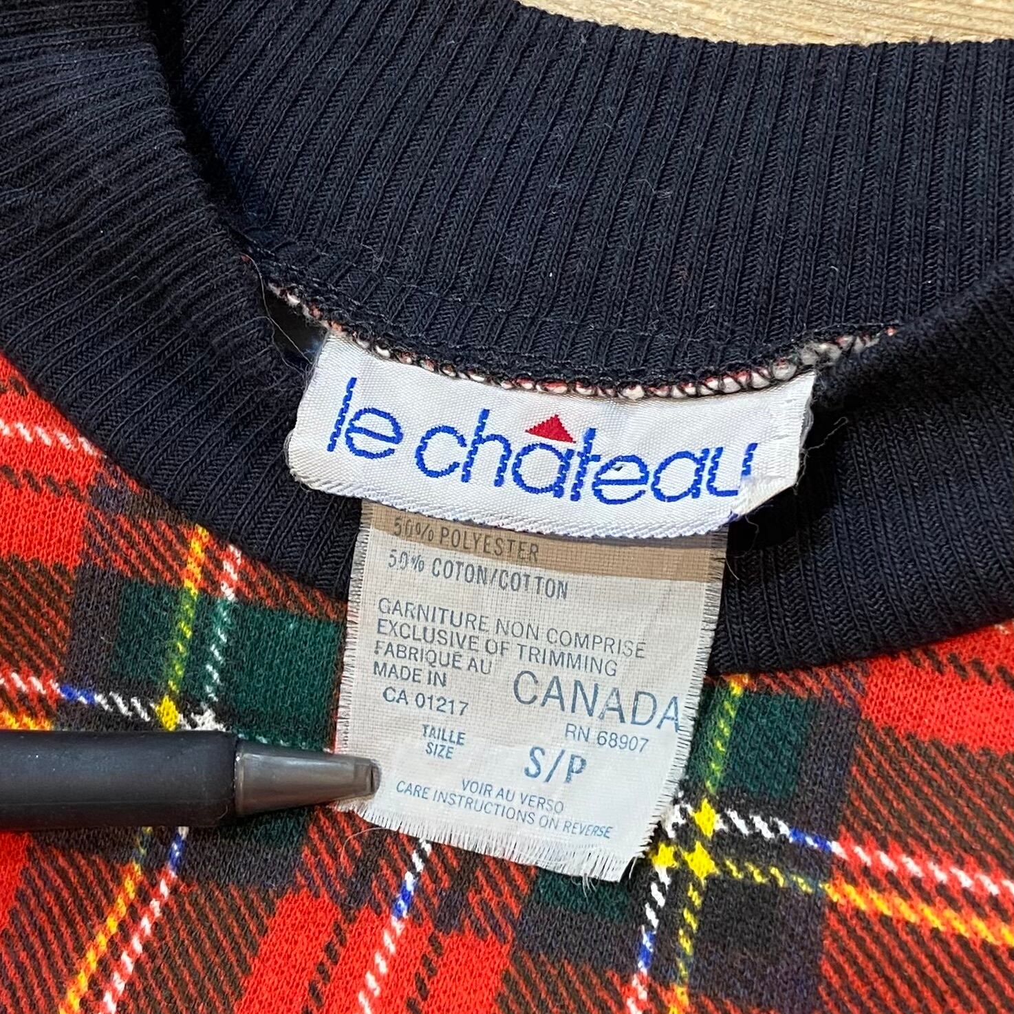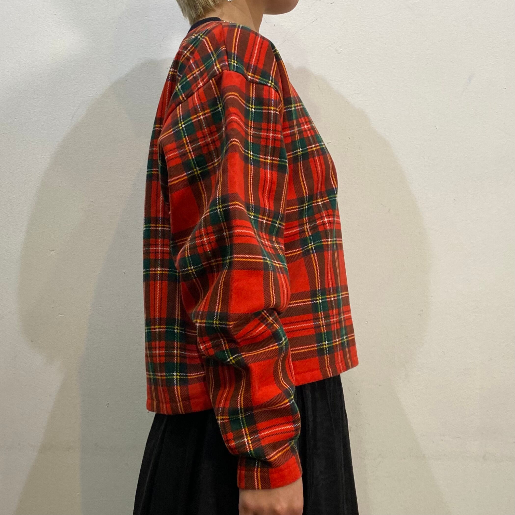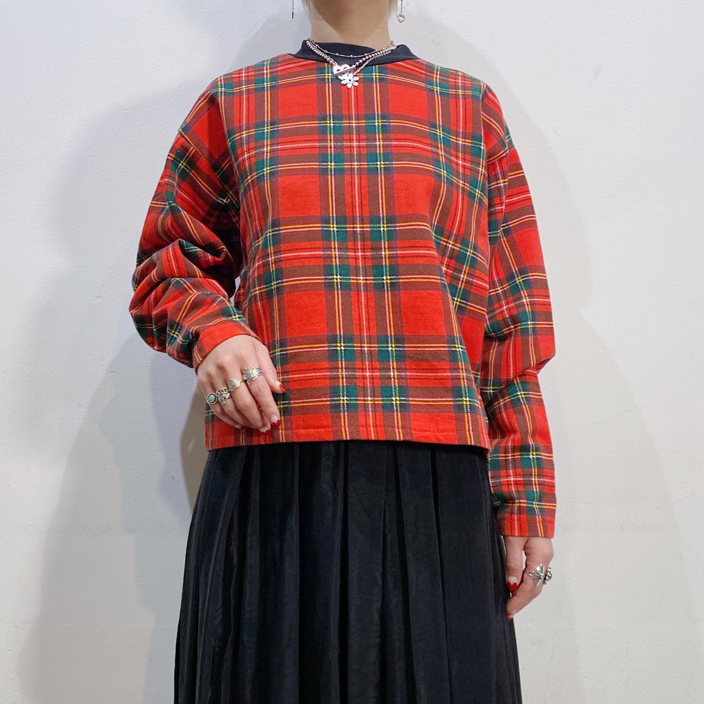 レッド×グリーンのタータンチェック柄が可愛い、80年代のスウェットシャツです。