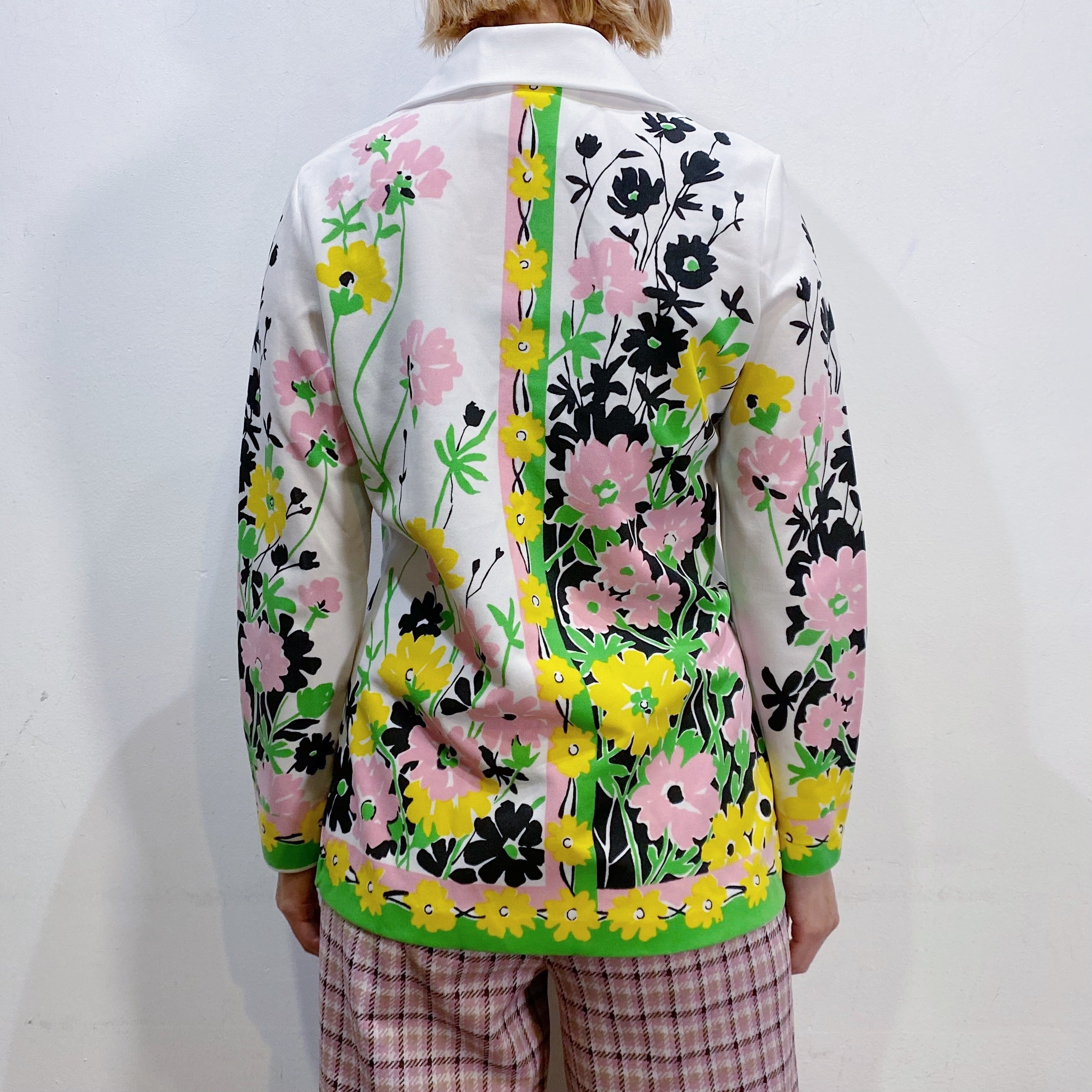 ピンクや黄色の花柄が可愛い、70年代の長袖シャツです。
