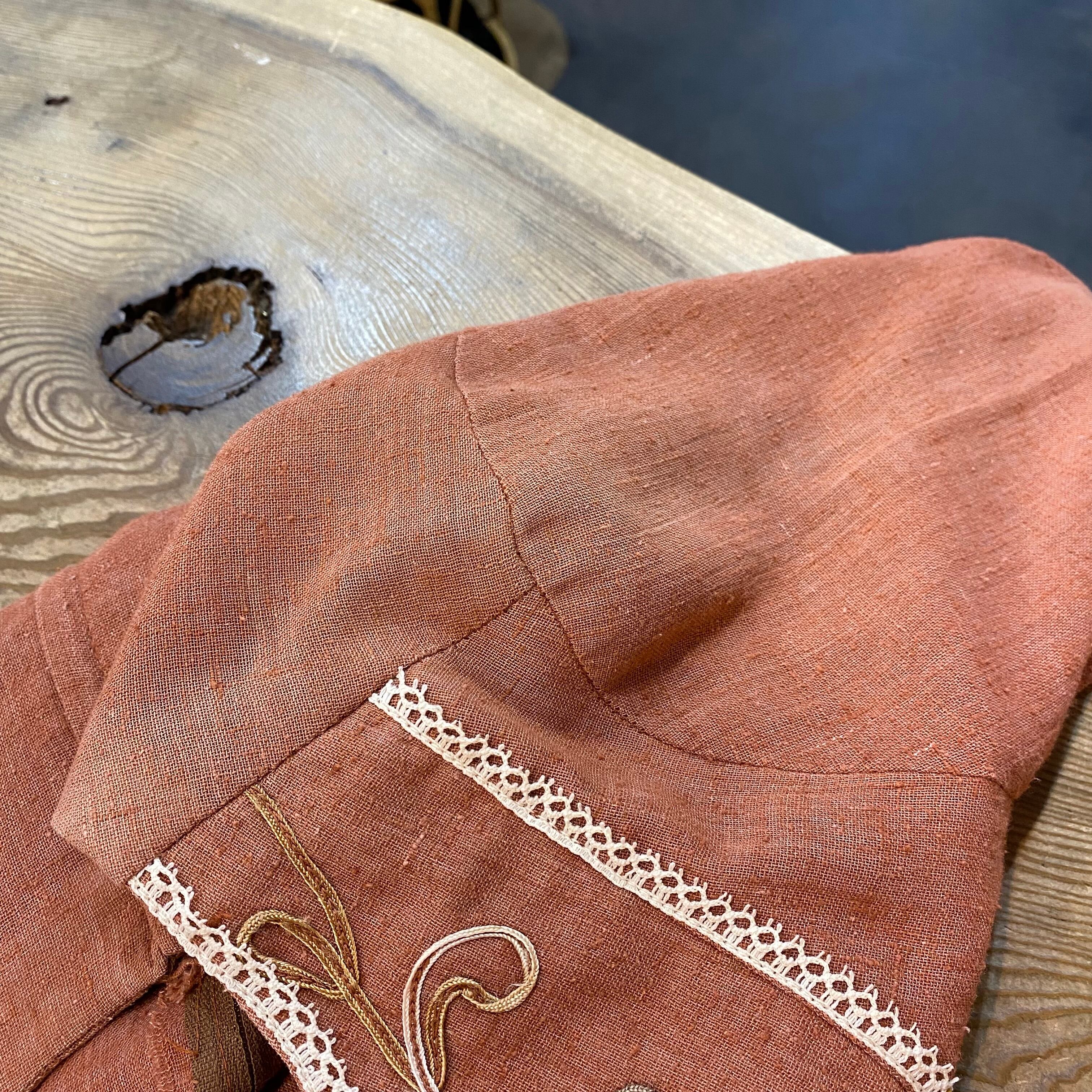 70s brown flower embroidery boho dress