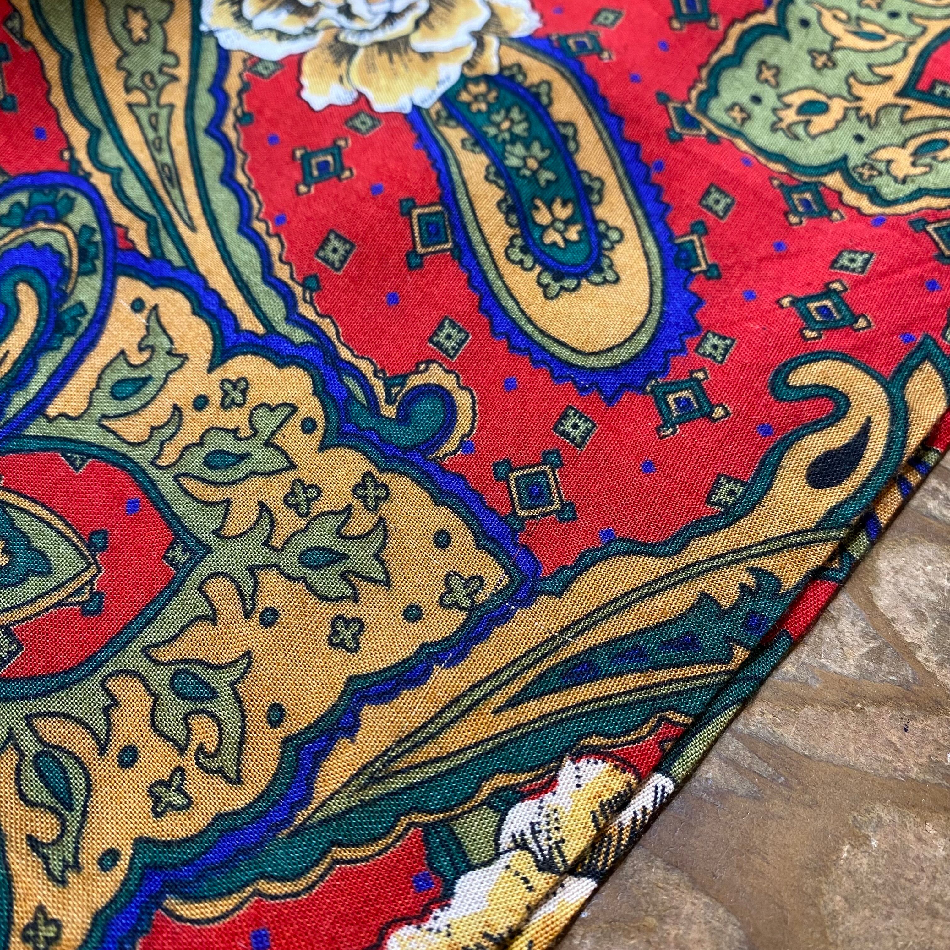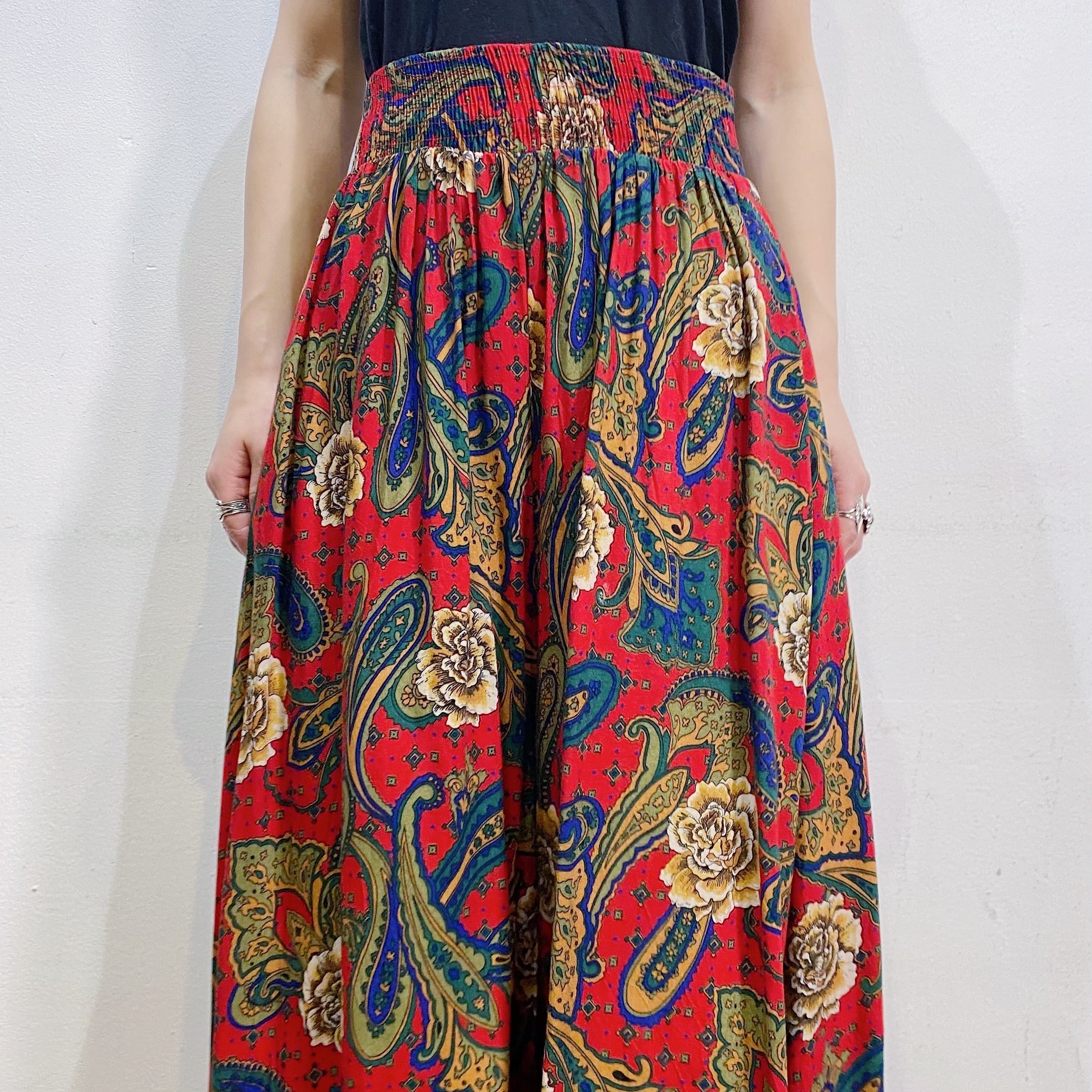 レッドベースの花柄が可愛い、レーヨン素材のパンツです。